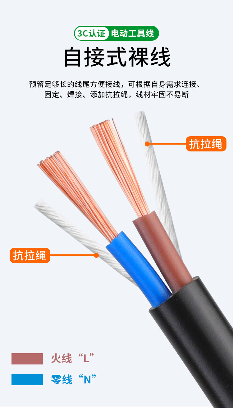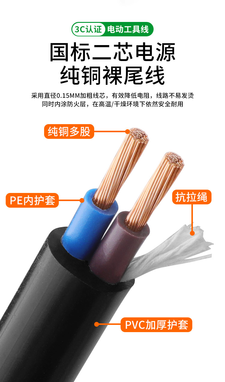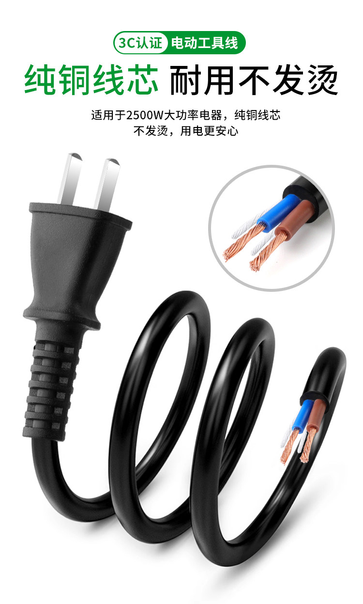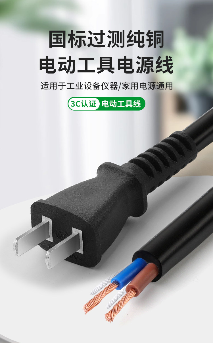 [Pure Copper Wire] National Standard Pure Copper Tool Power Cord Two-Phase Electric Tool Power Cord with Plug Sheathed Wire