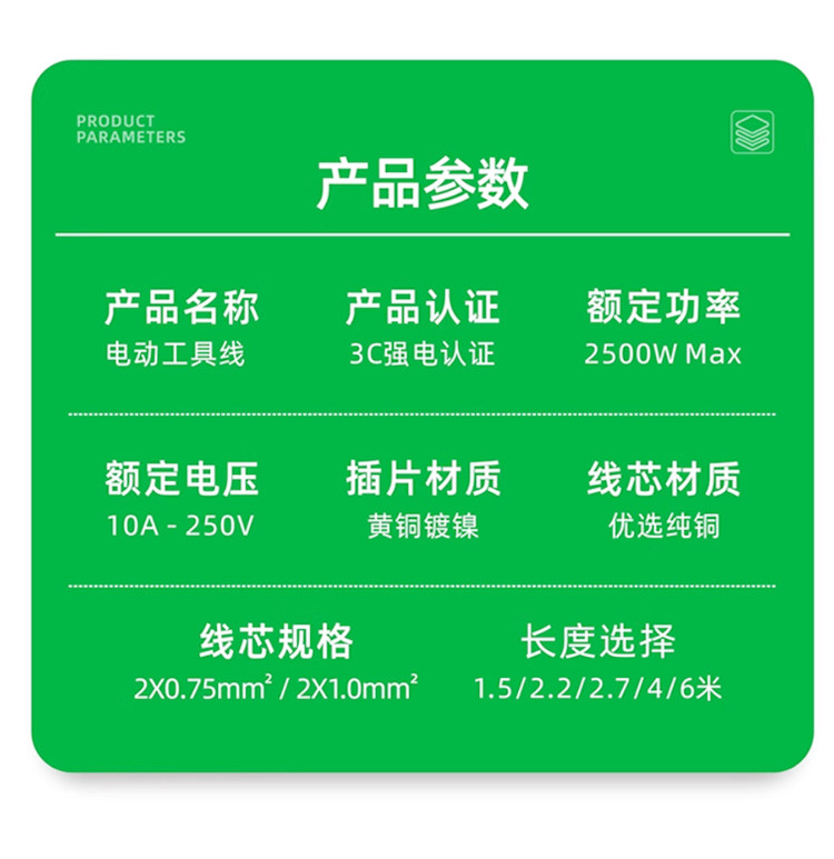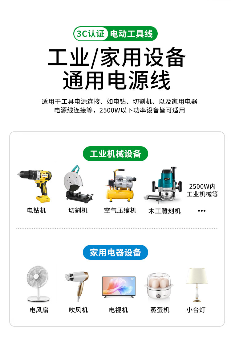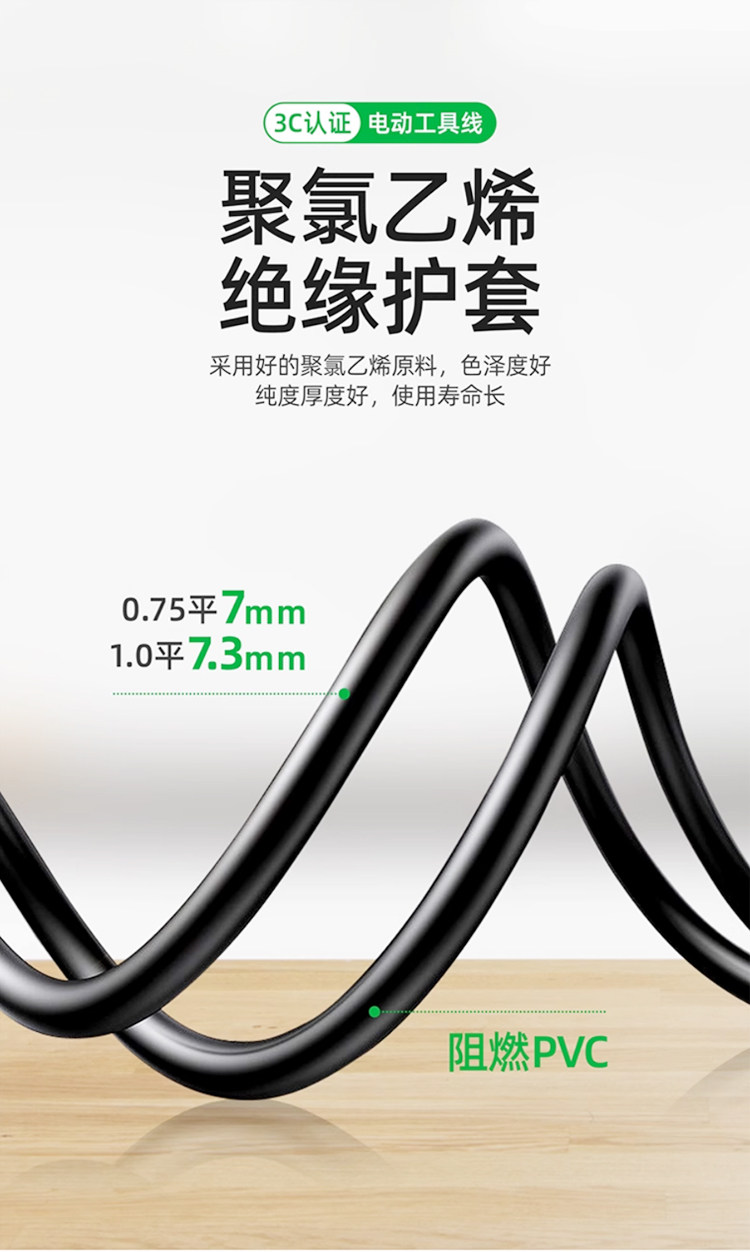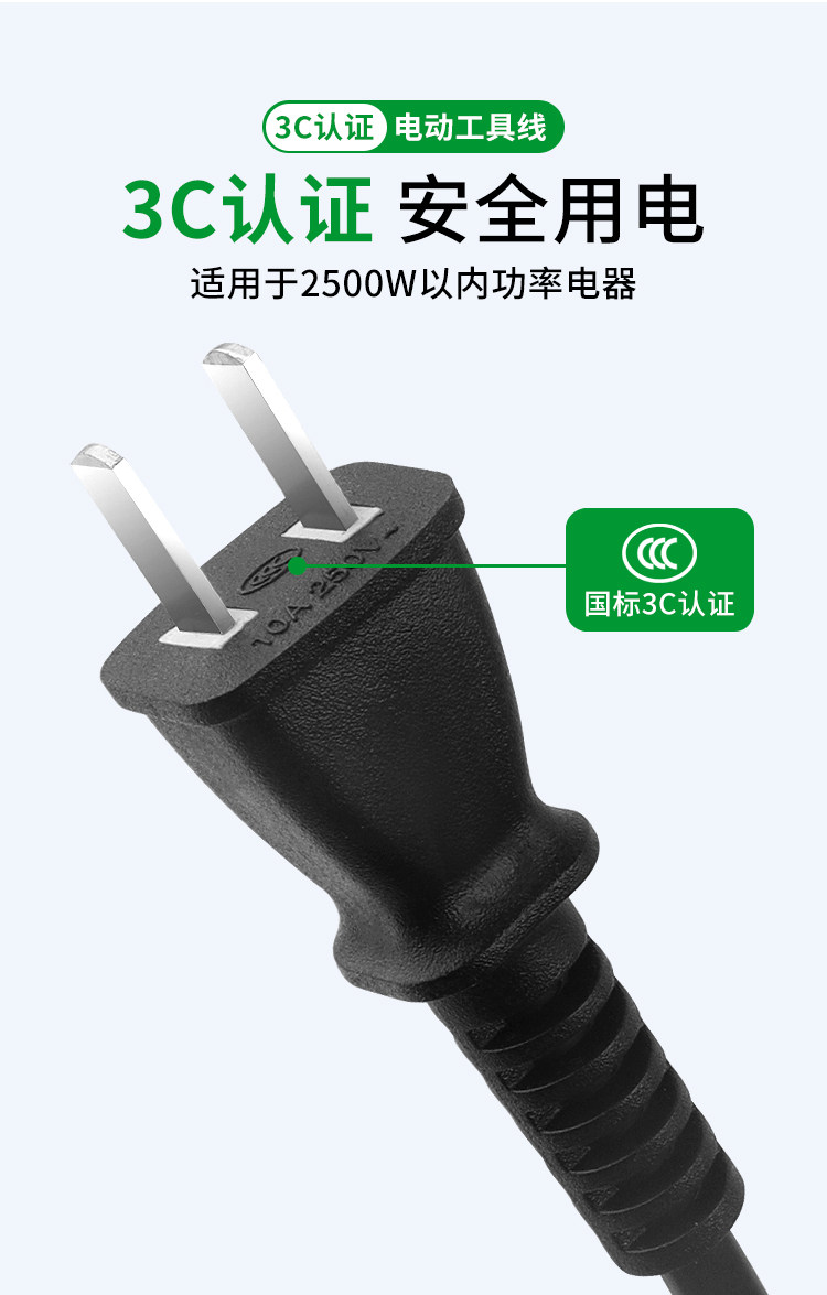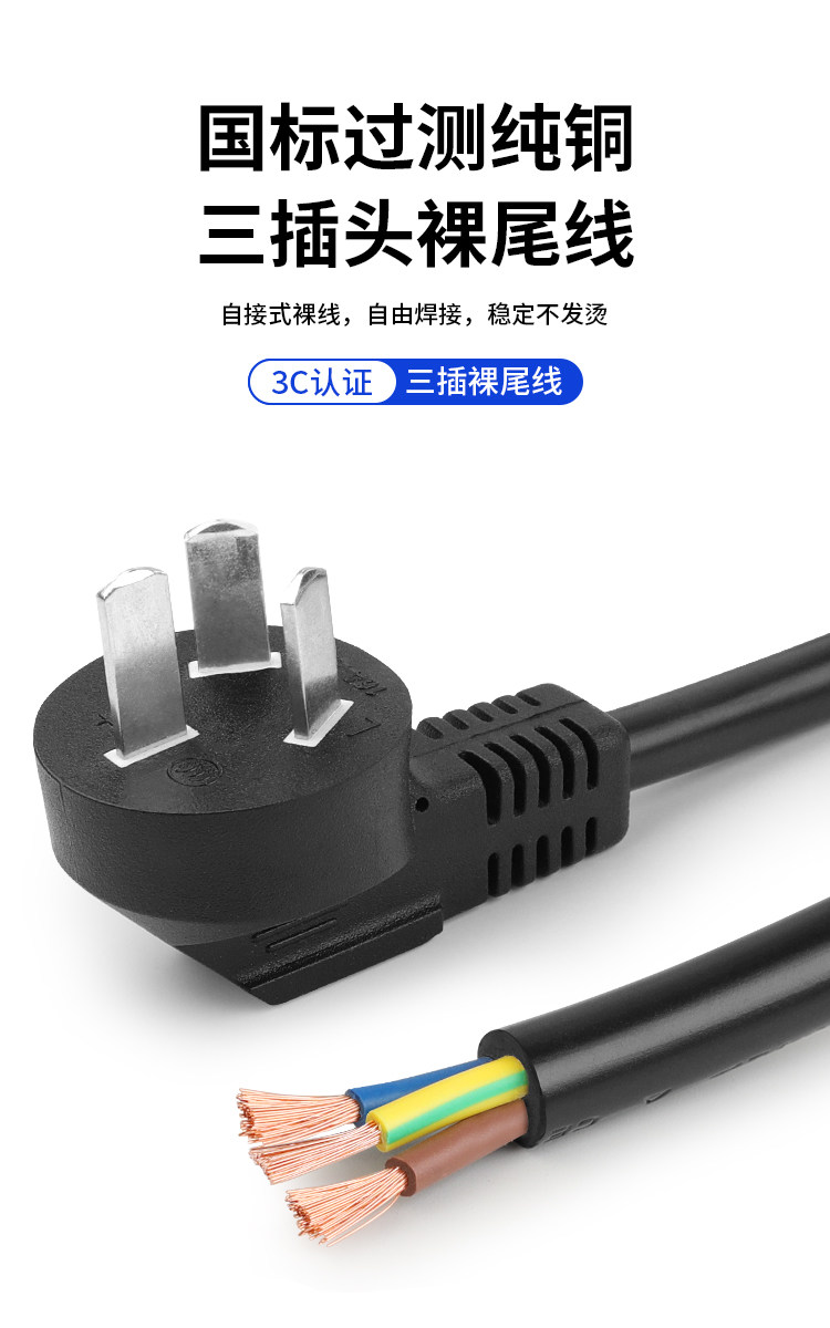 [Pure Copper Wire] National Standard Pure Copper Tool Power Cord Two-Phase Electric Tool Power Cord with Plug Sheathed Wire