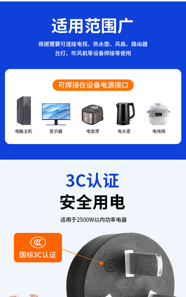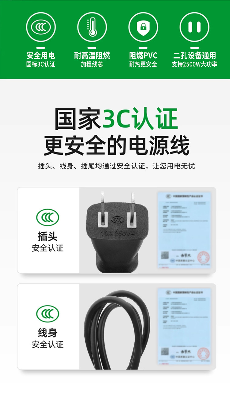 | Color Classification | 2X1.5 Square Meters[2 Pin Plug],2X1 Square[2 Pin Plug],2X0.75 Square Meters[2 Pin Plug],3X1 Square[10A3 Plug] |