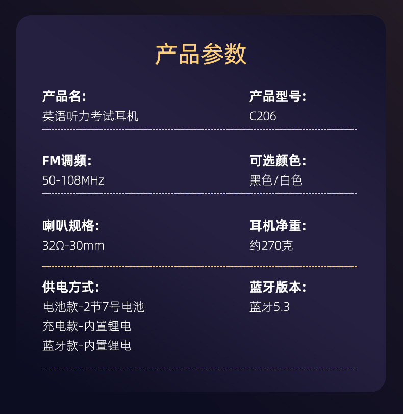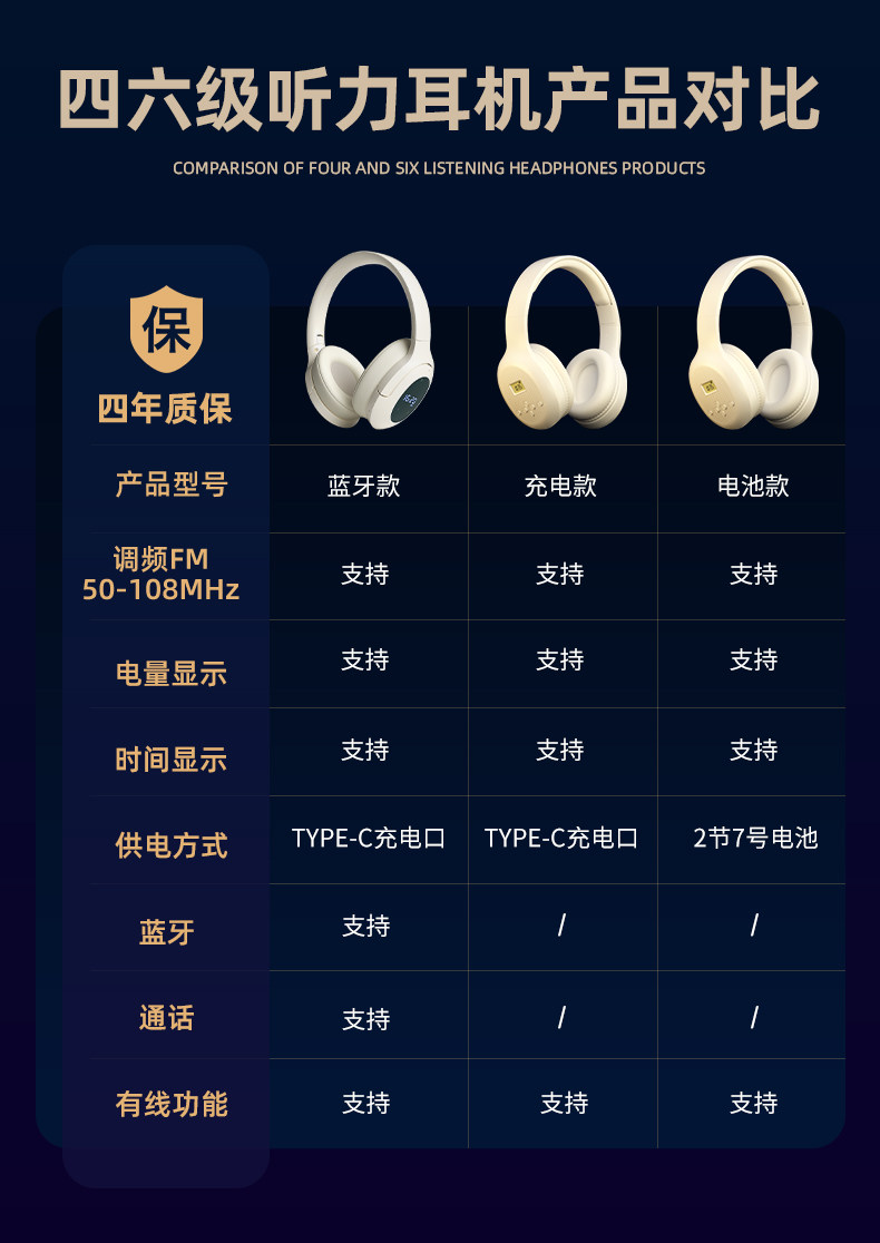 Sobena English Listening Headphones for Cet-4 and Cet-6 Fm Radio Tuning Headset for College Students' Cet-4 and Cet-6 Exam