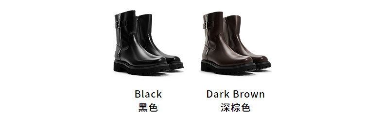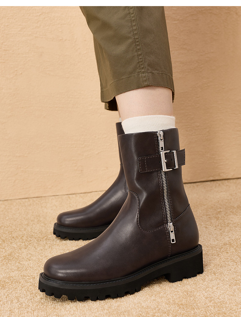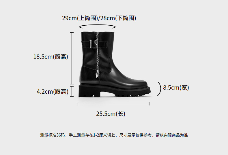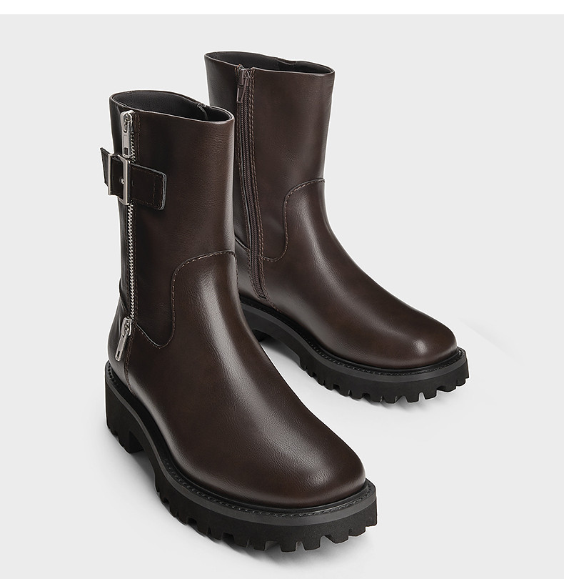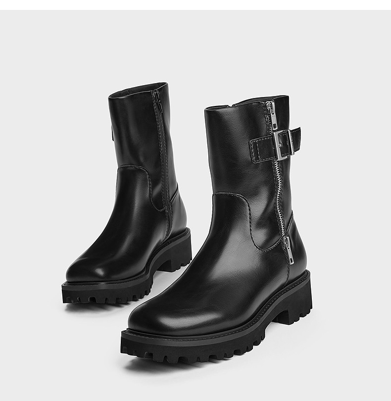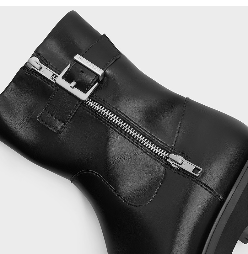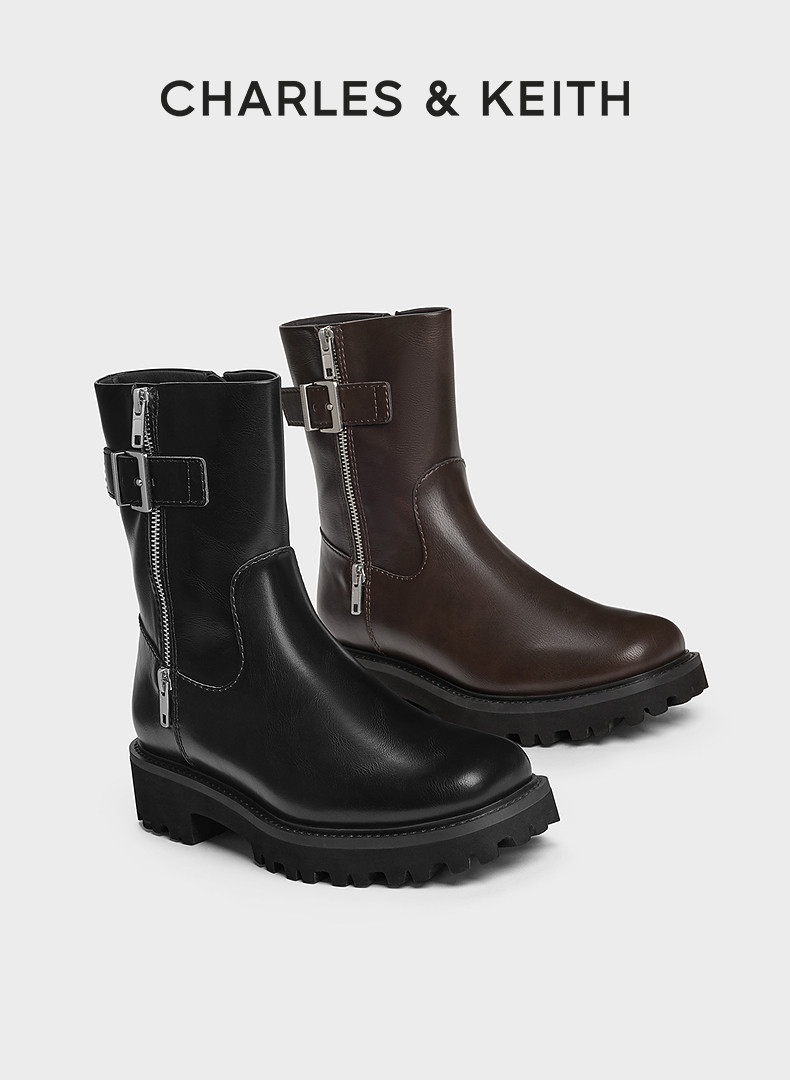 Charles&Keith25 New Autumn Collection Ck1-90920160 Round Toe Thick-Soled Zipper Belt Buckle Motorcycle Short Boots