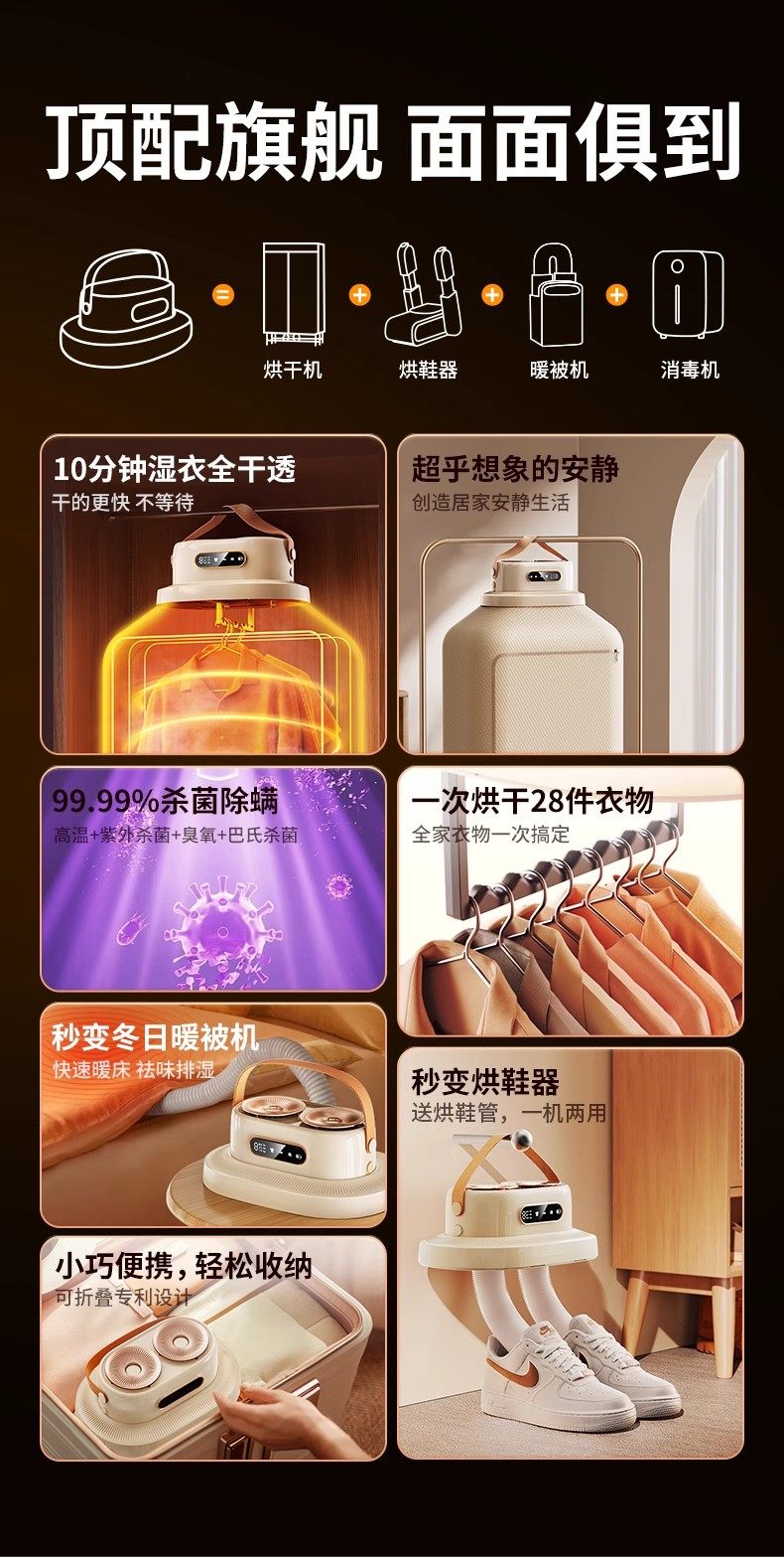| Color Classification | Quick Drying[Top Version]Quick Drying in 3 Minutes♦Dry 26 Pieces at Once♦Multiple Sterilization and Mite Removal♦Foldable Without Installation,Use More[Exclusive Edition]Clothes Dryer + Shoe Dryer + Quilt Warmer "Multi-Function All-In-One Machine",[15 Days Free]Satisfied or Your Money Back on Dryer Performance♢365-Day Warranty Without Any Defects!,[Speed ]Buy Today, Use Tomorrow♢Shipped Within 1 Hour at the Earliest,[Look for the Product]National Screening,Quality Is More Guaranteed,▬▬There Is No Difference between the Above Options,By Purchasing That Item, You'Ll Enjoy All the Associated Benefits▬▬ |