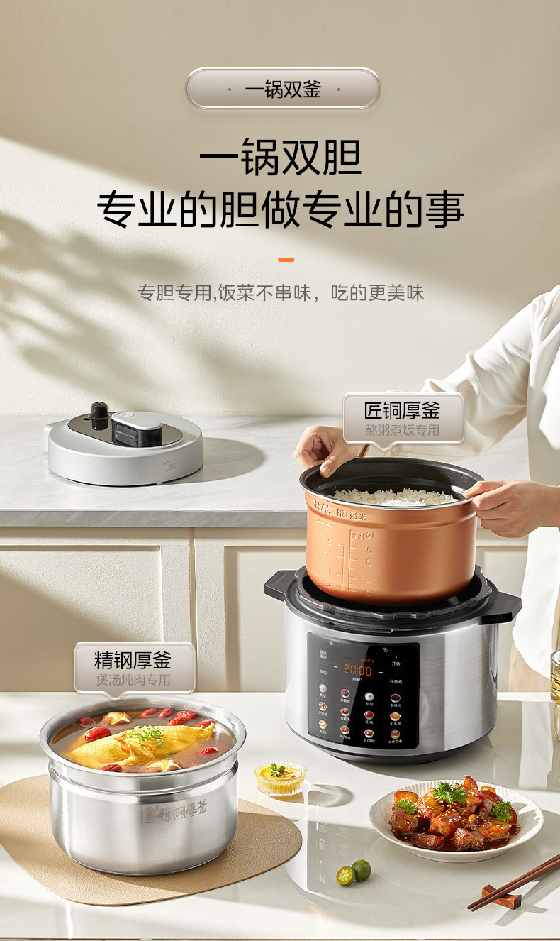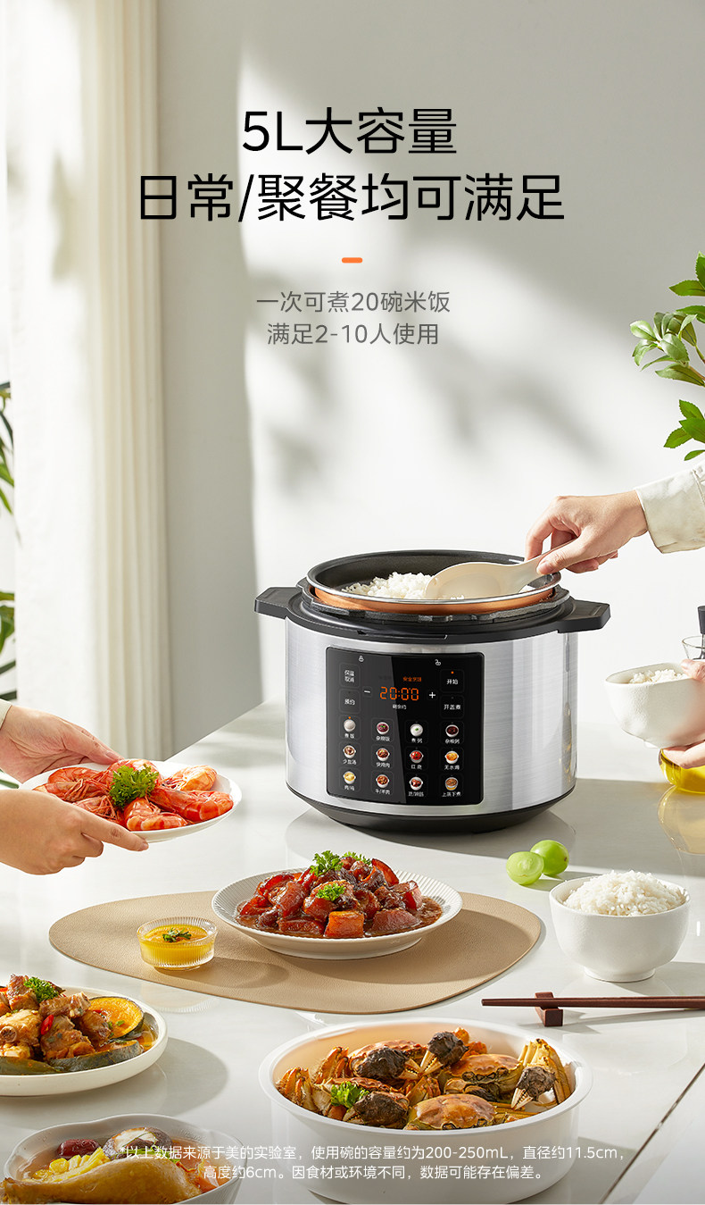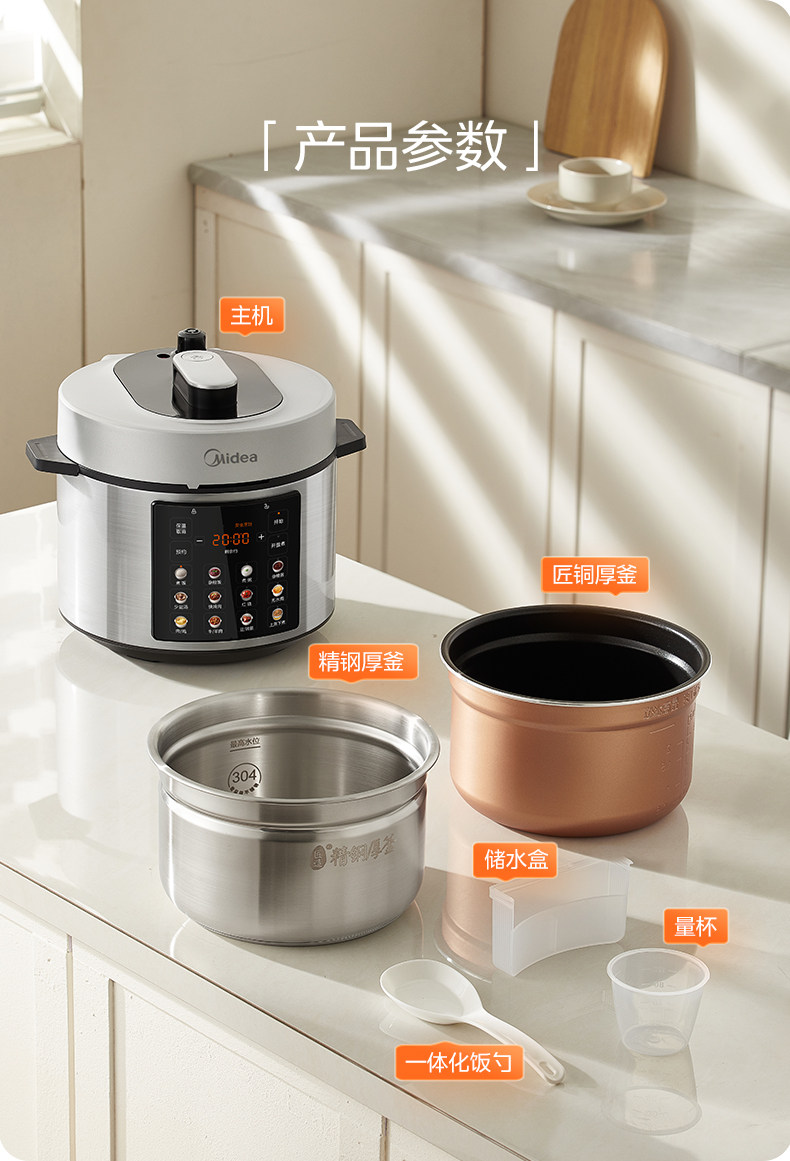 Midea Electric Pressure Cooker Household 5L Double-Gallon Rice Cooker Pressure Cooker Two-In-One Multi-Function 0-Coating Rice Cooker Genuine