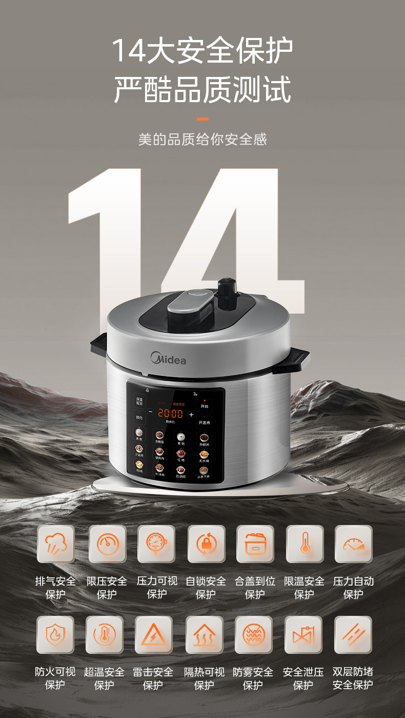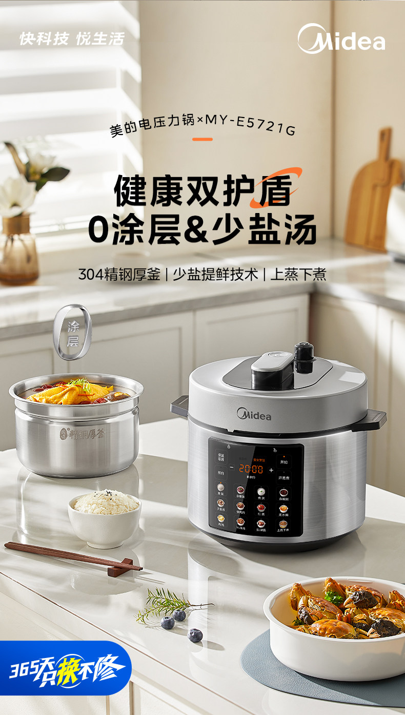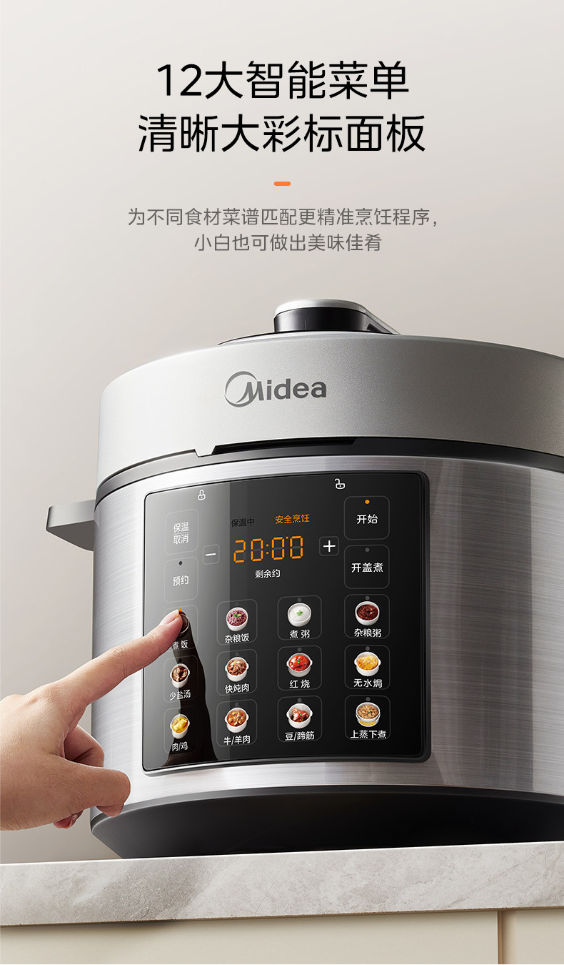 Midea Electric Pressure Cooker Household 5L Double-Gallon Rice Cooker Pressure Cooker Two-In-One Multi-Function 0-Coating Rice Cooker Genuine