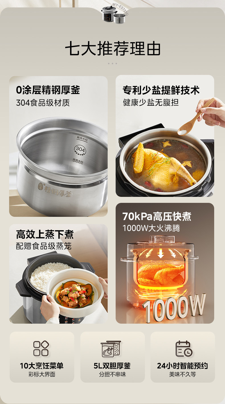 | Pressure Cooker Function | Cook,Pot,Steam,Multifunctional,Appointment,Stew |