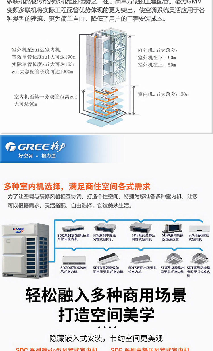 Gree Zhiyue Gmv9 Commercial Central Air Conditioning Multi-Split System One-To-Four, Five, Six Units for Factories, Hotels, Restaurants, Shopping Malls