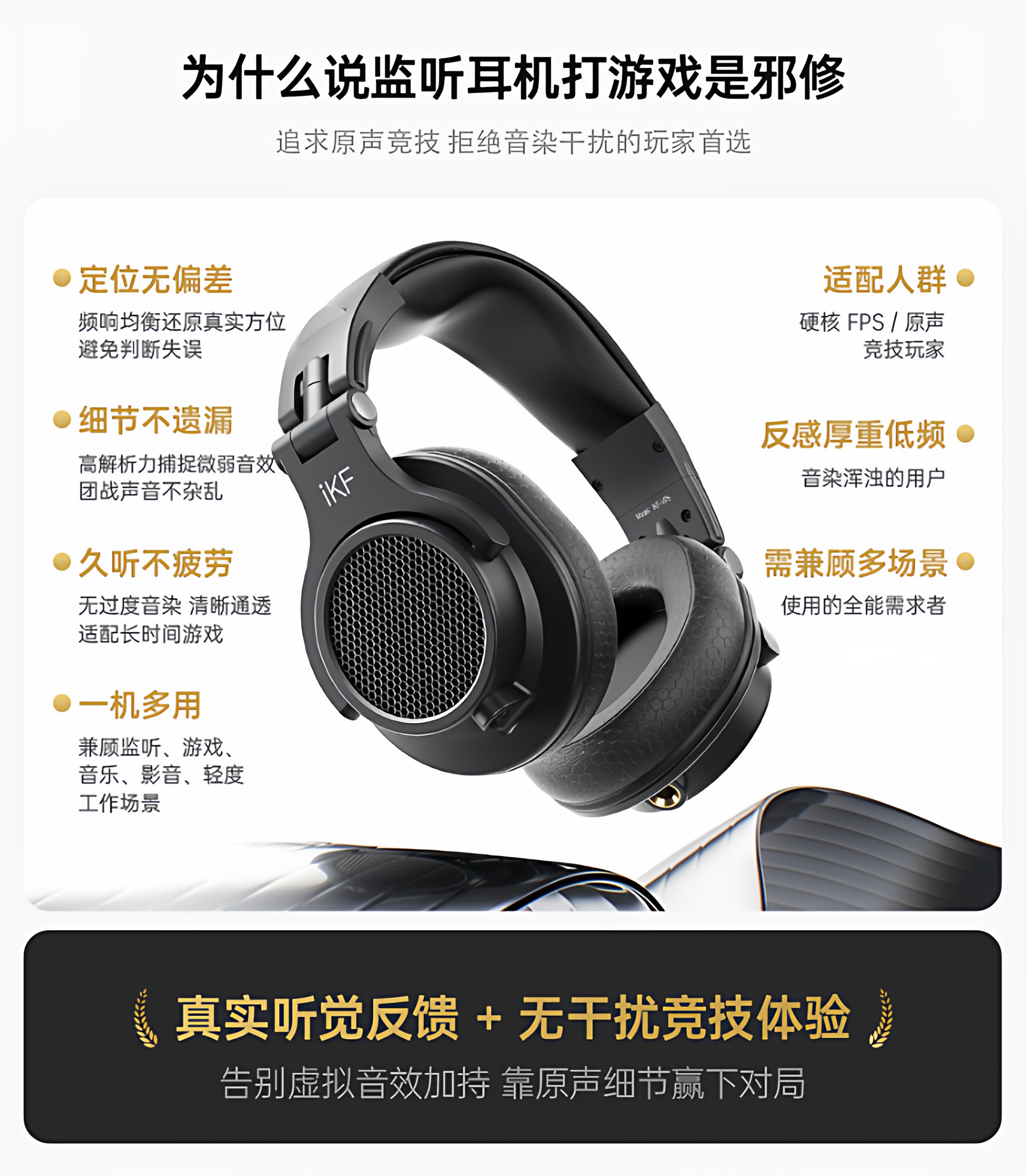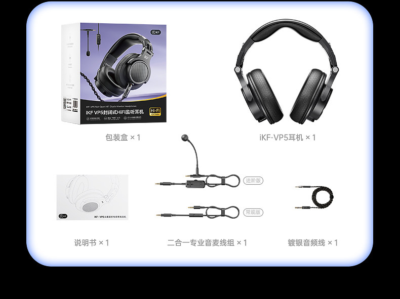 Ikf Vp5 Over-Ear Monitoring Headphones Hifi High-Resolution Headset Gaming Sound Card Dedicated for Gaming Computers Wired