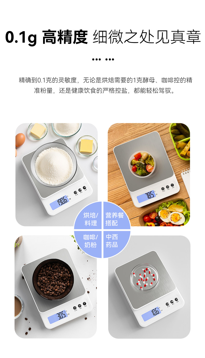 Electronic Scale Kitchen Scale Accurate to 0.1g Household High-Precision Small Food Baking Special Scale Gram Scale Weighing Platform Scale