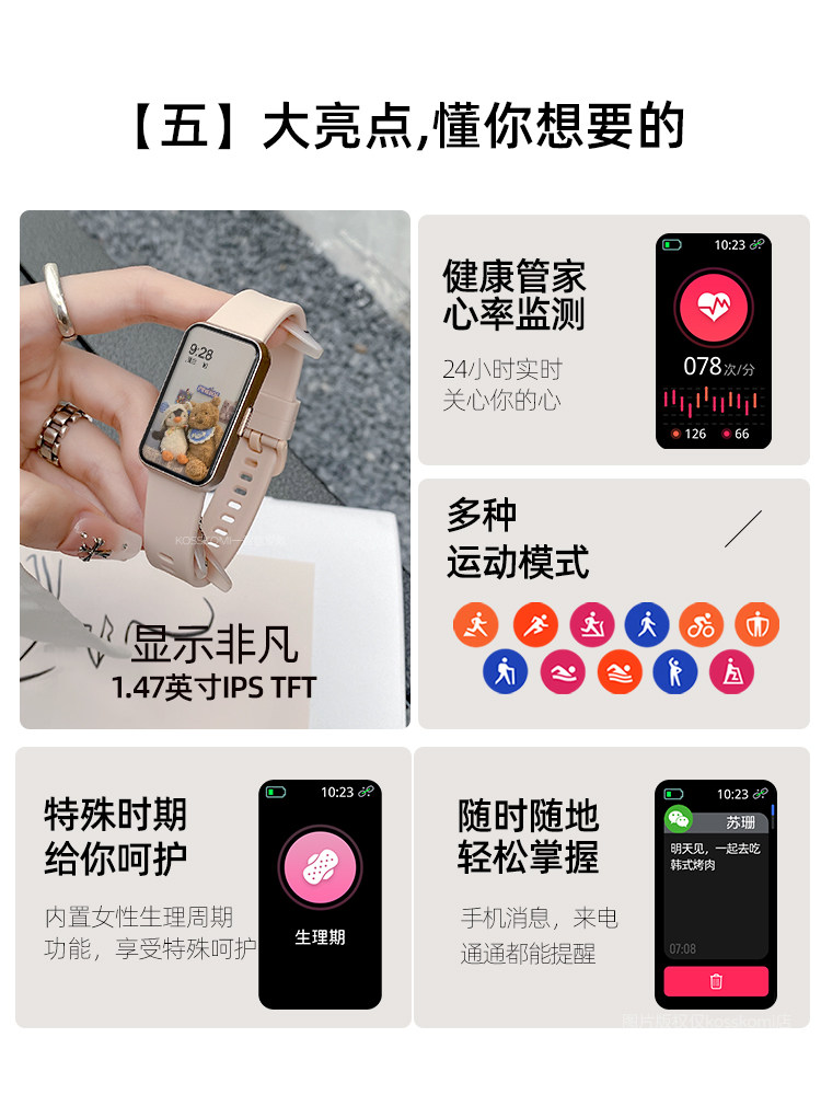 Smart Bracelet 9Pro Is Suitable for Oppovivo Android Phones, Heart Rate Monitoring, Sports Digital Watch for Women