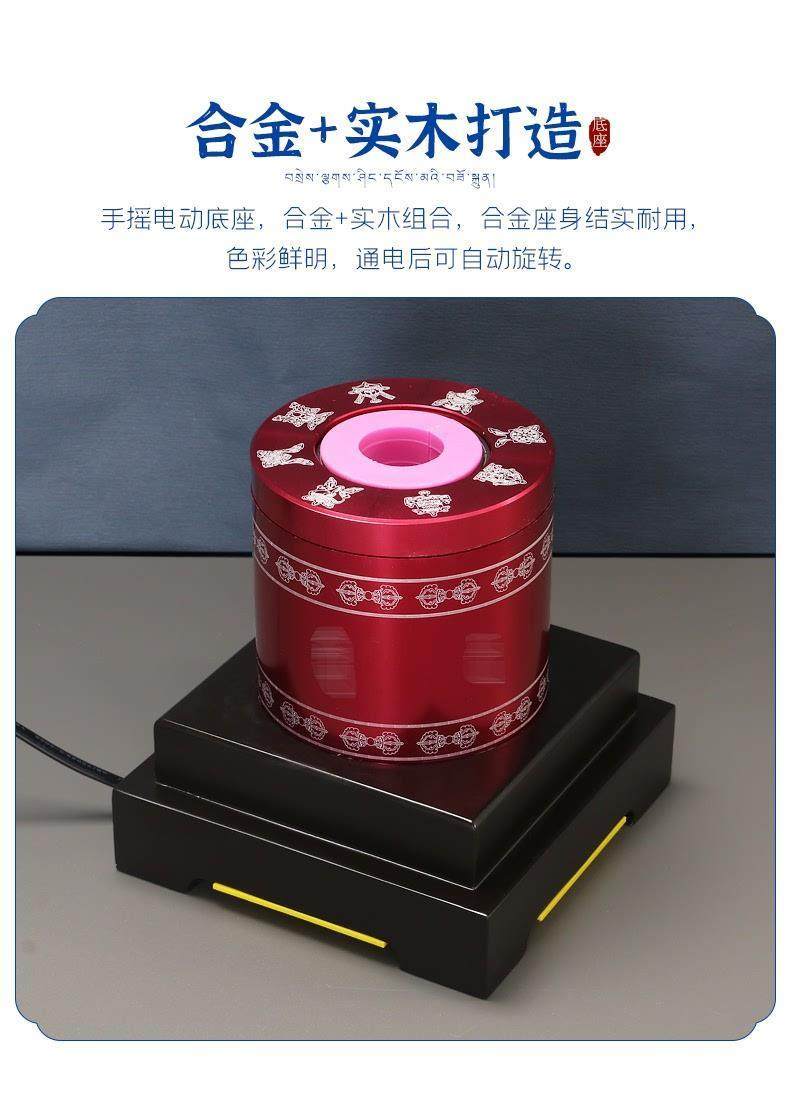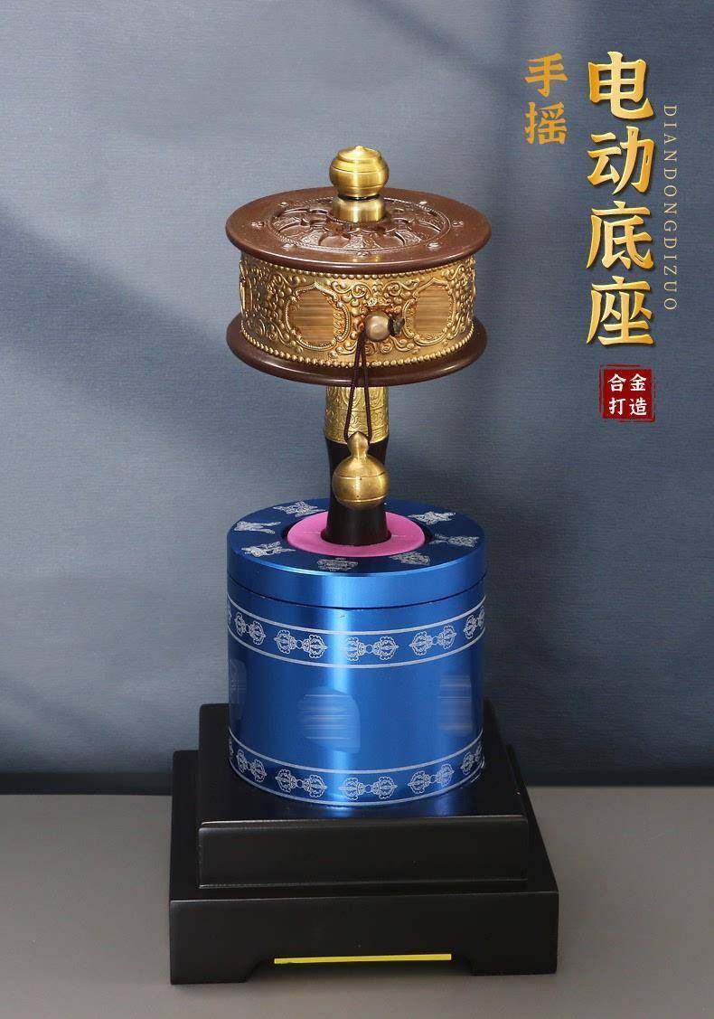 Hand-Cranked Electric Base, Hand-Held Prayer Wheel, Alloy Base, Automatic Rotating Tibetan Home Furnishings and Crafts