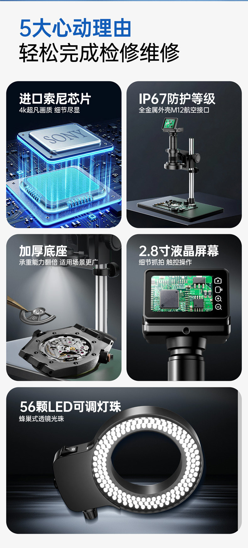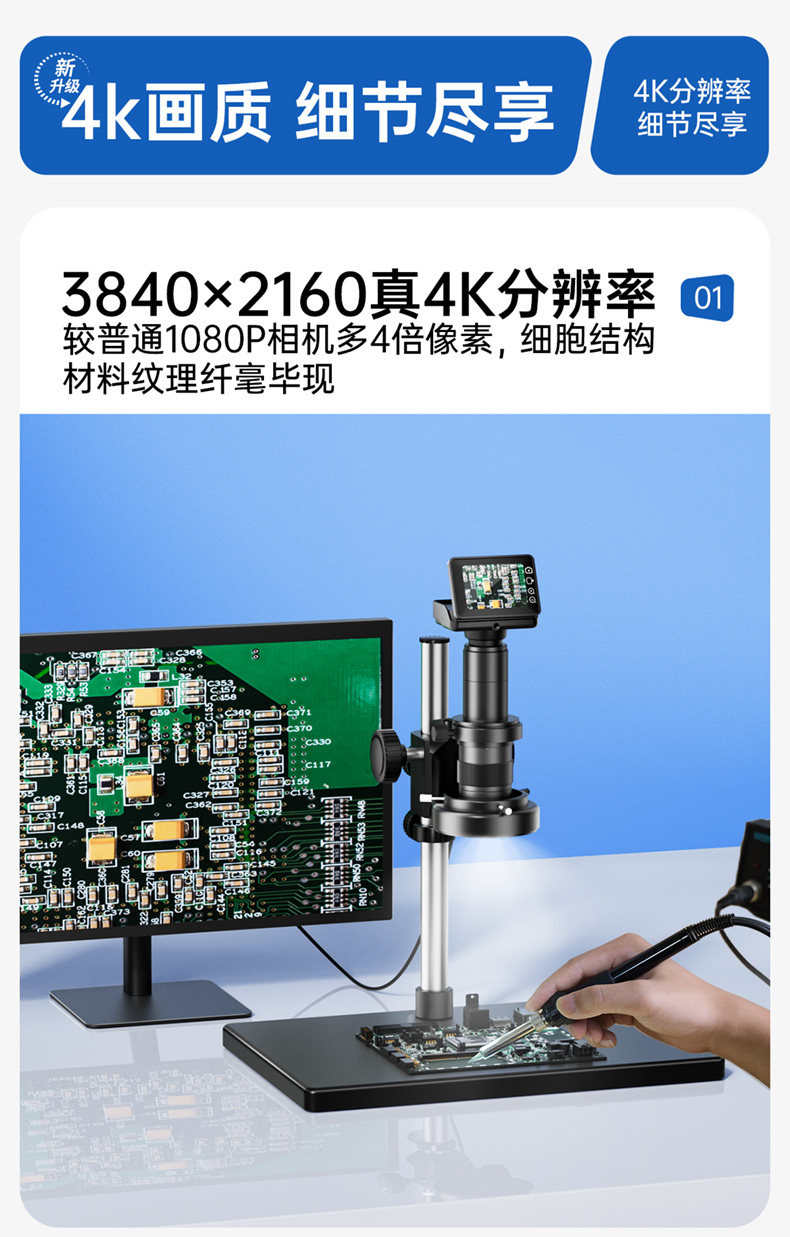[Quality Inspection Special] 4K Ultra-Clear Phase-Contrast Electron Microscope Industrial Grade 200-1000X High-Definition Magnification Usb/Hdmi Trinocular for Mobile Phone Repair and Digital Observation, Includes Touchscreen Display