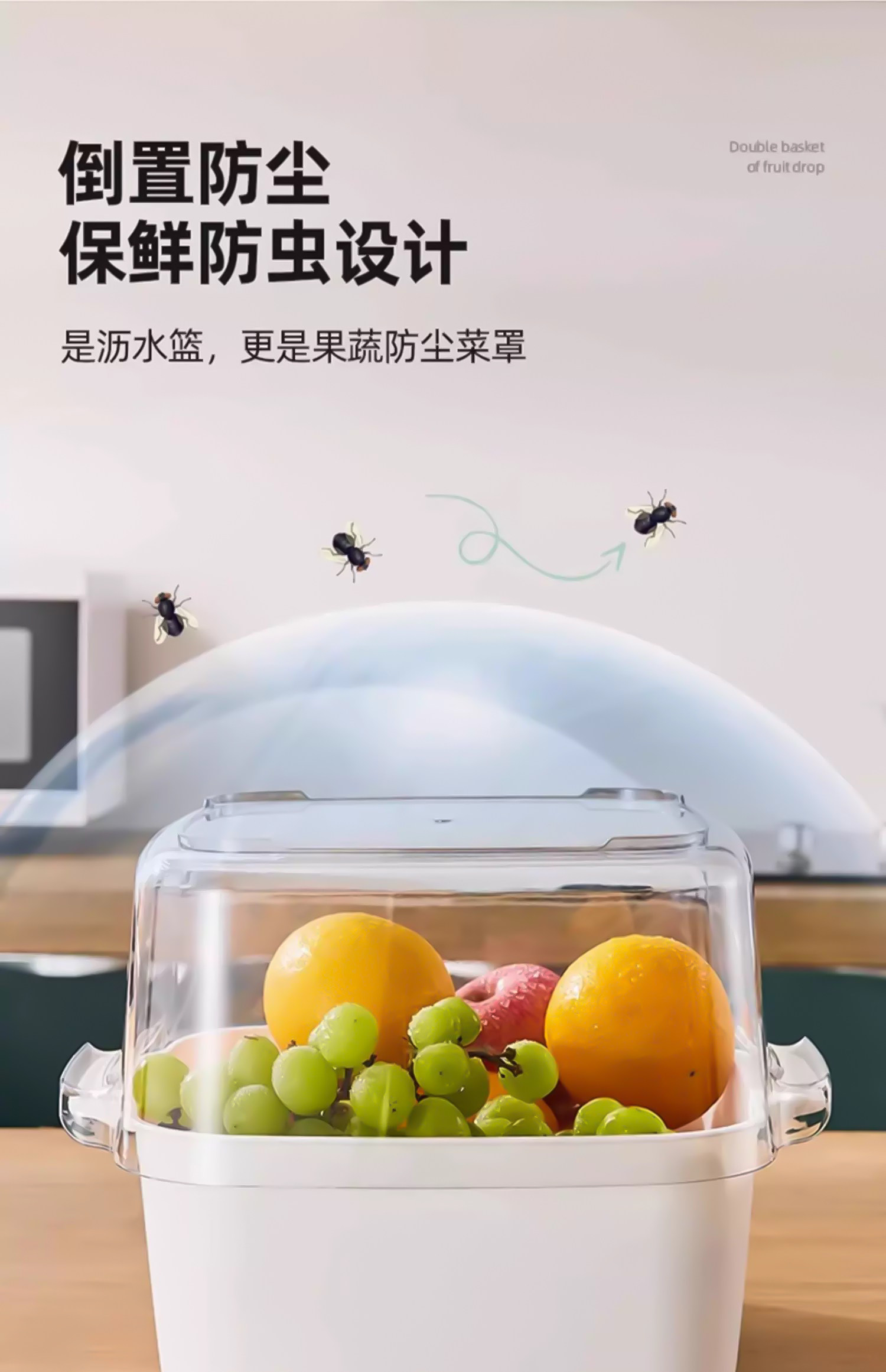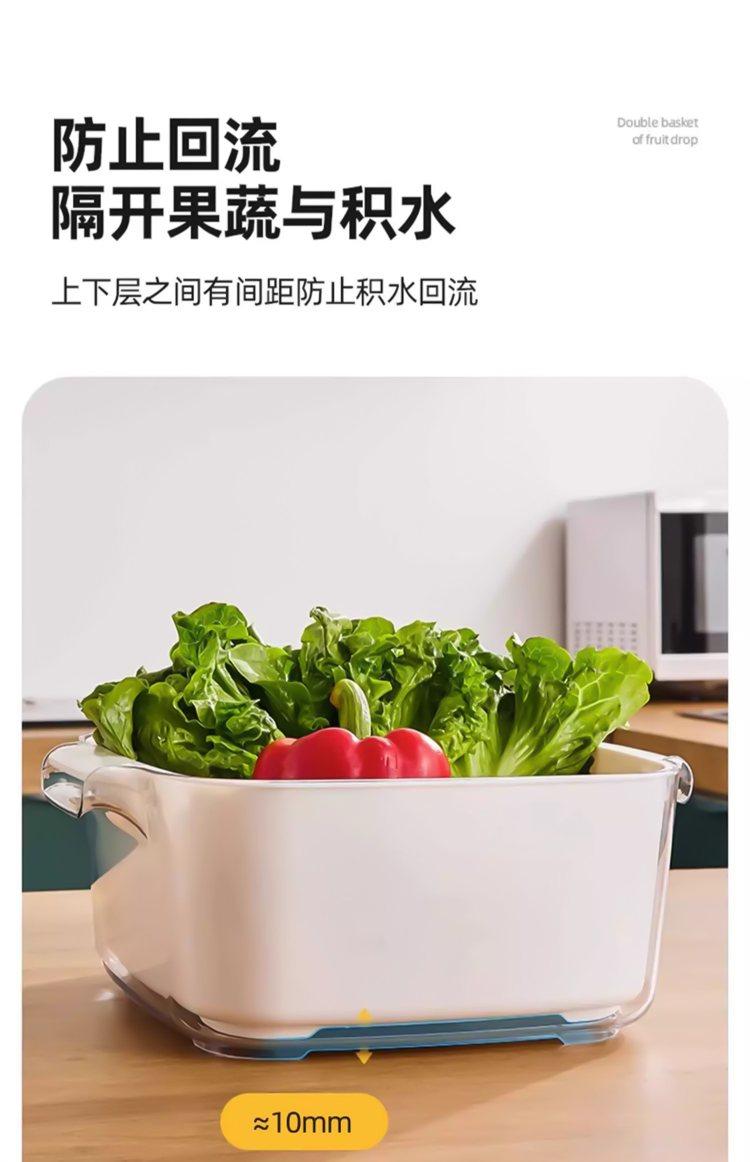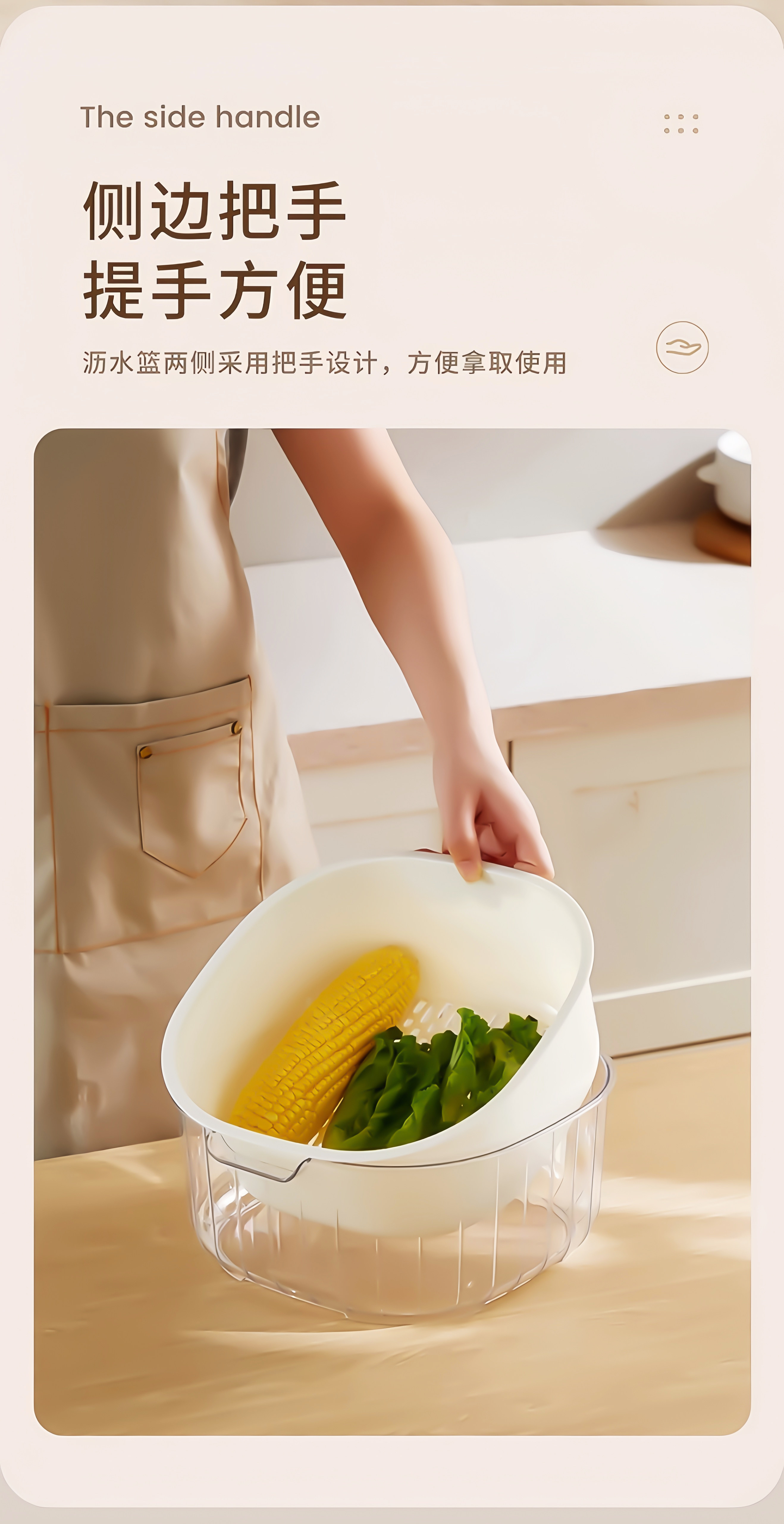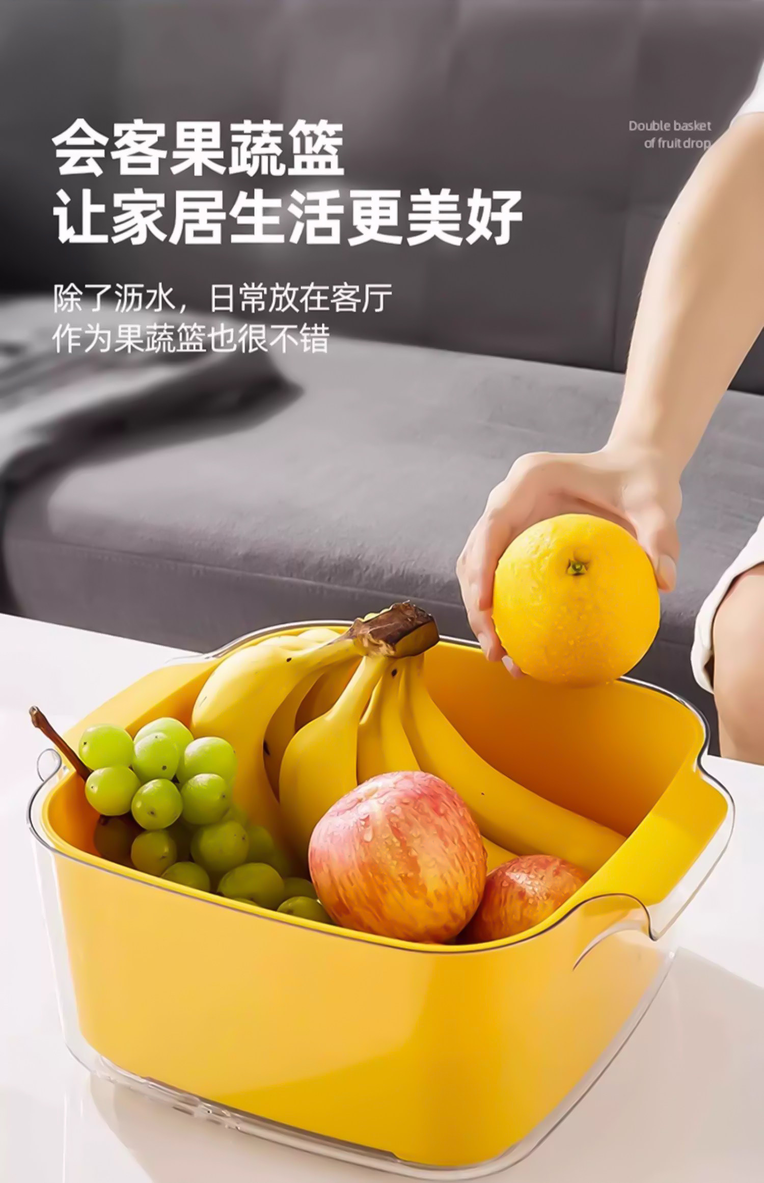 Double-Layer Vegetable Washing Basin with Draining Basket, New Kitchen Model for Washing Fruits and Vegetables, Household Food-Grade Fruit Tray and Vegetable Washing Basket