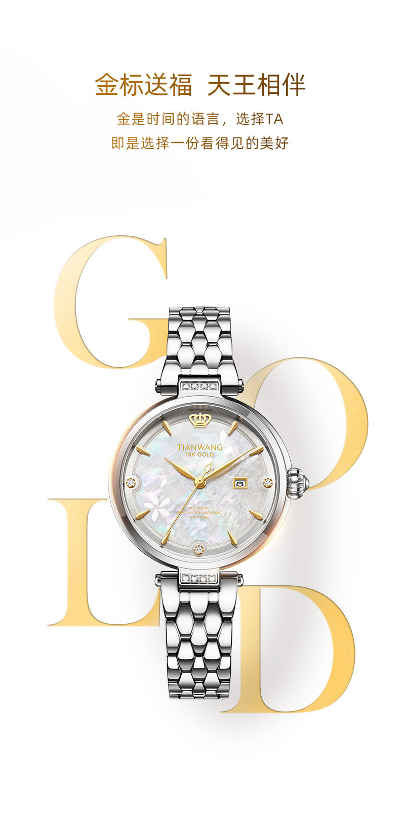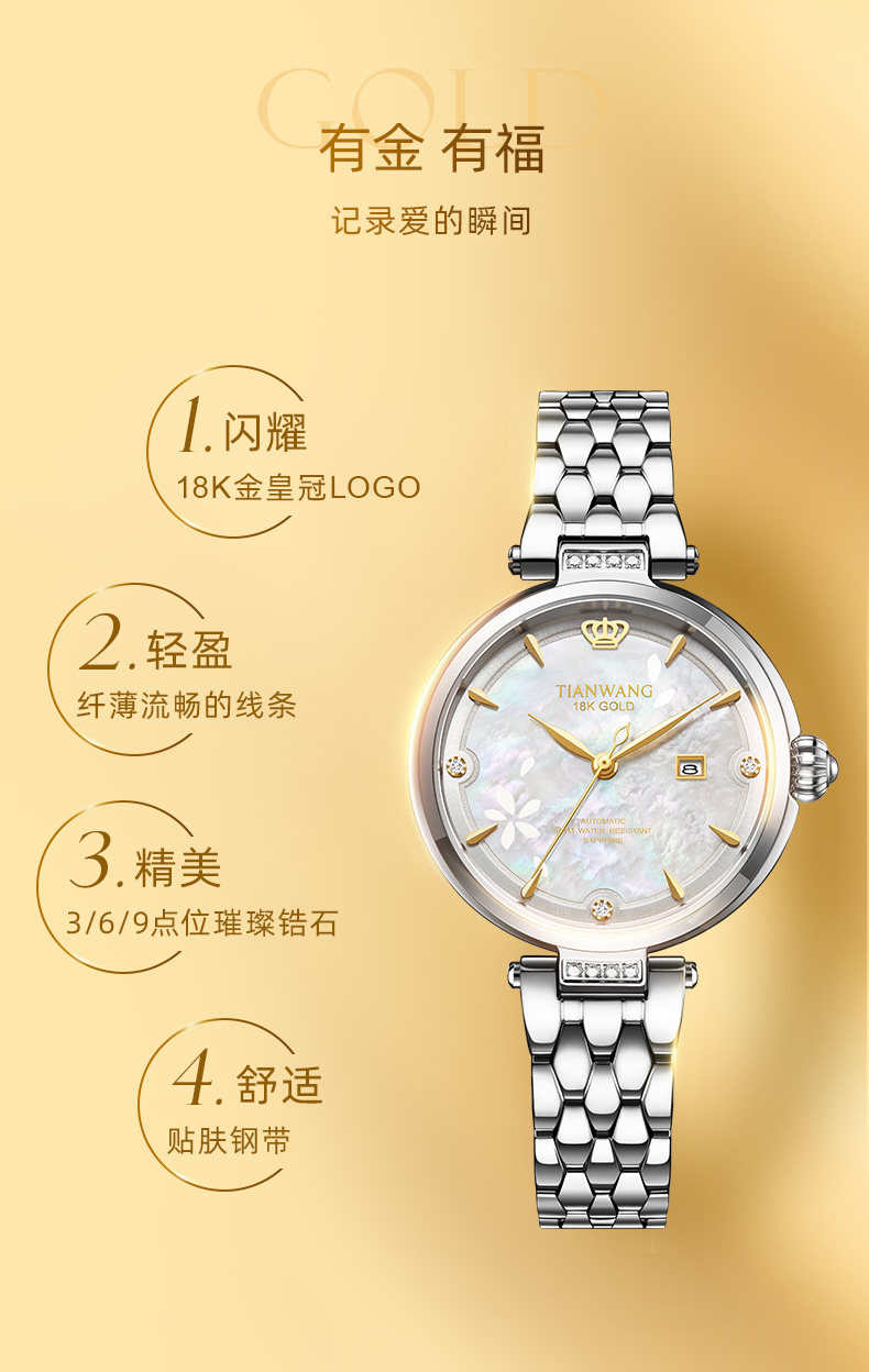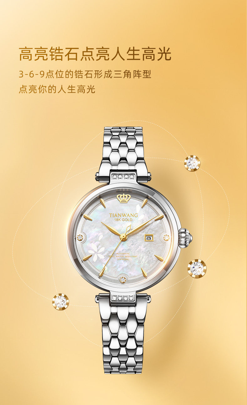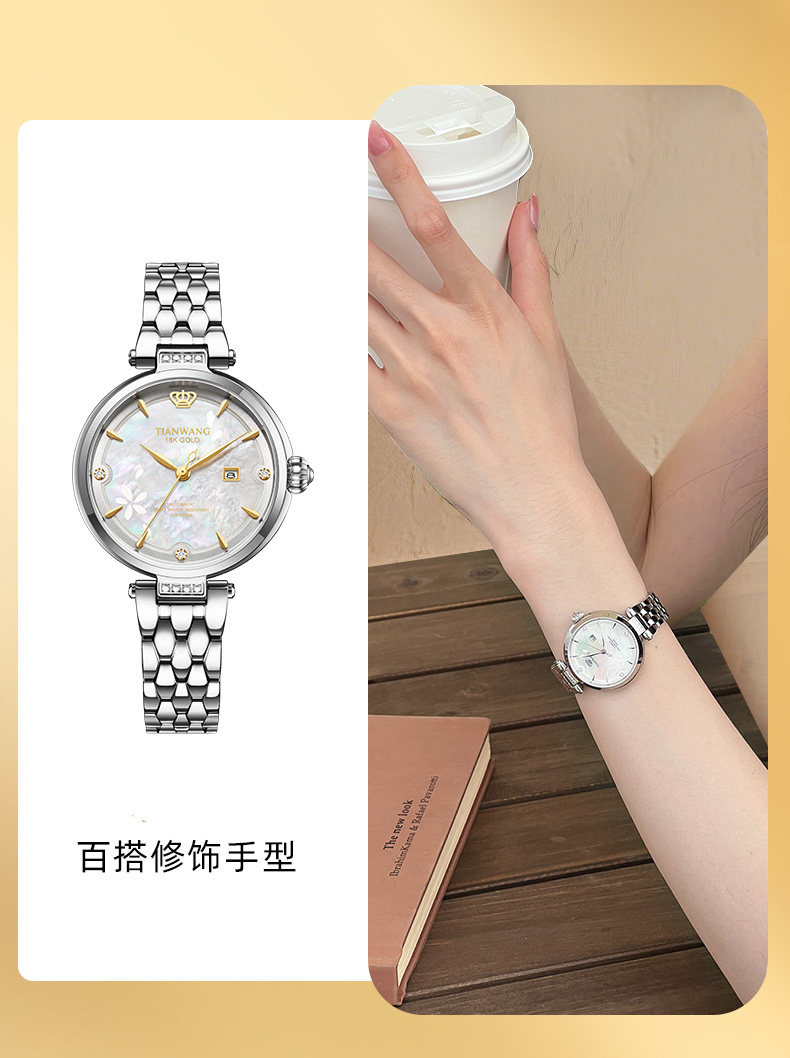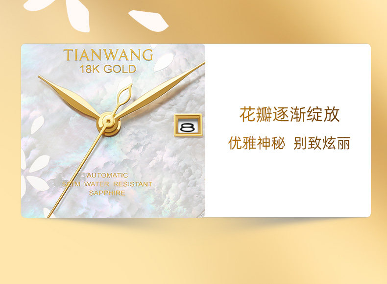 Tianwang Gold Label Blessing Small Petal Women's Watch 18K Gold Women's Fashion Mechanical Watch Gift for Wife 51176