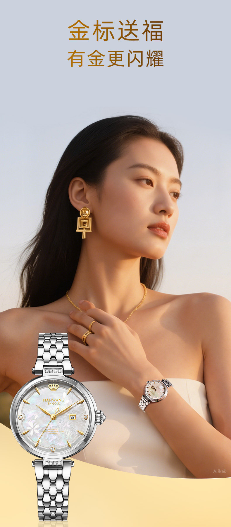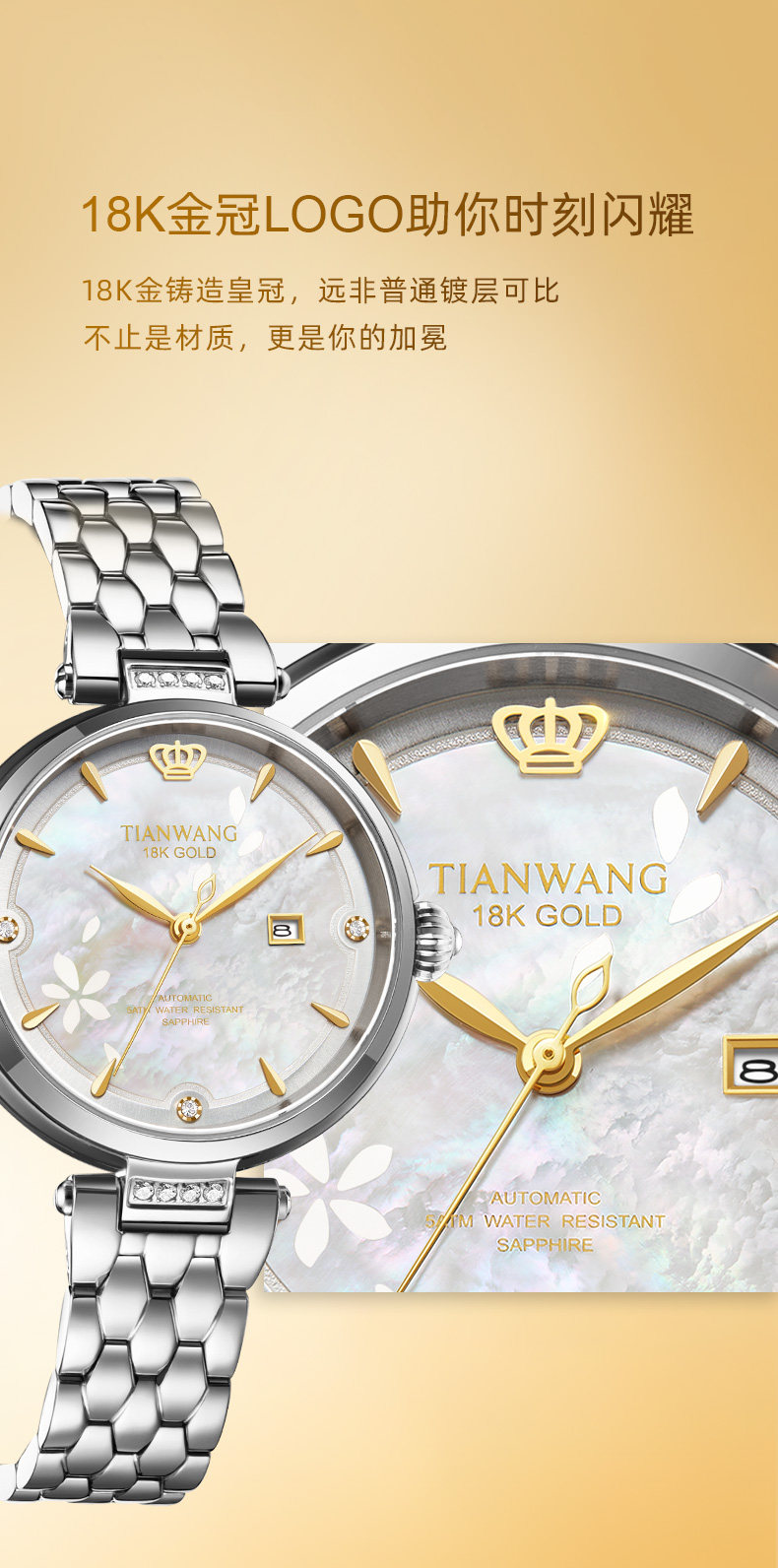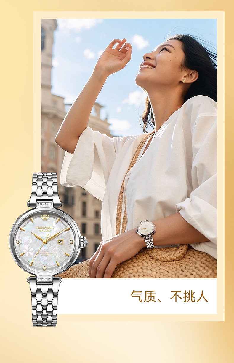 Tianwang Gold Label Blessing Small Petal Women's Watch 18K Gold Women's Fashion Mechanical Watch Gift for Wife 51176