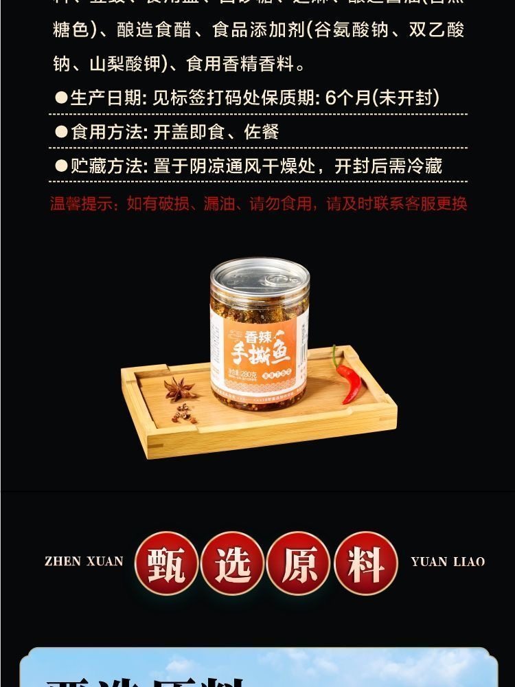 | Taste | [Spicy]Hunan Specialty Shredded Fish 280g*1 Can,[Spicy]Hunan Specialty Shredded Fish 280g*2 Cans,[Spicy]Hunan Specialty Shredded Fish 280g*3 Cans |