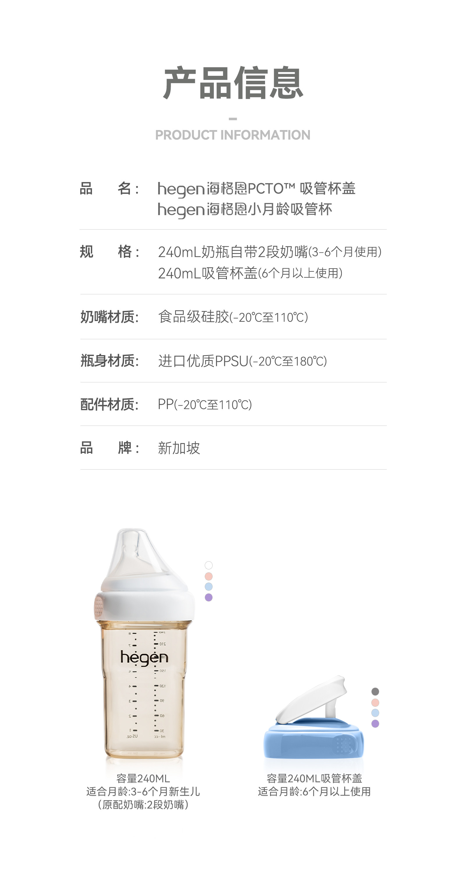 | Item Number | 240ml Baby Bottle + Straw Cup Lid (for Younger Babies) |