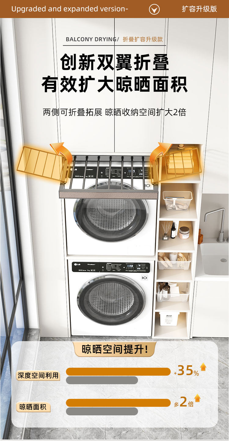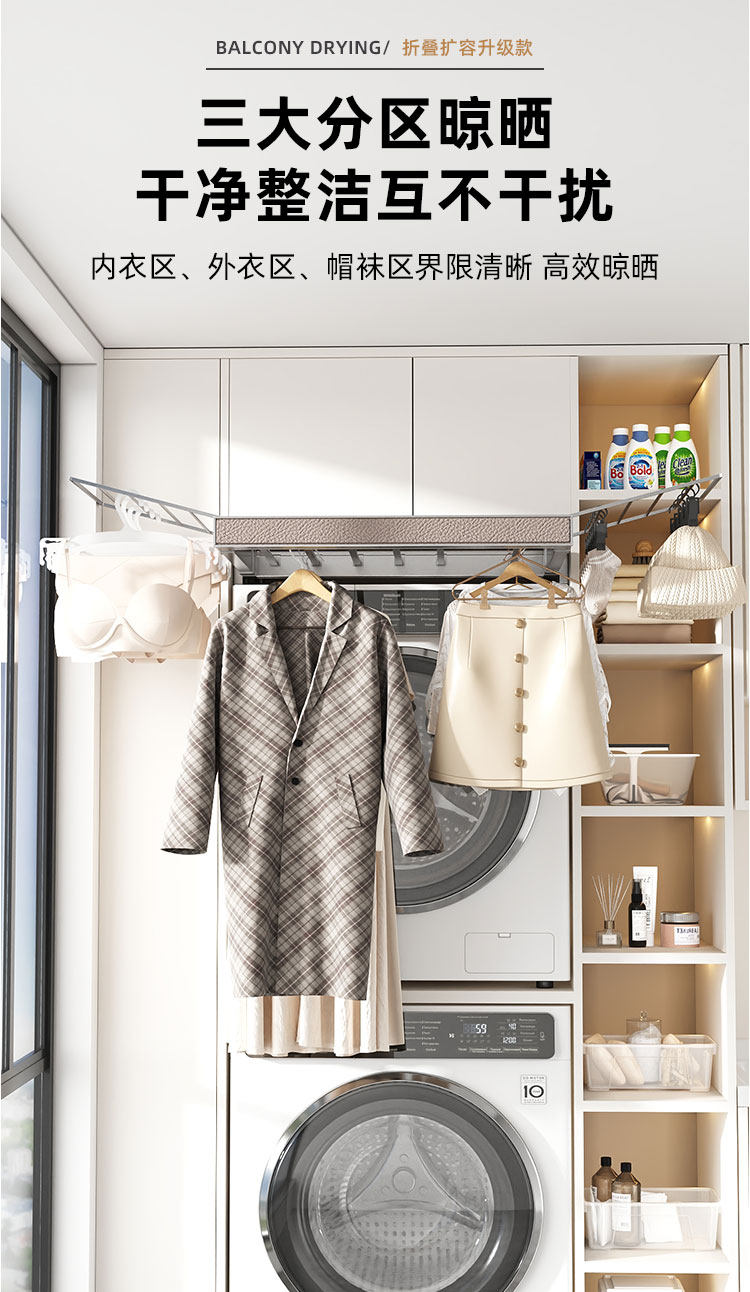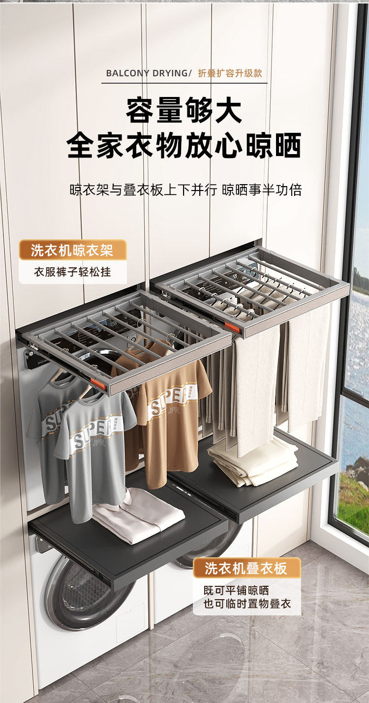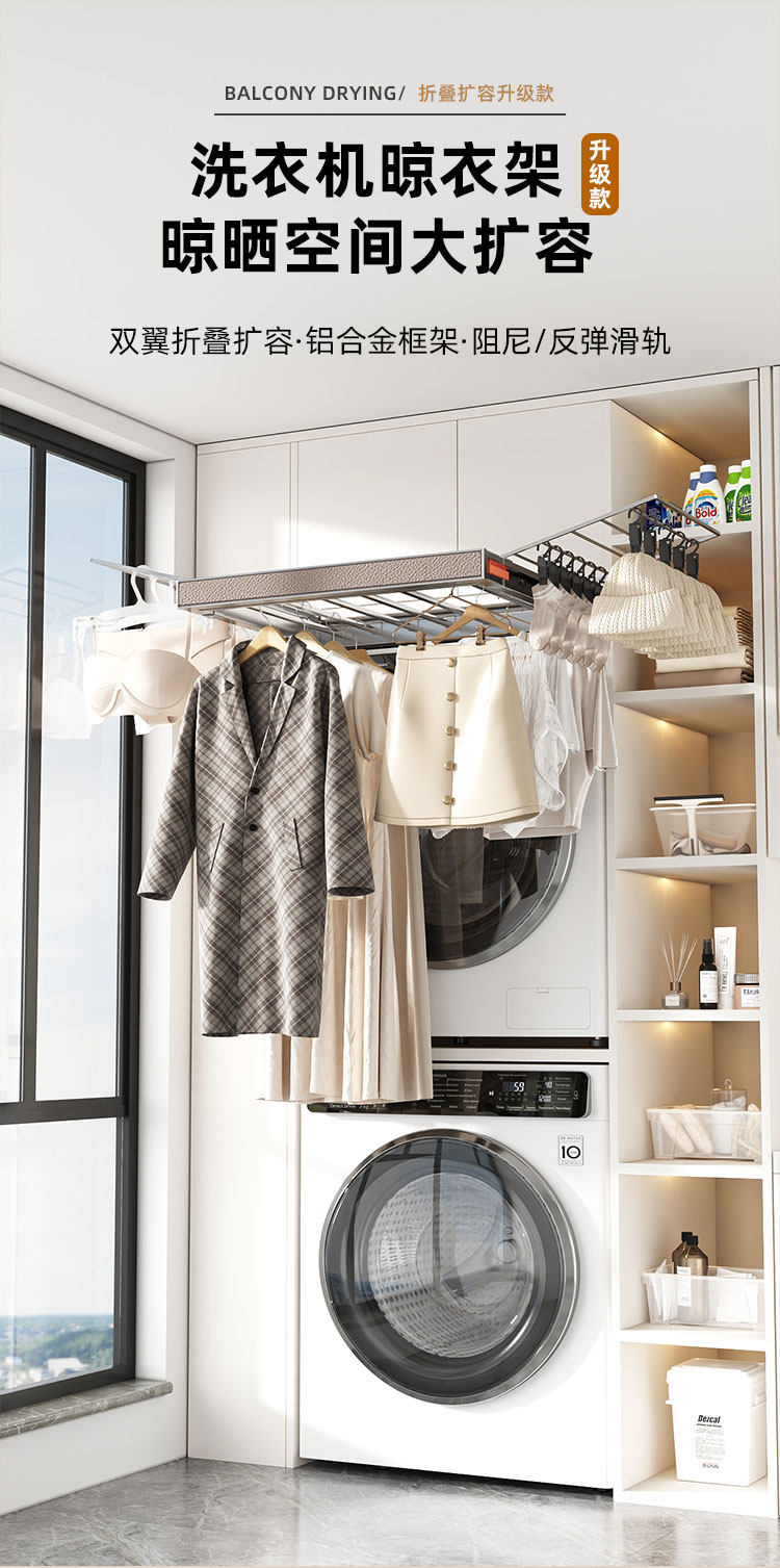 Balcony Washing Machine Pull-Out Clothes Rack, Retractable Pants Rack Above the Dryer, Invisible Clothes Drying Rack, Rebound Storage Rack, Slide Rail