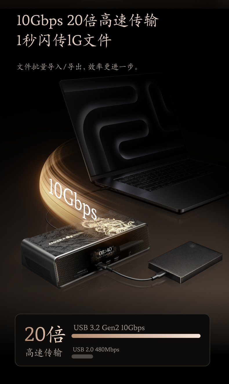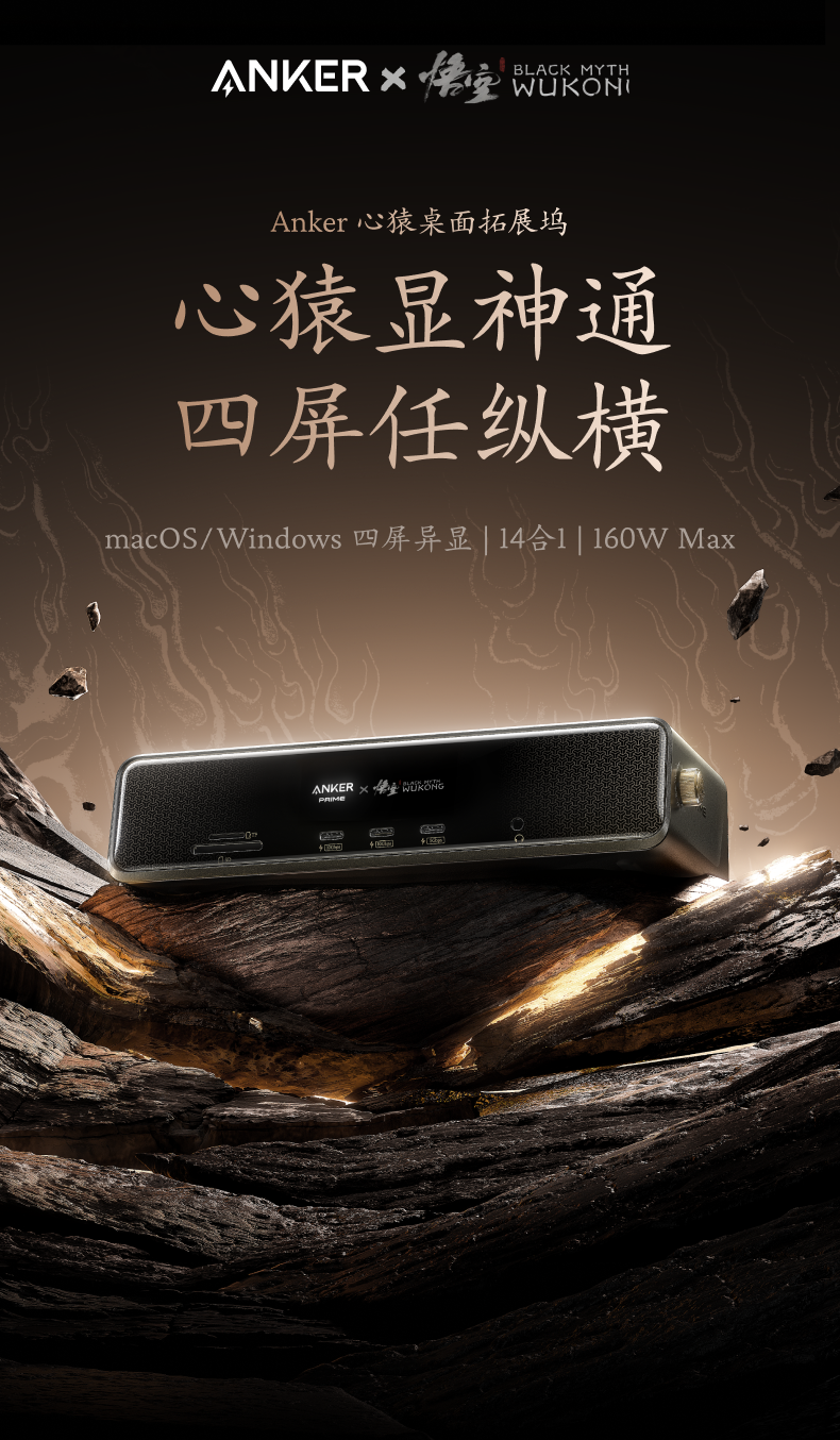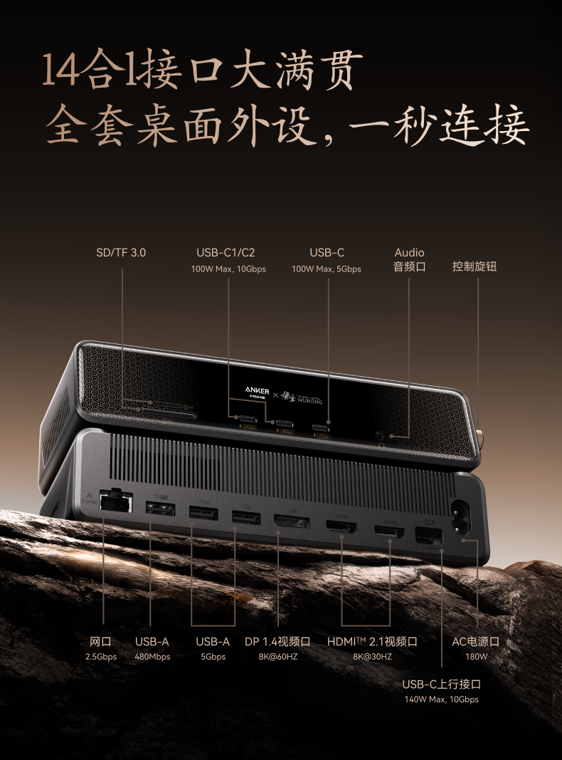 Anker Black Myth Collaboration Heart Ape Desktop Docking Station [3C Certified] 14-in-1 Docking Station Dual System Four-Screen Display 8K Split Screen Converter Multi-Interface Function USB Hub
