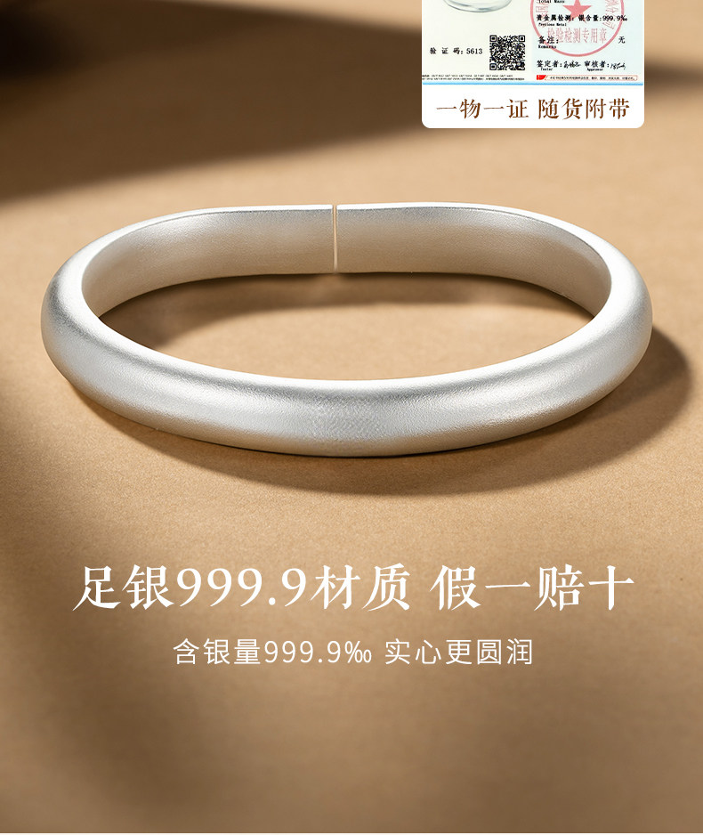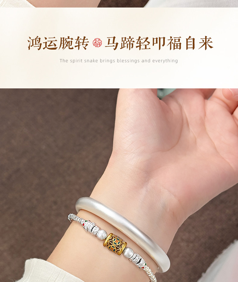 Plain Horseshoe Bracelet 9999 Pure Silver Enamel Color Solid Silver Bracelet Mother's Style Silver Bracelet for Women Ancient Method Mudfish Back Opening