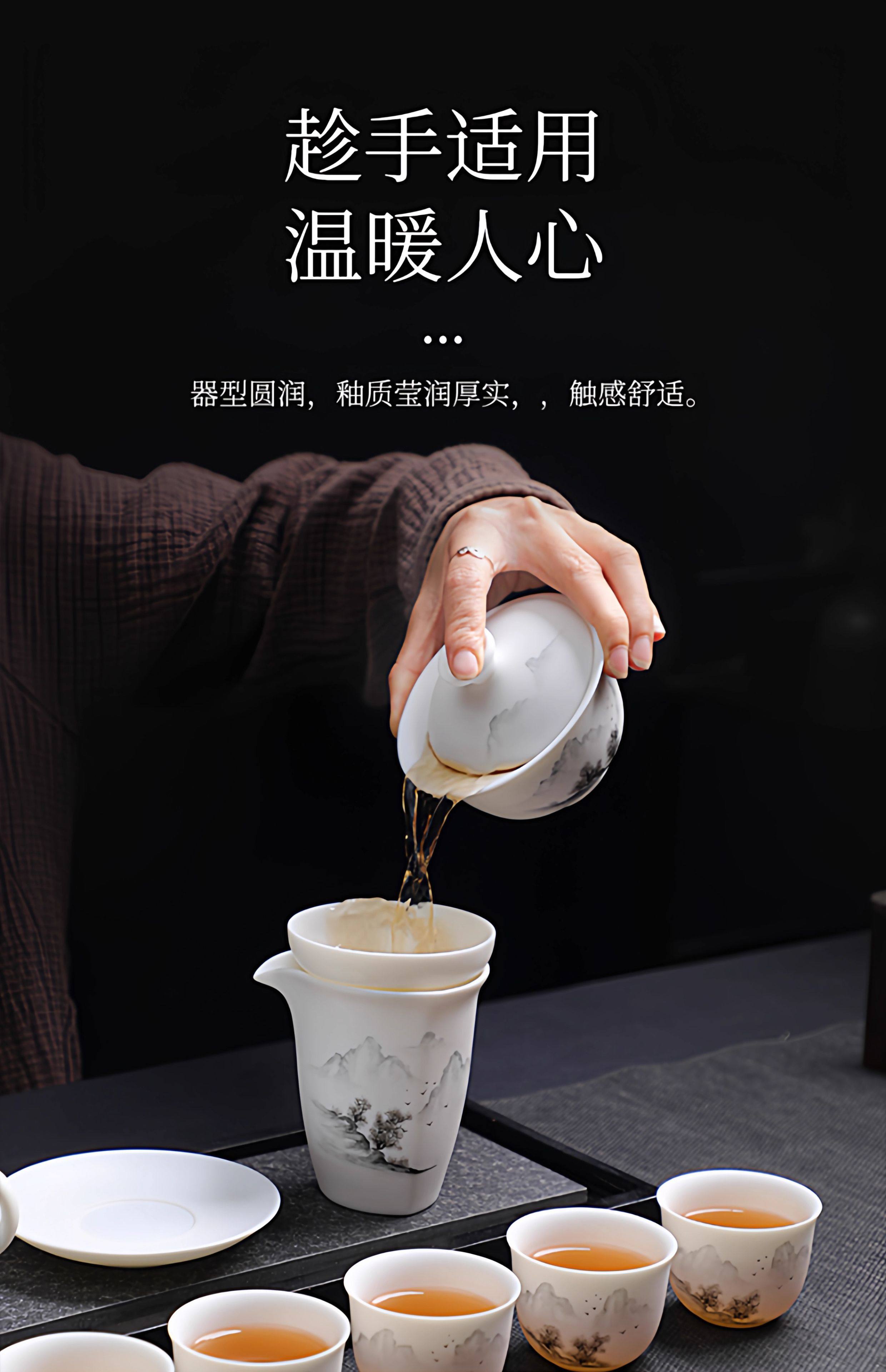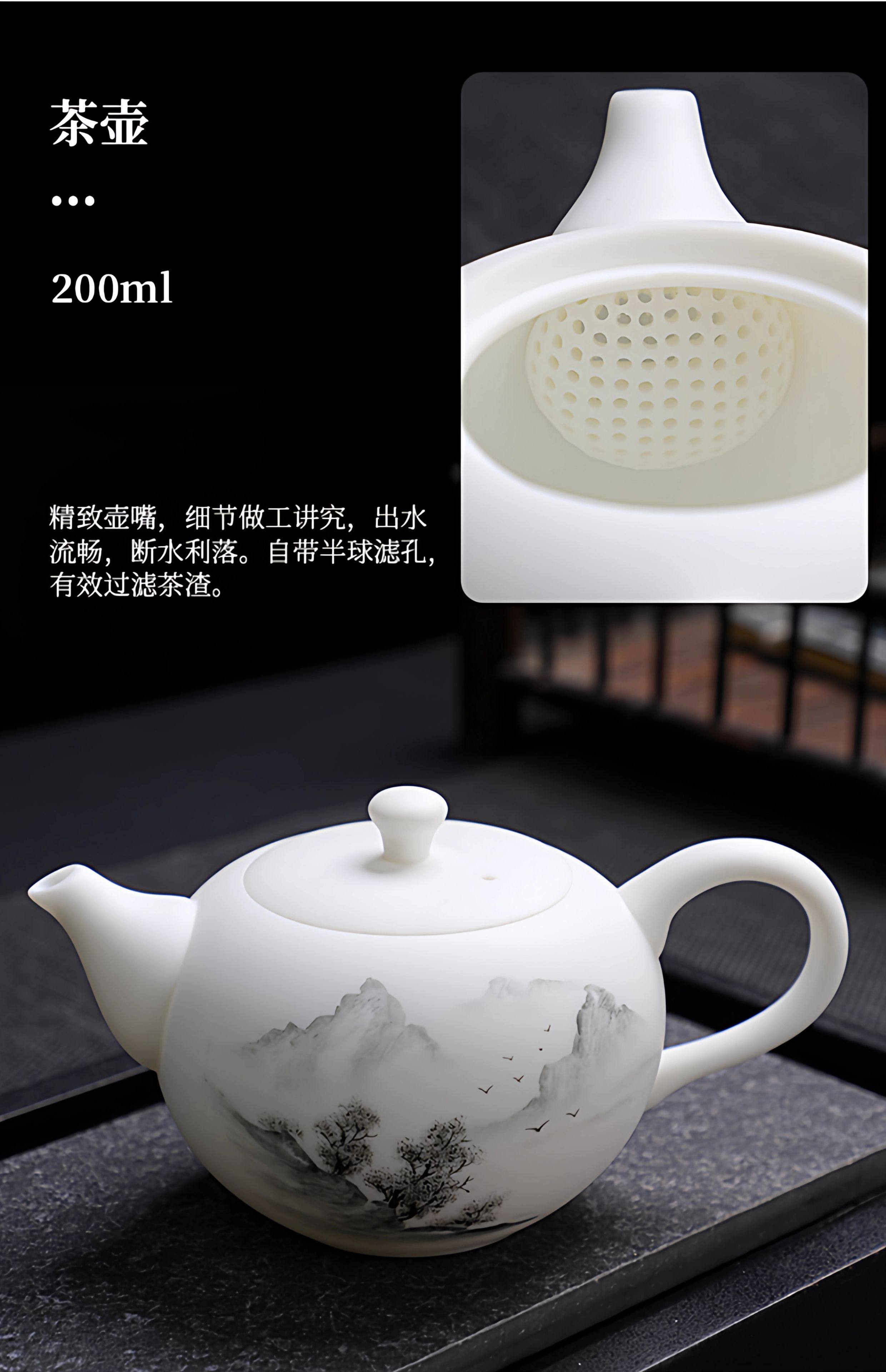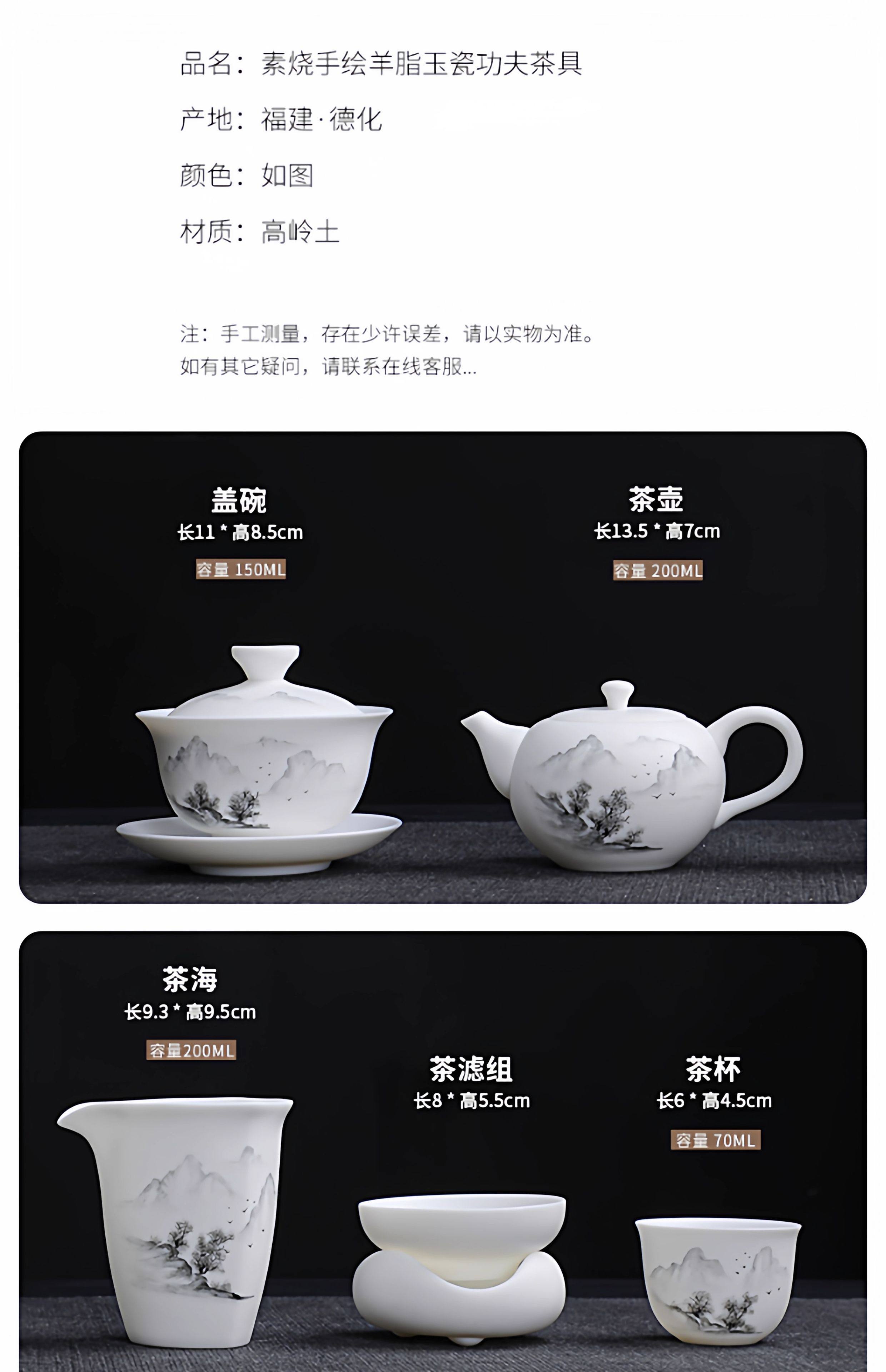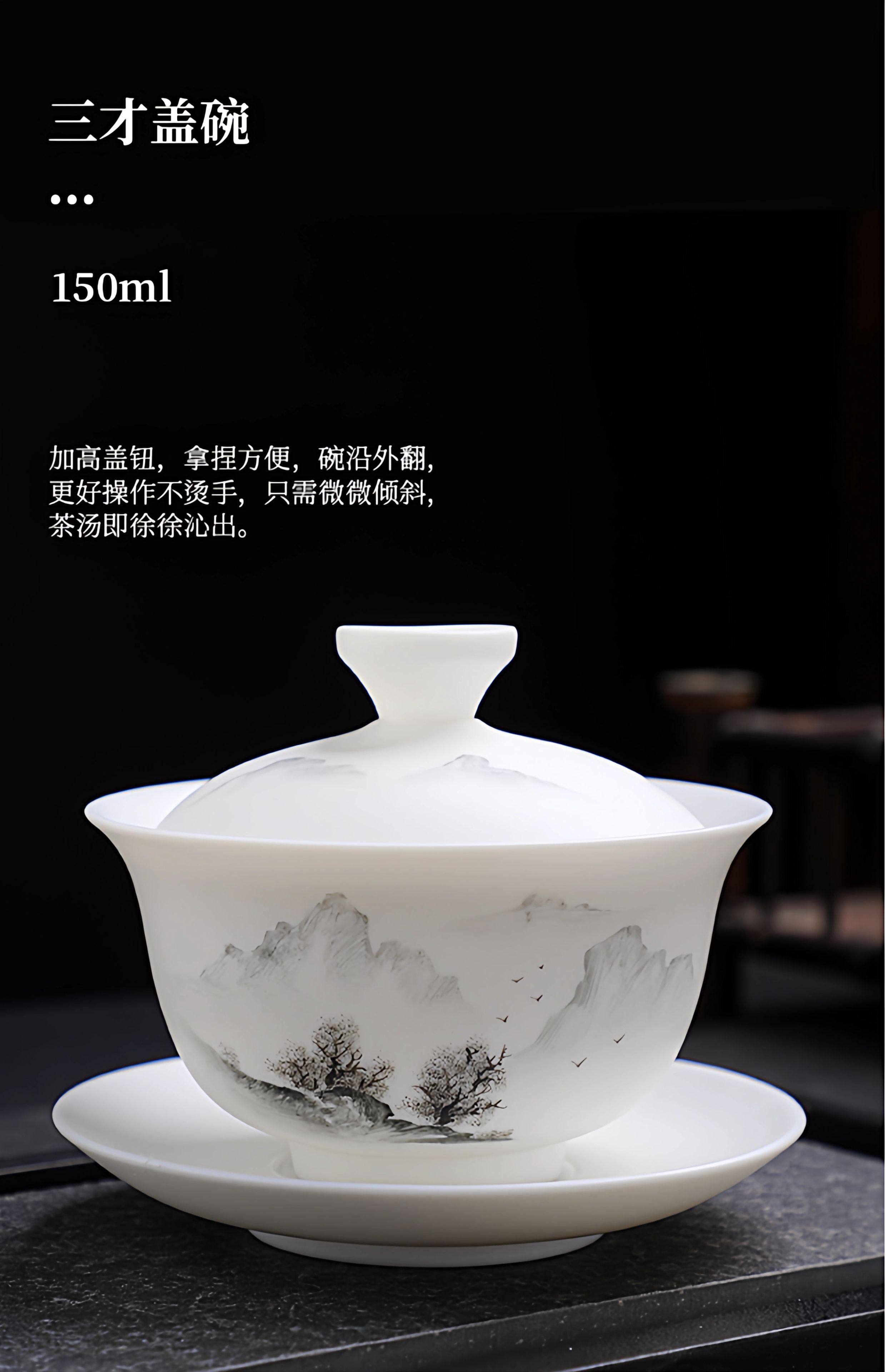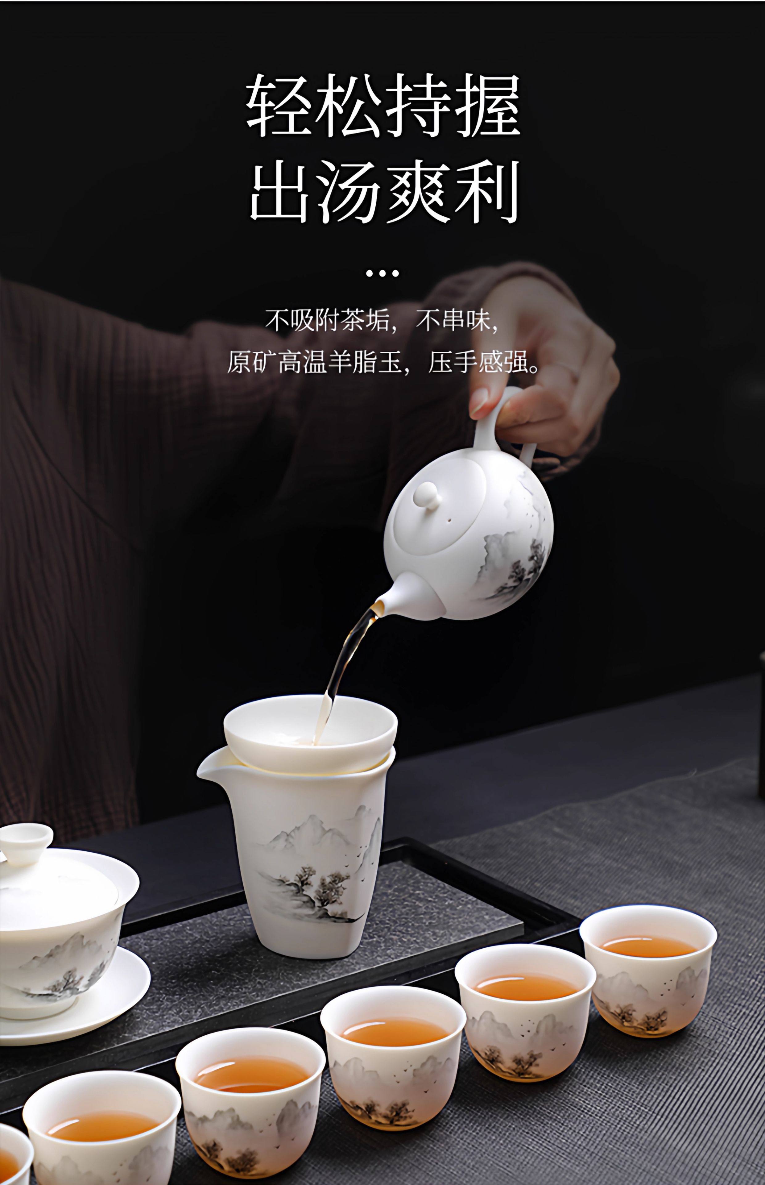 Light Luxury High-End Plain-Fired Jade Porcelain Tea Set for Home Use, Master Hand-Painted Ceramic Kung Fu Gaiwan Teapot Gift Box