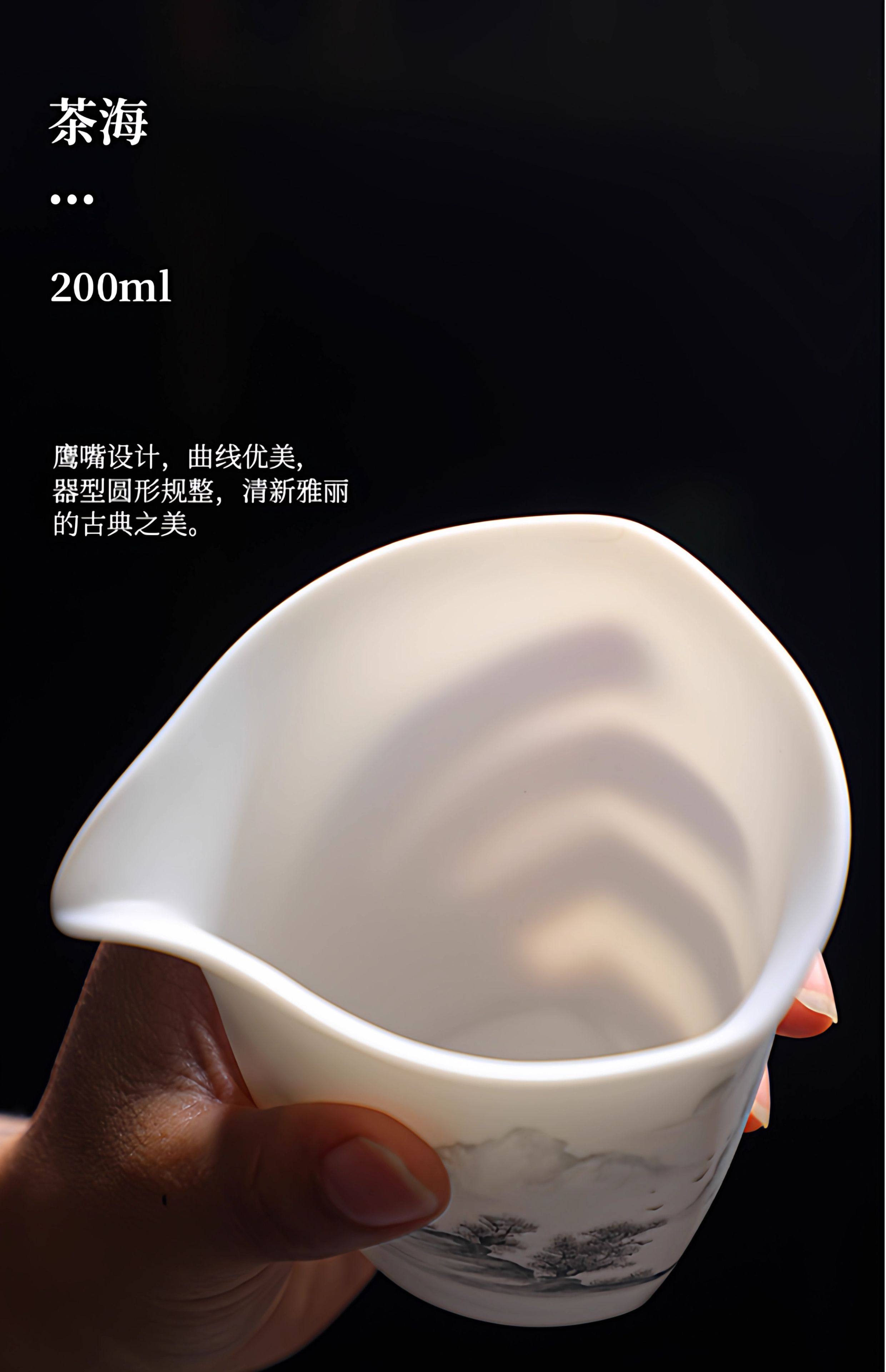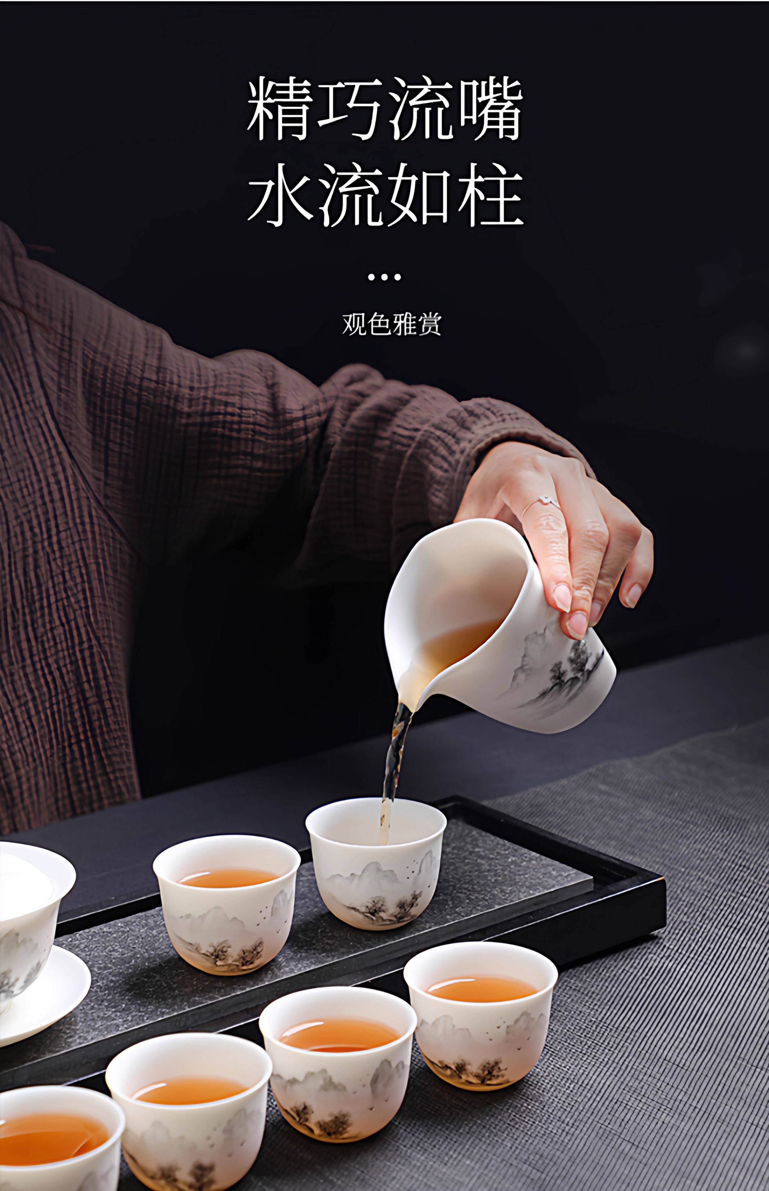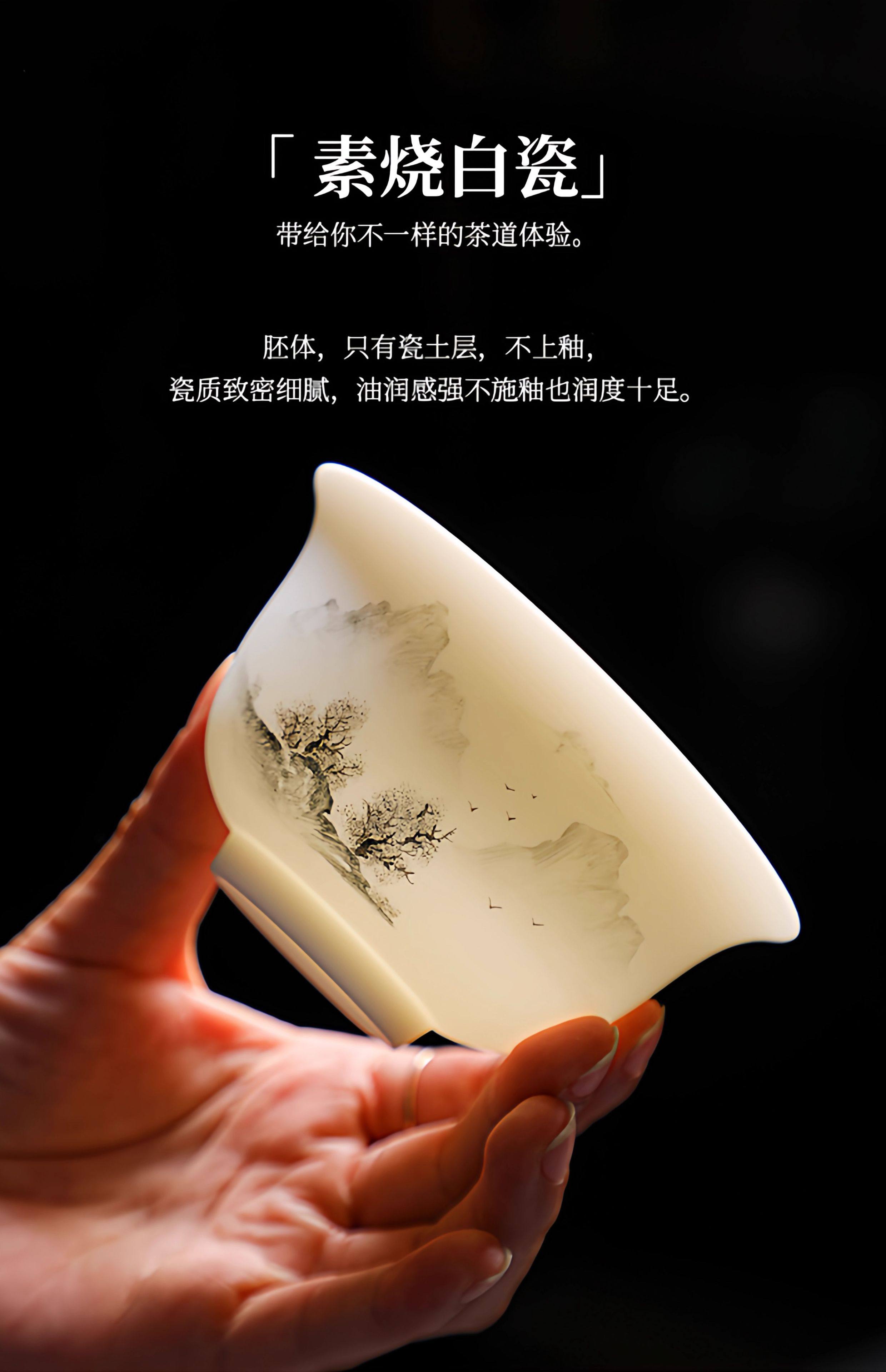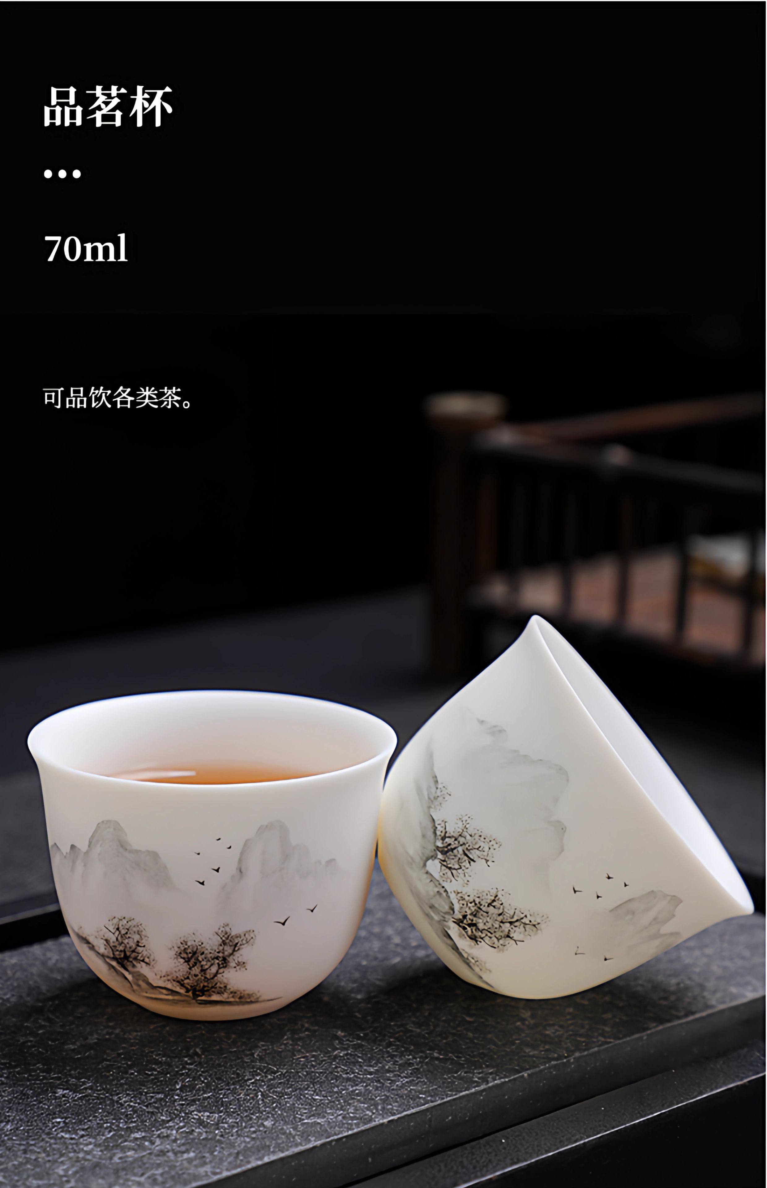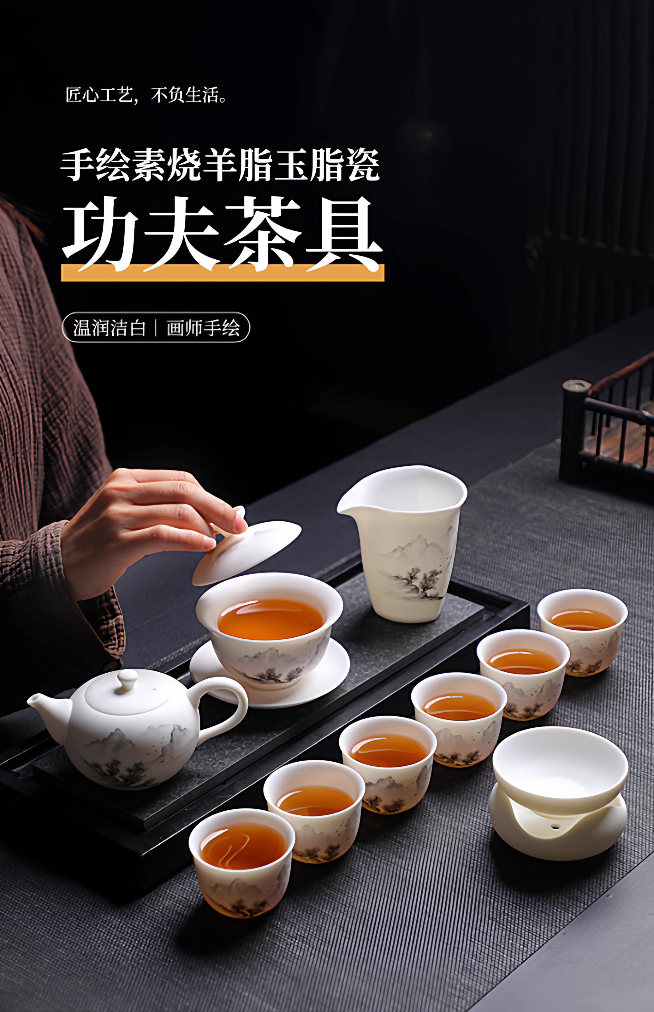 Light Luxury High-End Plain-Fired Jade Porcelain Tea Set for Home Use, Master Hand-Painted Ceramic Kung Fu Gaiwan Teapot Gift Box