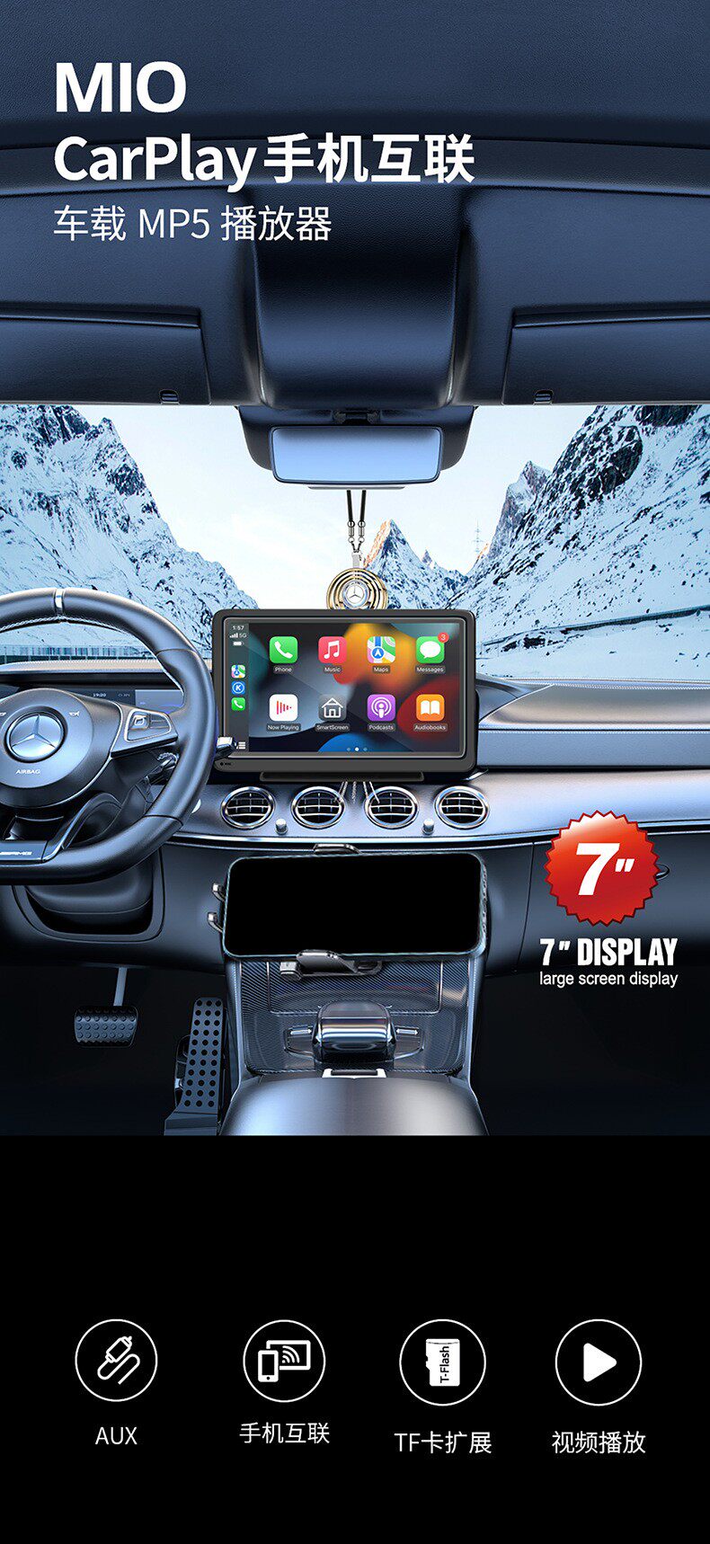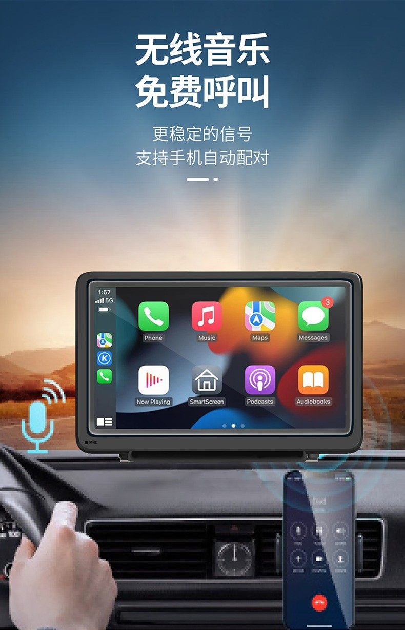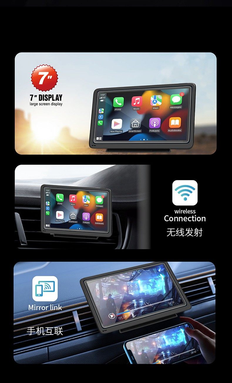 7inch Wireless Carplay Portable Car Screen Android Auto Wireless Screen Mirroring Smart Car-Machine Interconnection Mp5