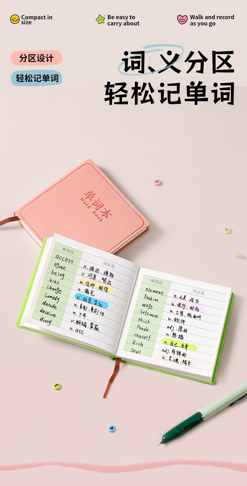 English Vocabulary Notebook, Portable Pocket-Sized A7 Small Notebook, High-Quality Notebook for Quick Memorization of Words, Memory Book for Dictation, Special Study Tool for Junior High School Students, Exam Preparation Artifact, Memo Notebook