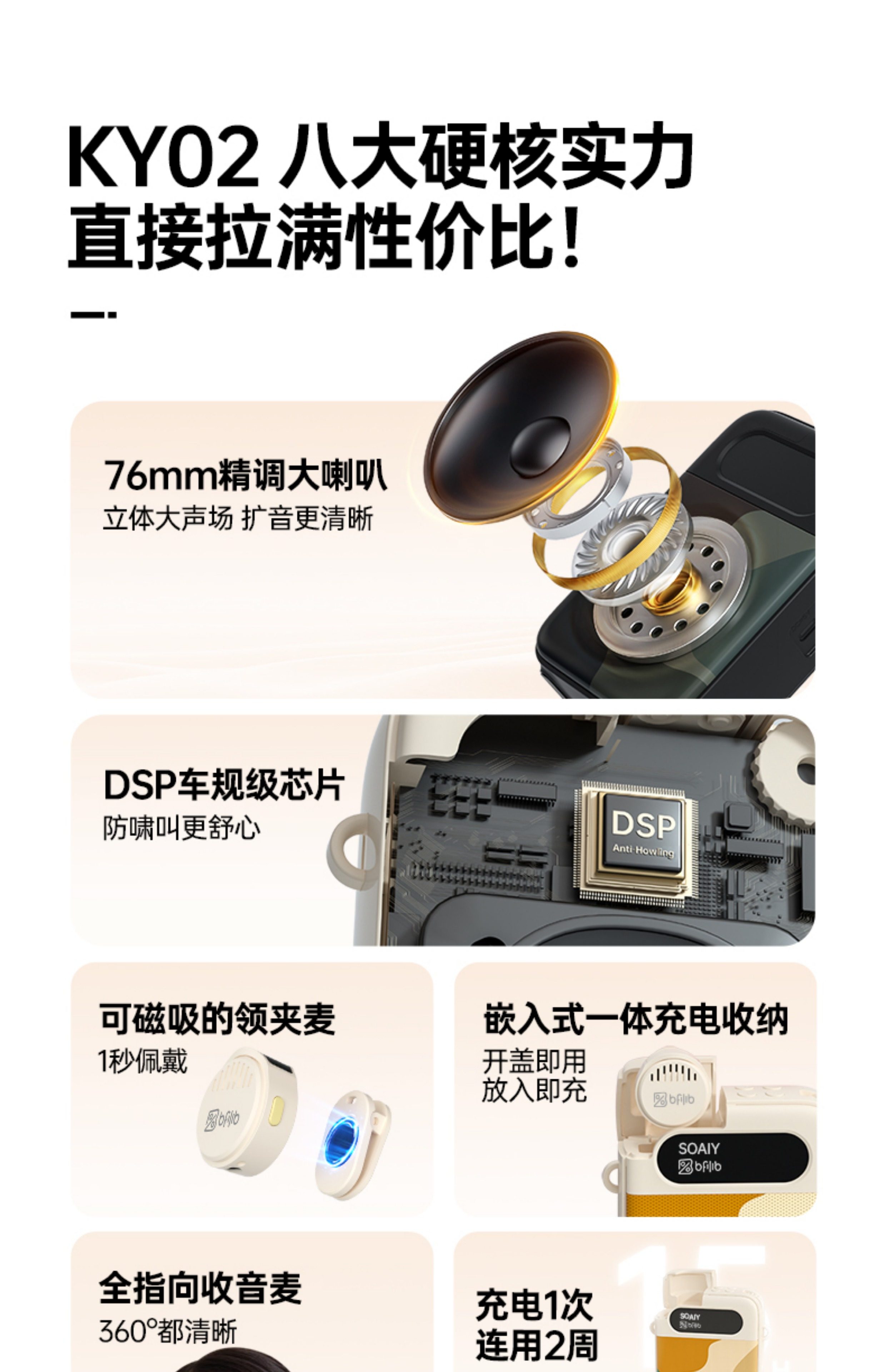 Soaiy Ky02 Wireless Loudspeaker for Teachers, Dedicated Microphone and Speaker for Teaching