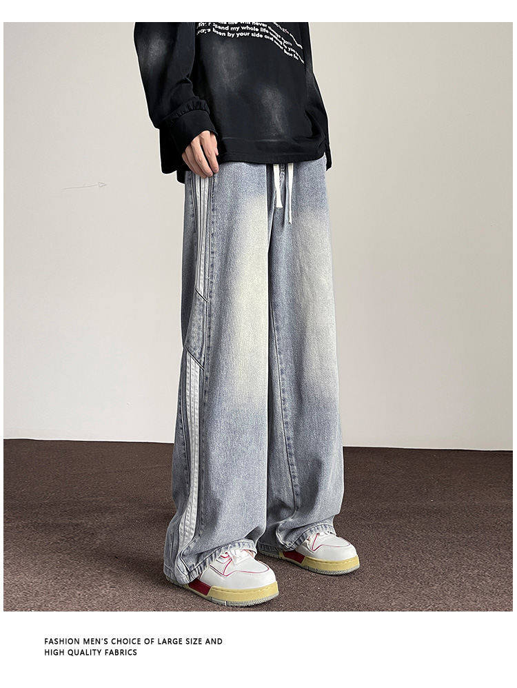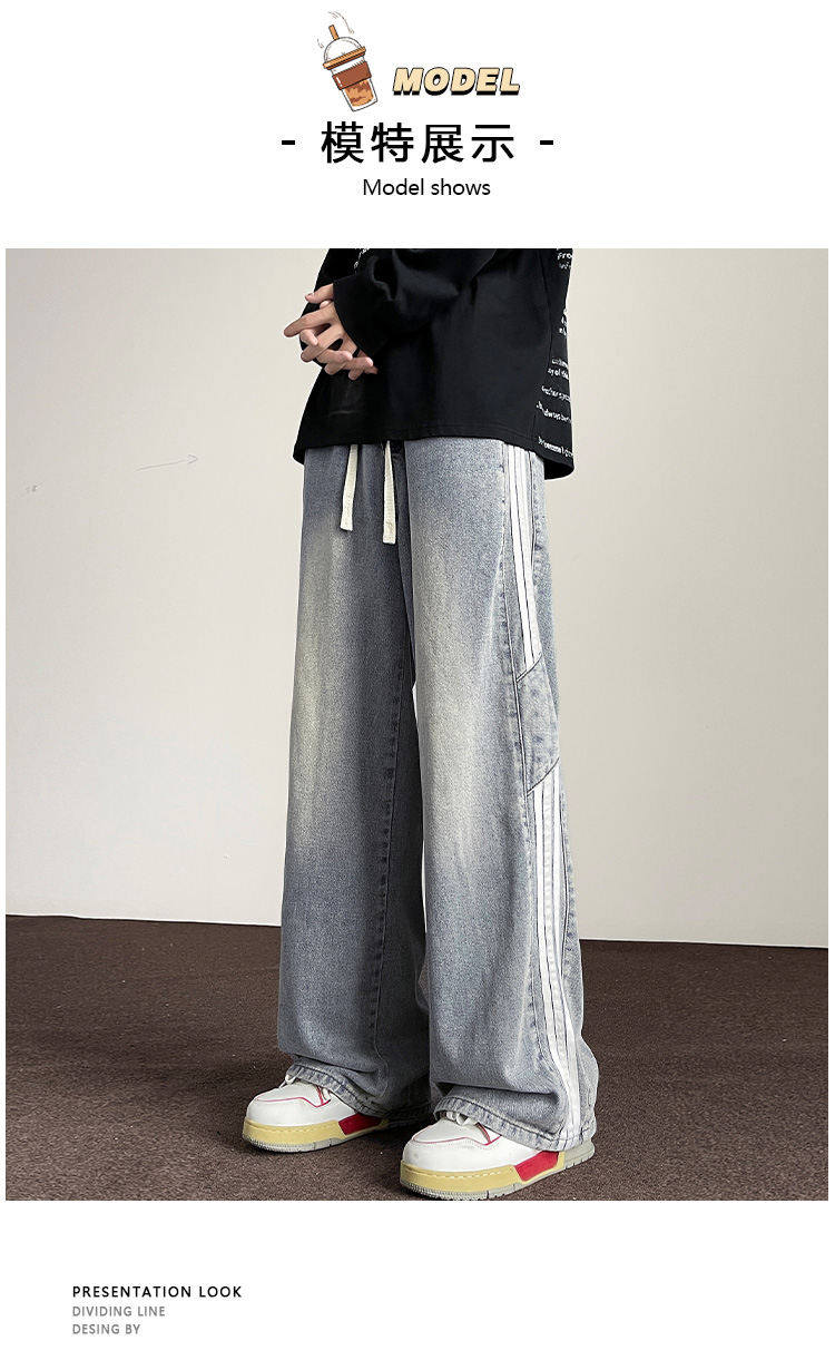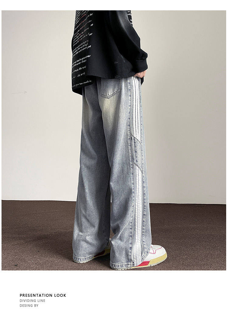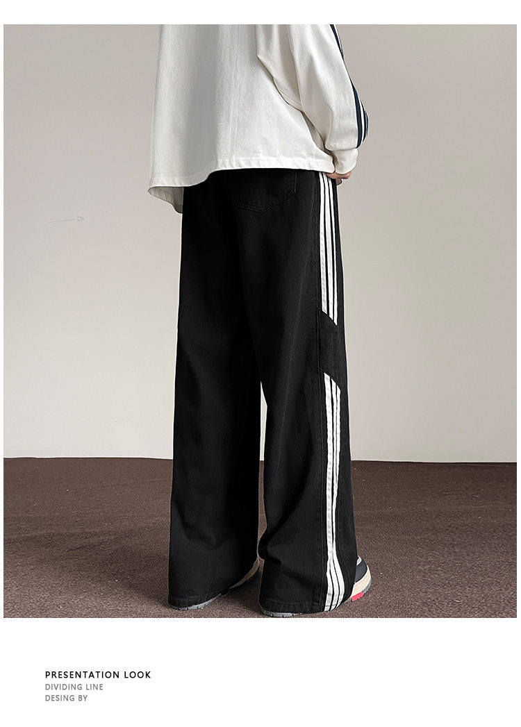 Striped Jeans for Women, Autumn and Winter 2025 New Style, Straight Loose Fit, Wide-Leg Pants for Middle and High School Students, American Style Long Pants