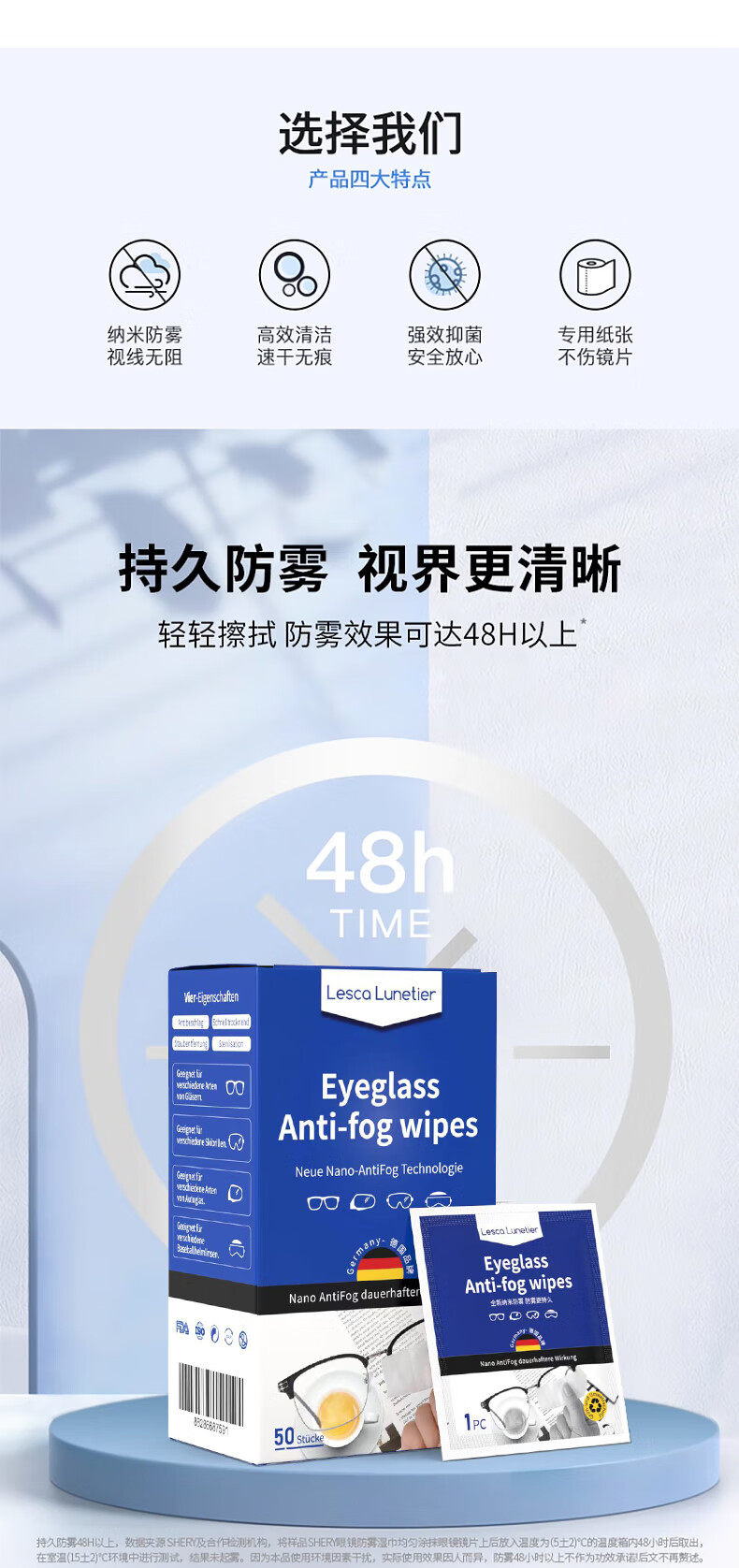 German Standard Glasses Cleaning Wipes, Glasses Paper, Disposable Wipes in Winter, Non-Damaging Lenses, Anti-Fog Eye Cloth