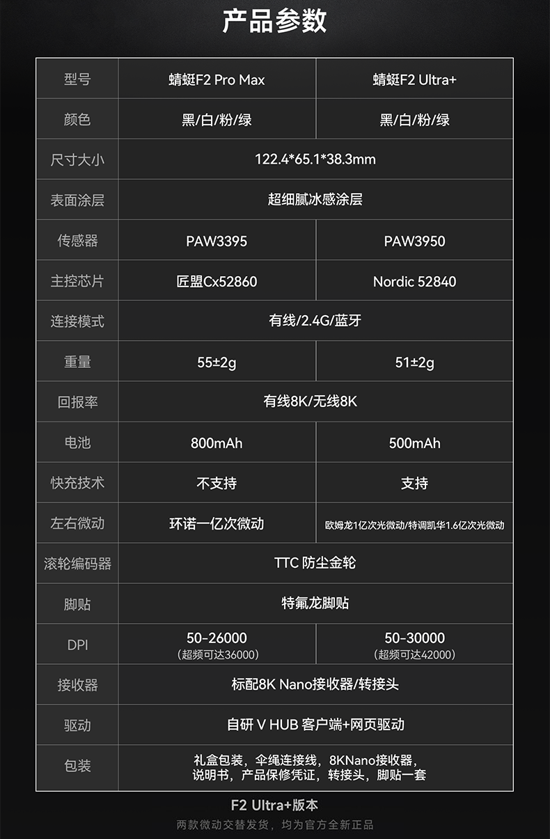| Color Classification | Vgn Dragonfly F2 Pro Max White,Vgn Dragonfly F2 Pro Max Black,Vgn Dragonfly F2 Pro Max Green,Vgn Dragonfly F2 Pro Max Pink,Vgn Dragonfly F2 Master Edition White,Vgn Dragonfly F2 Master Edition Black,Vgn Dragonfly F2 Master Edition Pink,Vgn Dragonfly F2 Master Edition Green,Vgn Dragonfly F2 Master Edition + White,Vgn Dragonfly F2 Master Edition + Black,Vgn Dragonfly F2 Master Edition + Pink,Vgn Dragonfly F2 Master Edition + Green,Vgn Dragonfly F2 Master Edition + Rose Red,Vgn Dragonfly F2 Master Edition + Black Powder,Vgn Dragonfly F2 Ultra+ White Fast Charge,Vgn Dragonfly F2 Ultra+ Black Fast Charge,Vgn Dragonfly F2 Ultra+ Green Fast Charge,Vgn Dragonfly F2 Ultra+ Pink Fast Charge,Vgn Dragonfly F2 Ultra+ White Fast Charge + Flying Saucer 8K Receiver,Vgn Dragonfly F2 Ultra+ Black Fast Charge + Flying Saucer 8K Receiver,Vgn Dragonfly F2 Ultra+ Green Fast Charge + Flying Saucer 8K Receiver,Vgn Dragonfly F2 Ultra+ Pink Fast Charge + Ufo 8K Receiver,Vgn Dragonfly F2 Pro Max White + Ufo 8K Receiver,Vgn Dragonfly F2 Pro Max Black + Ufo 8K Receiver,Vgn Dragonfly F2 Pro Max Green + Ufo 8K Receiver,Vgn Dragonfly F2 Pro Max Pink + Ufo 8K Receiver,Vgn Dragonfly F2 Pro Max White + Competition-Specific Anti-Slip Grip Combo,Vgn Dragonfly F2 Pro Max Black + Competition-Specific Anti-Slip Grip Combo,Vgn Dragonfly F2 Pro Max Pink + Competition-Specific Anti-Slip Grip Combo,Vgn Dragonfly F2 Pro Max Green + Competition-Specific Anti-Slip Sticker Combination,Vgn Dragonfly F2 Ultra+ White Fast Charging + Competition-Specific Anti-Slip Sticker Combination,Vgn Dragonfly F2 Ultra+ Black Fast Charging + Competition-Specific Anti-Slip Sticker Combination,Vgn Dragonfly F2 Ultra+ Green Fast Charging + Competition-Specific Anti-Slip Sticker Combination,Vgn Dragonfly F2 Ultra+Pink Fast Charge+Competition-Specific Anti-Slip Sticker Combination |