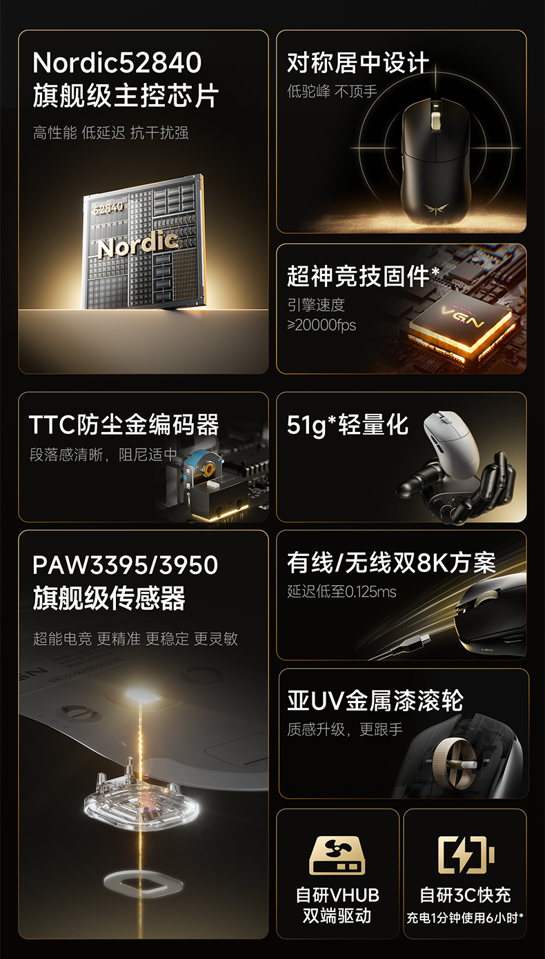 Vgn Dragonfly F2 Promax Master Edition Wireless Three-Mode Long Battery Life Gaming Mouse Wired Laptop