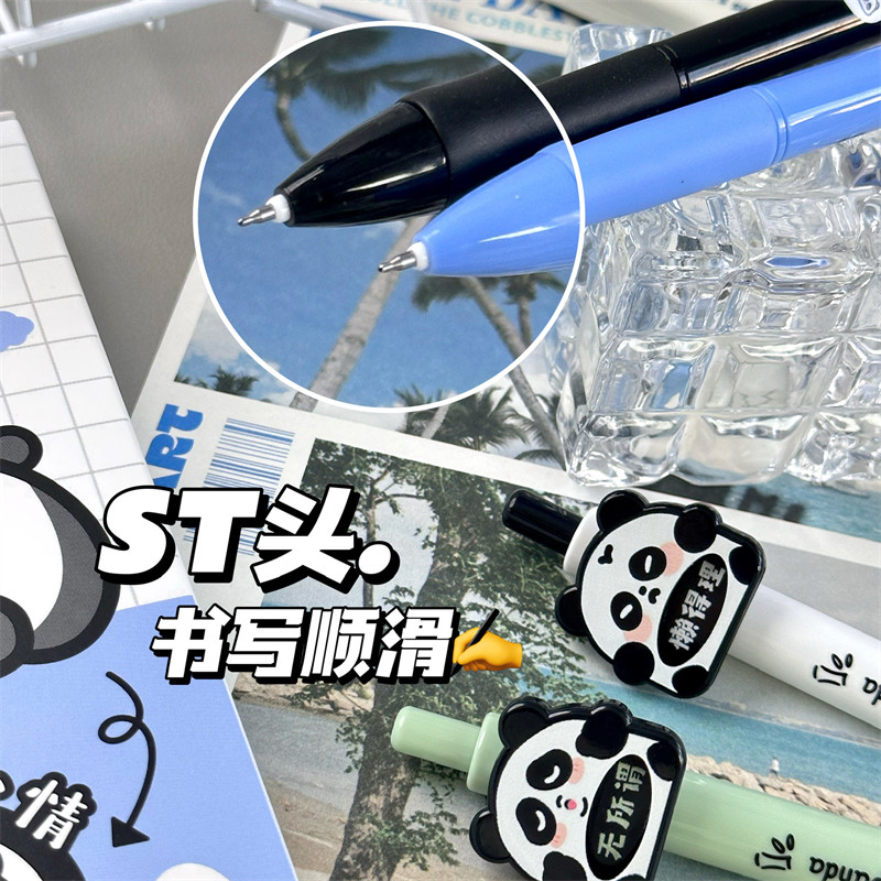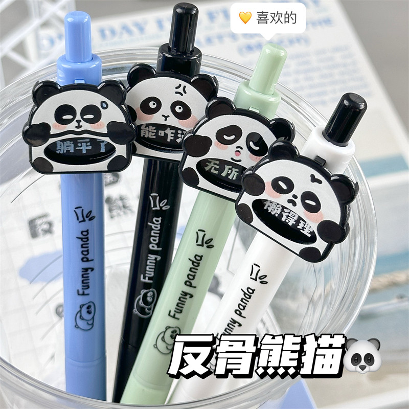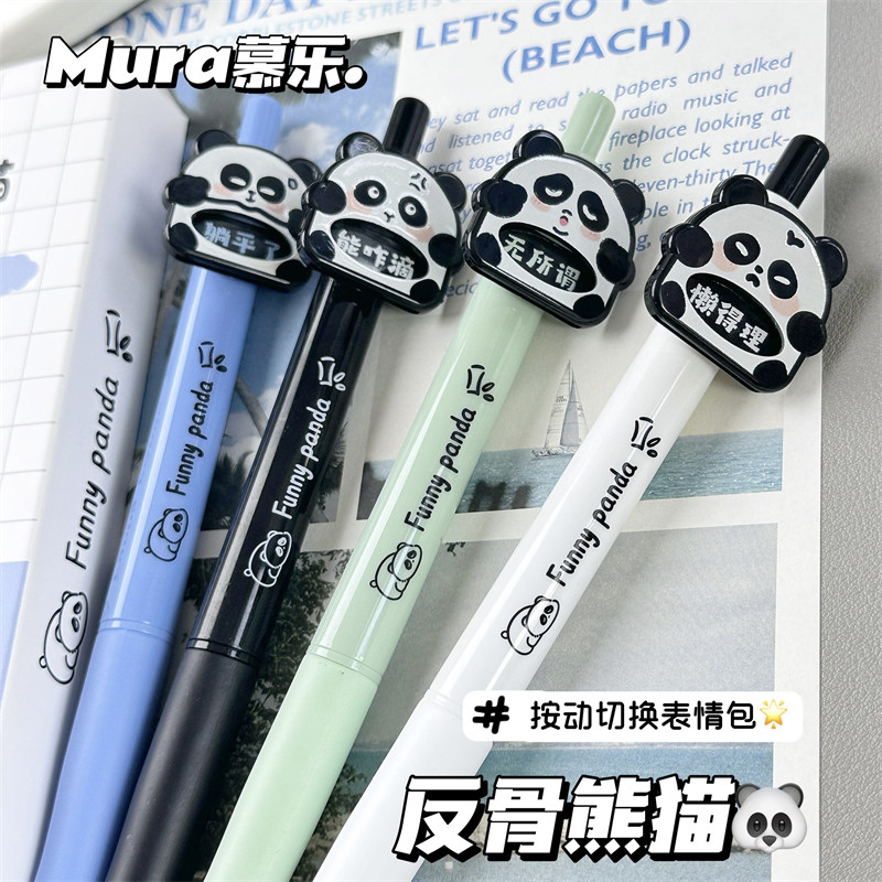 Mura Mule Anti-Bone Panda Cute Emoji Press Gel Pen High Aesthetic ins Style Creative Exam Pen 0.5mm Black Pen Student Exam Writing Quick-Dry Smooth St Tip Easy-To-Write Signature Pen