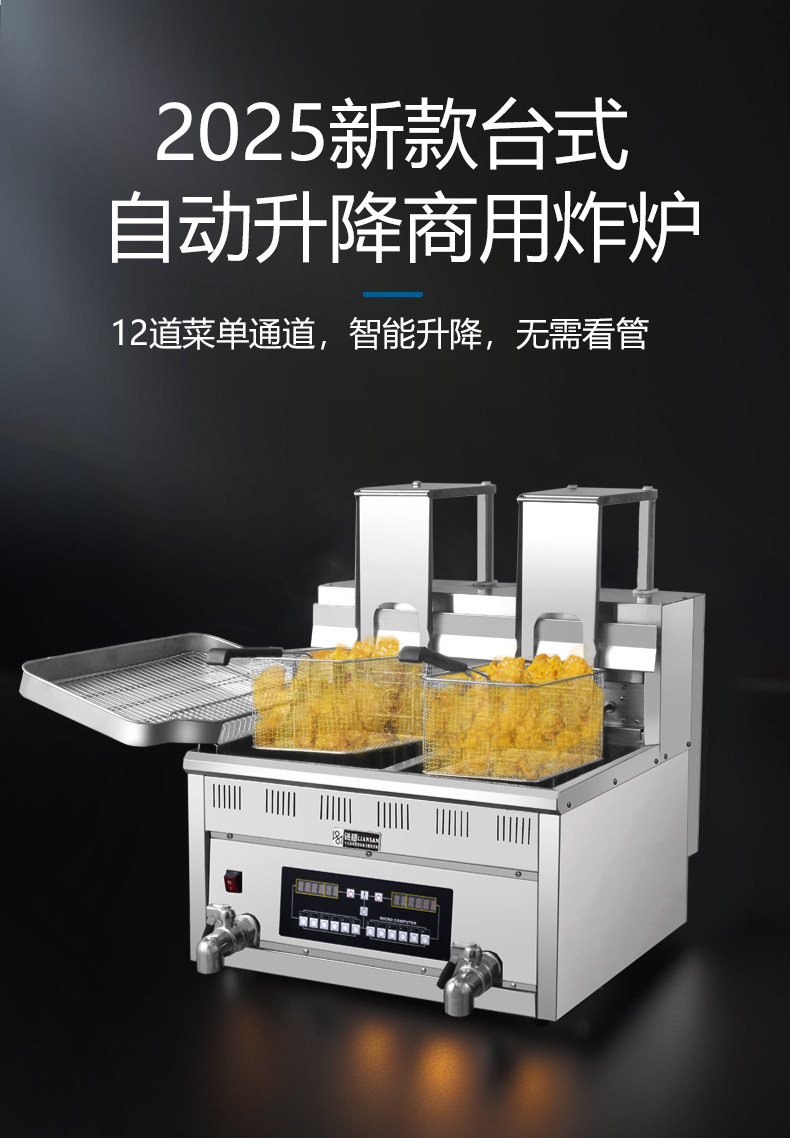 Chain-Operated Commercial Timed Desktop Intelligent Fully Automatic Lifting and Lowering Timer-Controlled Single/Double Cylinder Temperature-Controlled Electric Deep Fryer for Fried Chicken