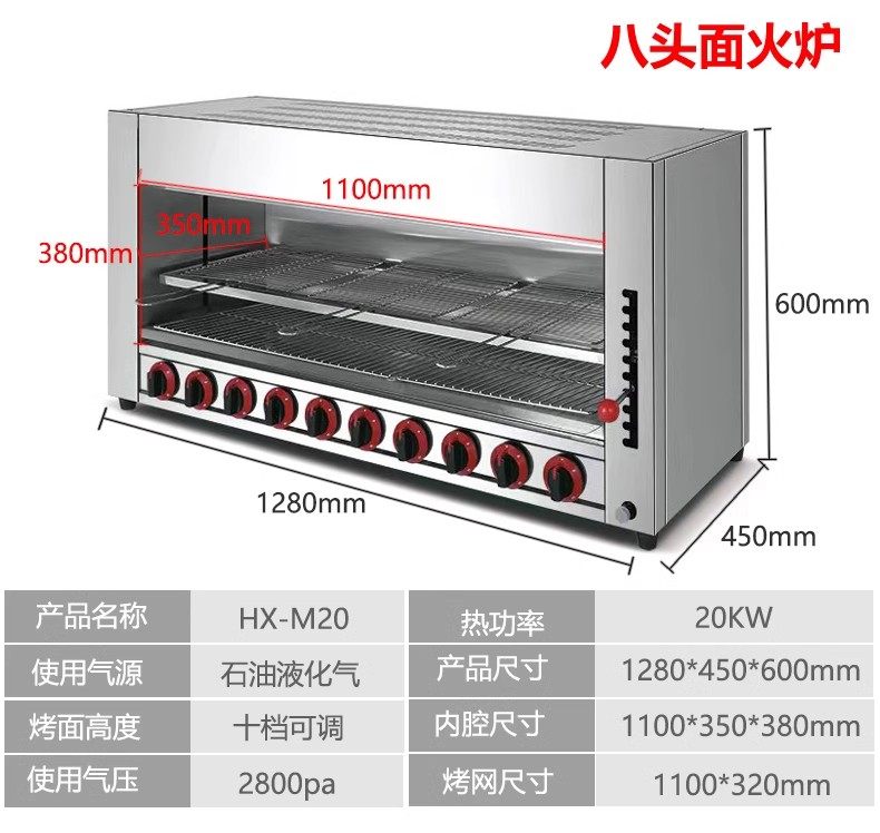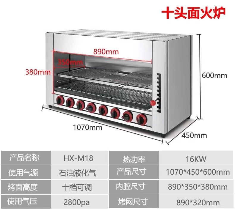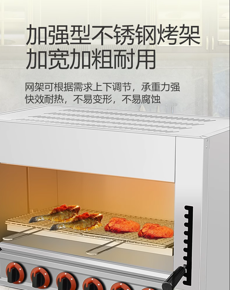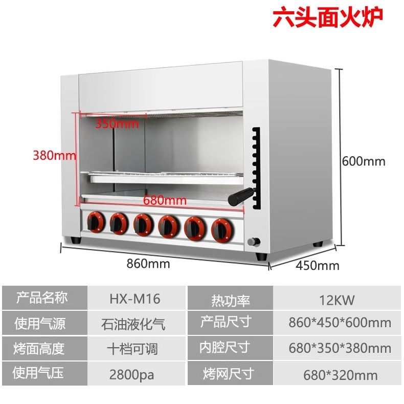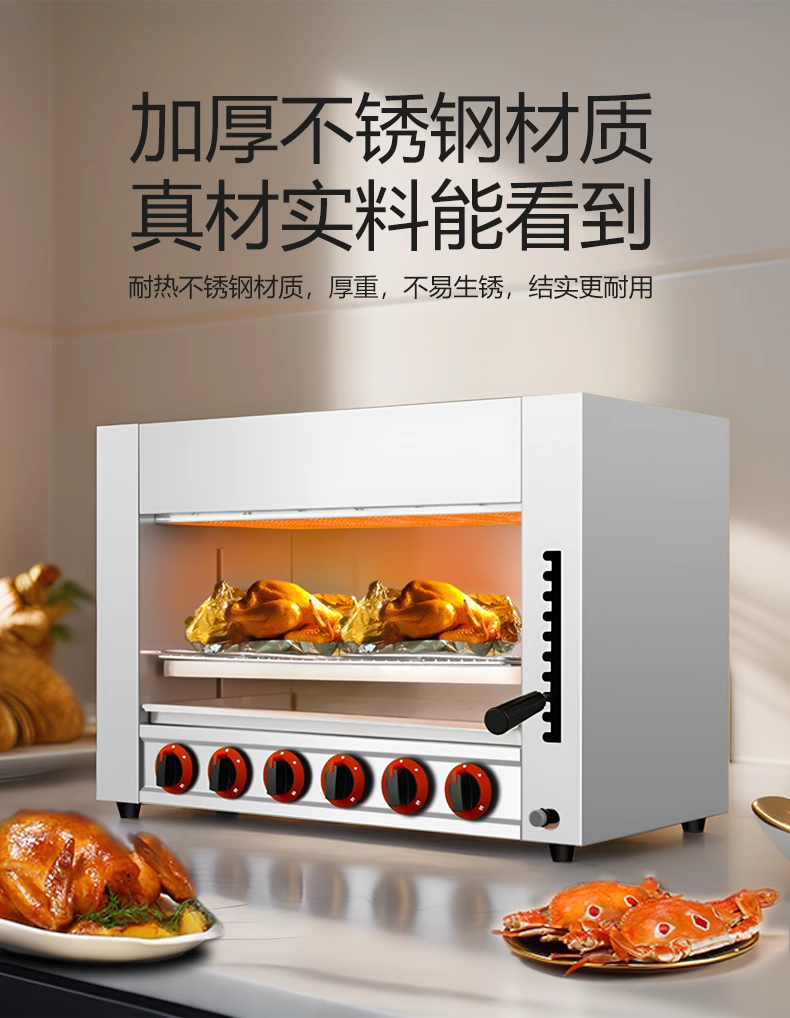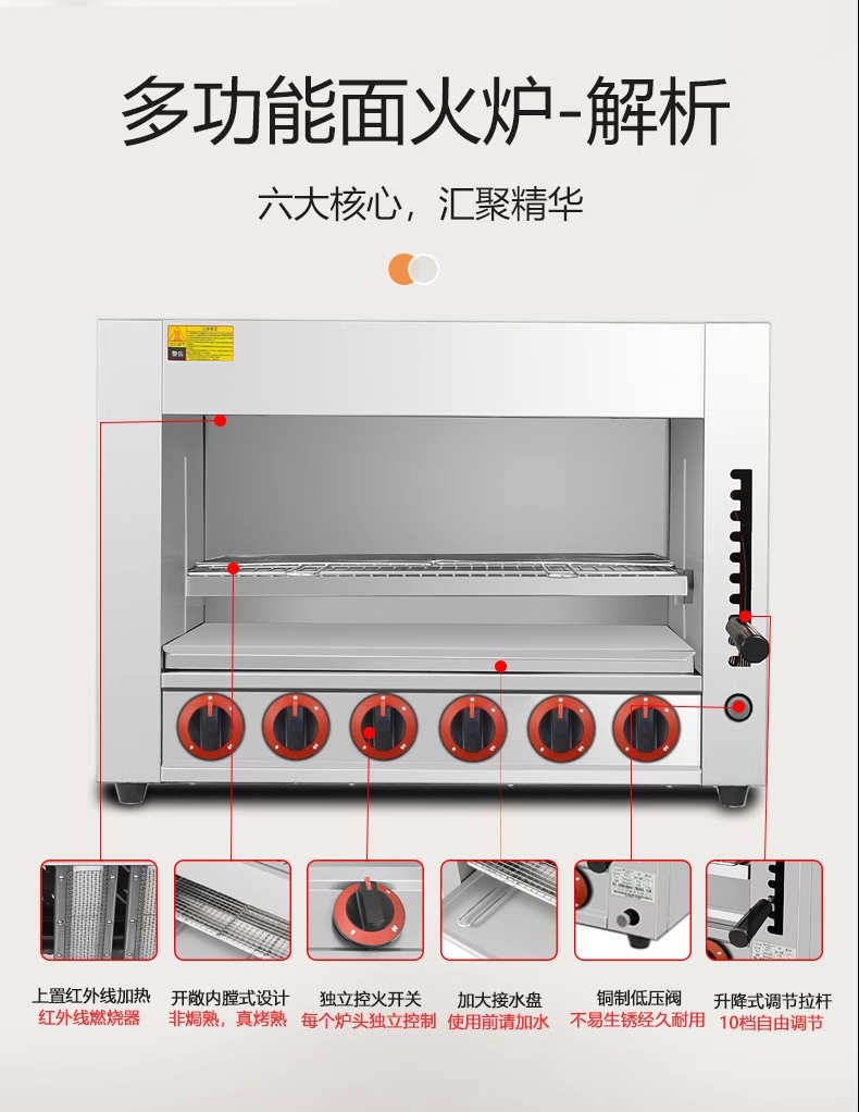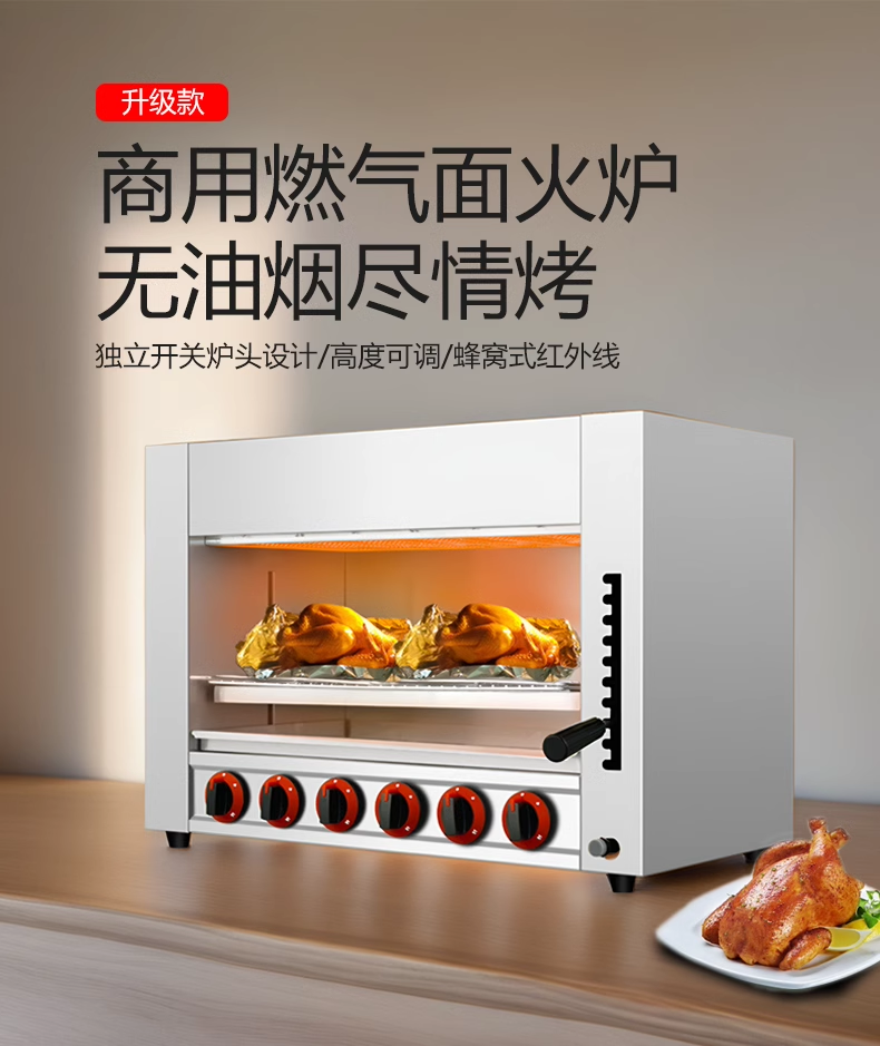 Commercial Gas Lift-Top Stove Smokeless Gas Open-Air Oven for Grilling Fish, Oysters, Chicken, Grilled Durian, Pizza
