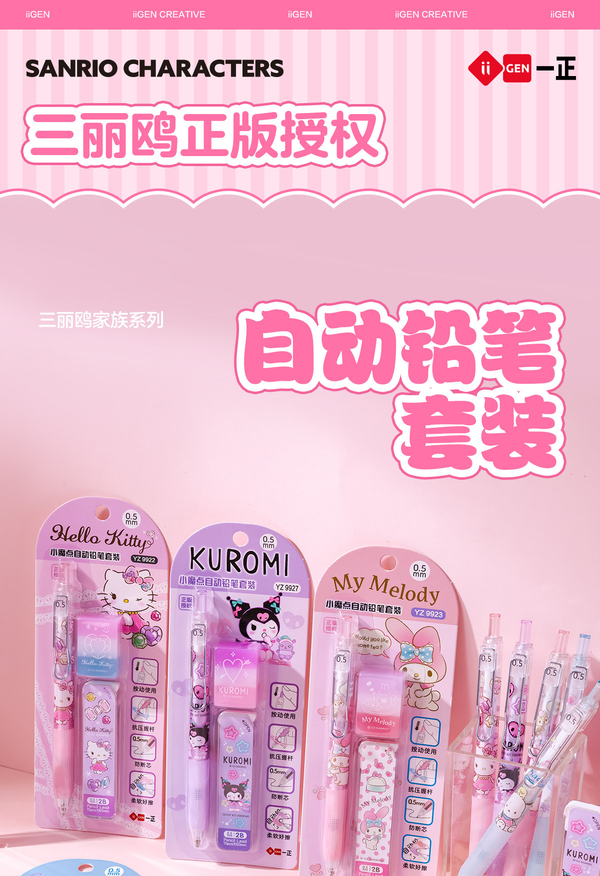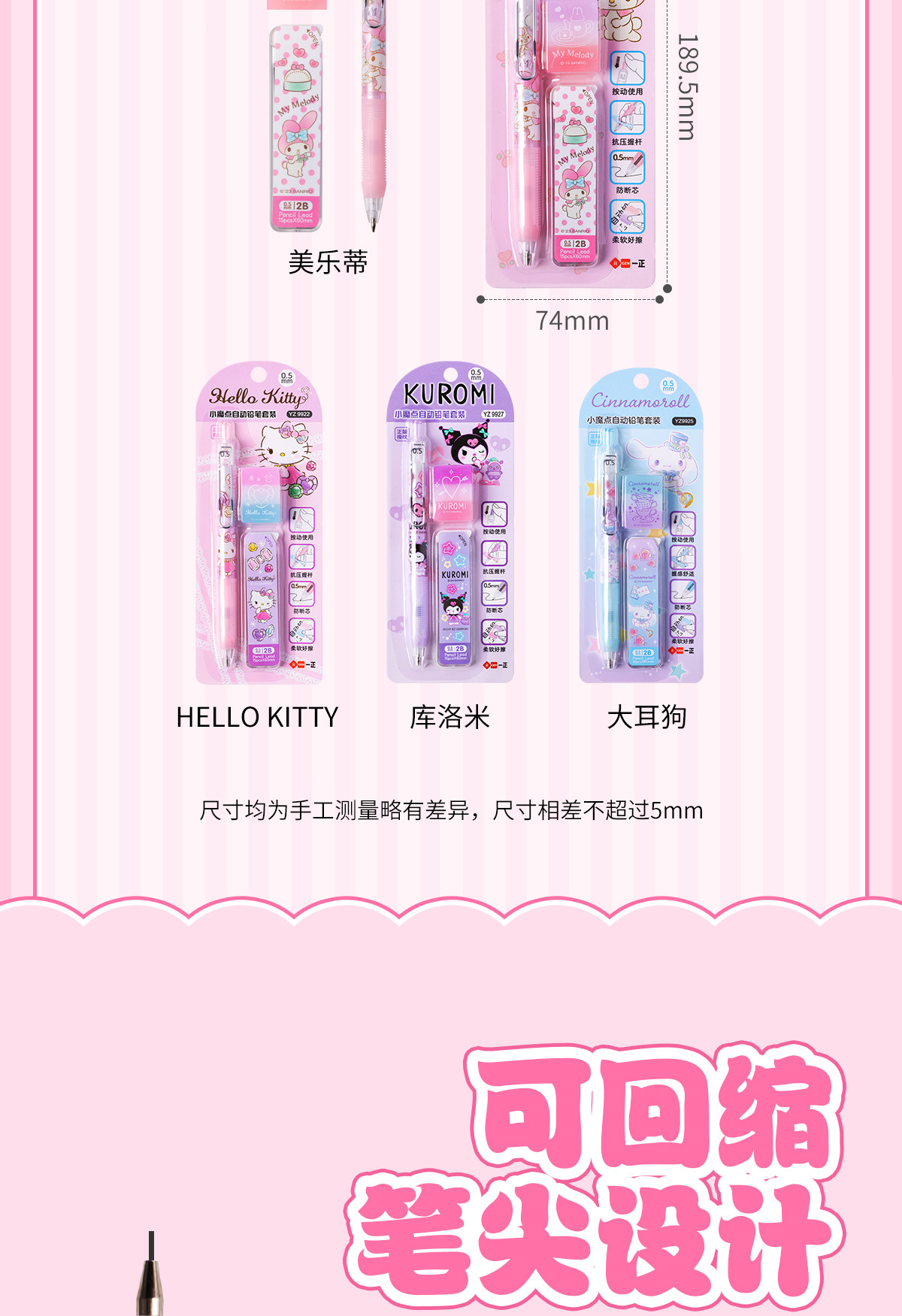 Yizheng Elementary School Student Mechanical Pencil 0.5mm Sanrio Little Mo Dot Mechanical Pencil My Melody Pencil Cinnamoroll Mechanical Pencil Set Low Center of Gravity Not Easy to Break Lead Kuromi Children's Pencil