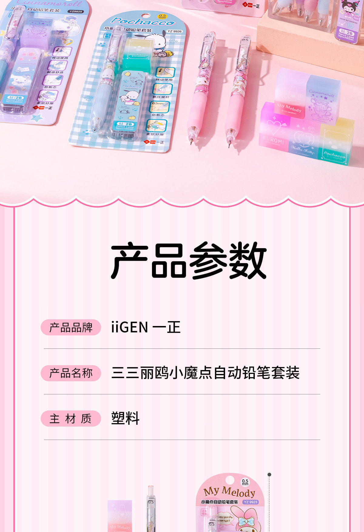 | Color Classification | Yz9922 Kitty Automatic Pencil Set,Yz9923 My Melody Automatic Pencil Set,Yz9925 Cinnamoroll Automatic Pencil Set,Yz9926 Pacha Dog Little Magic Point Automatic Pencil Set,Yz9927 Kuromi Magic Point Automatic Pencil Set,Yz320056 Frozen Magic Point Automatic Pencil Set,Yz360051 Zootopia Judy Little Magic Point Automatic Pencil Set,Yz360051 Zootopia Nick Little Devil Automatic Pencil Set,Yz300019 Pikachu Magic Point Automatic Pencil Set,Yz300019 Jigglypuff Magic Dot Automatic Pencil Set |