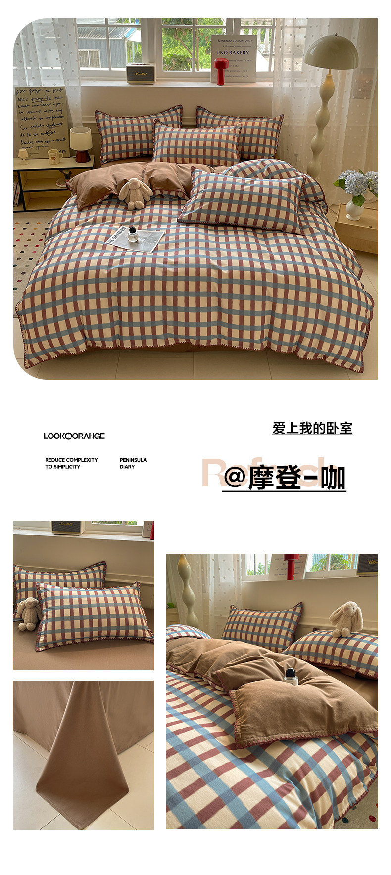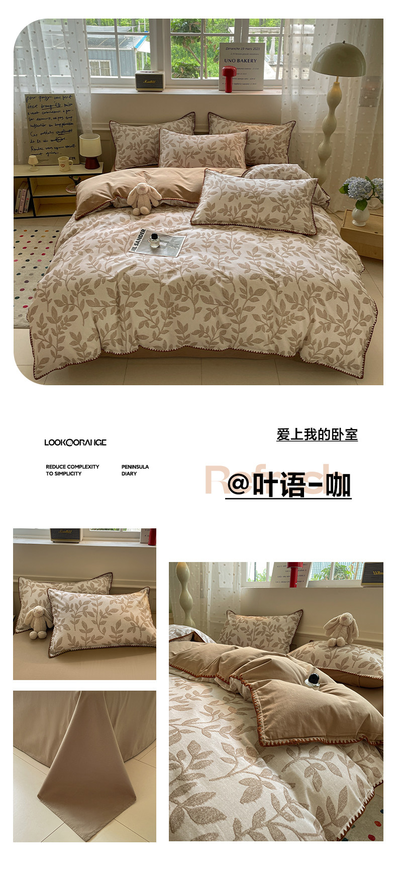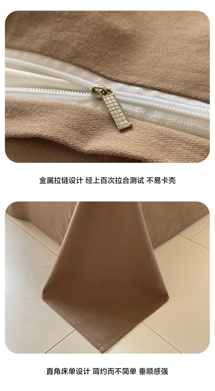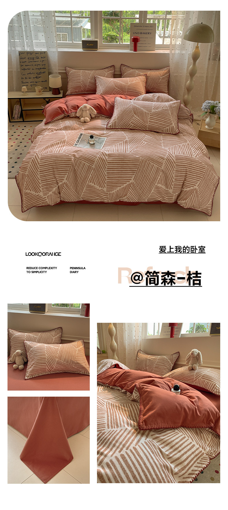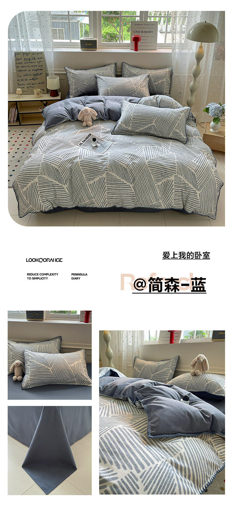 Muji Thickened Pure Cotton Brushed Bed Set Four-Piece Set, Simple Pure Cotton Autumn and Winter Bed Sheet and Duvet Cover Three-Piece Bedding Set
