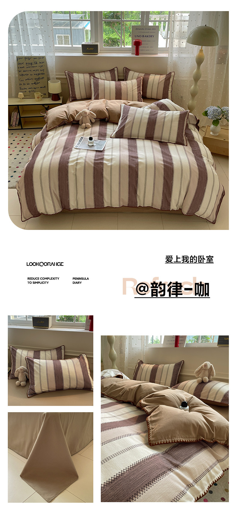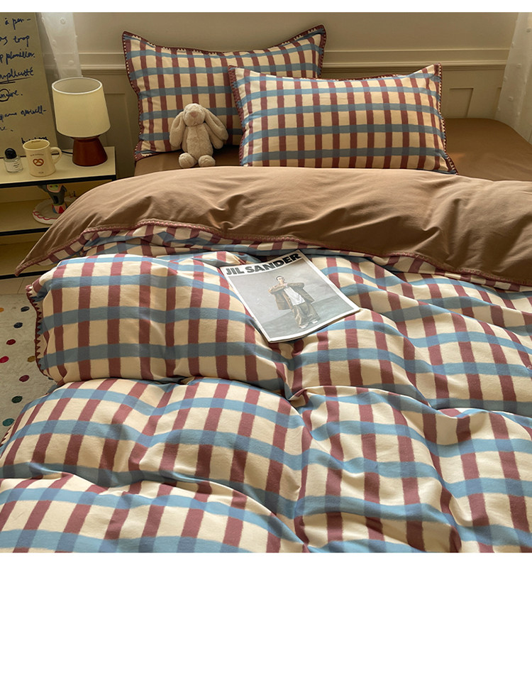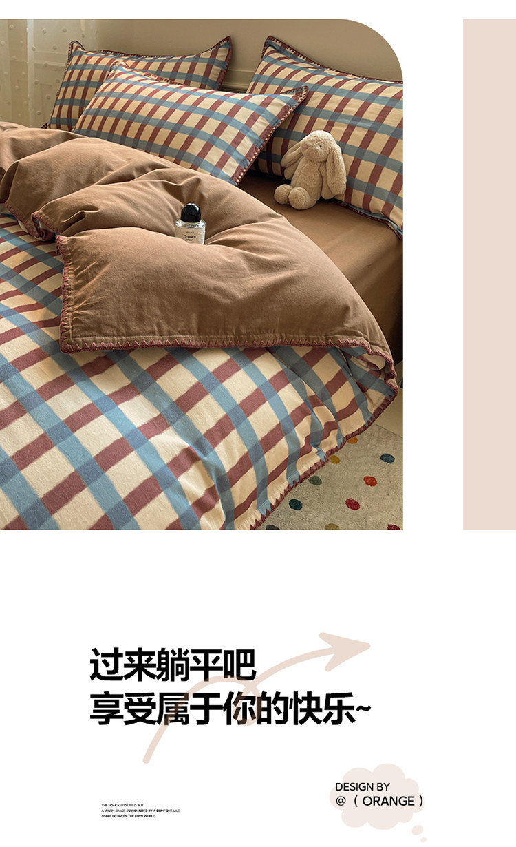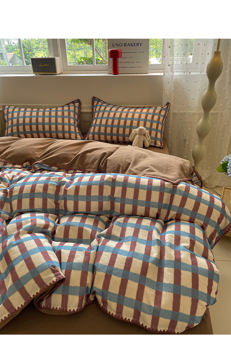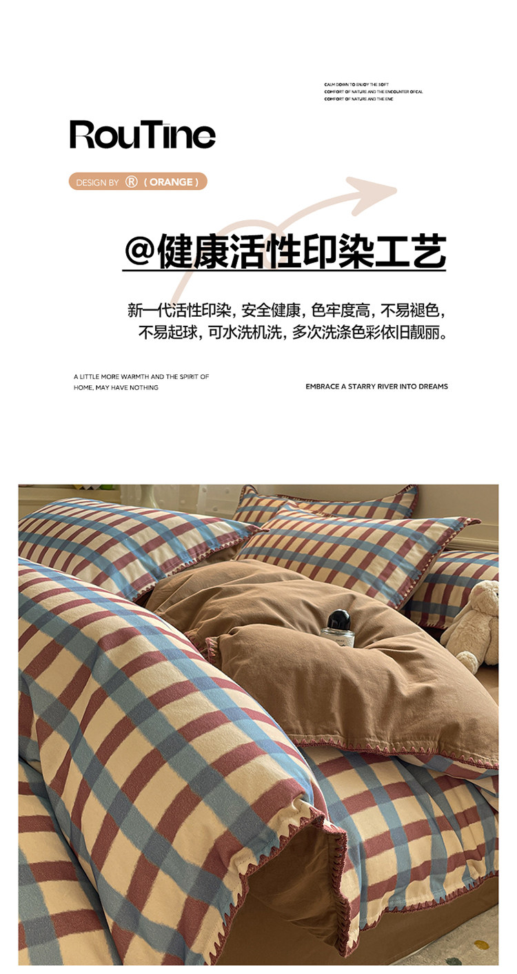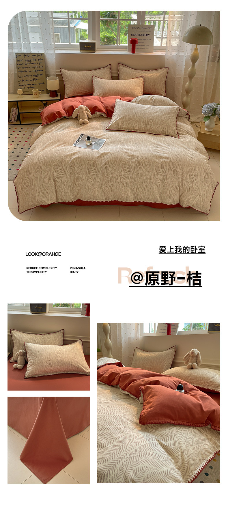 Muji Thickened Pure Cotton Brushed Bed Set Four-Piece Set, Simple Pure Cotton Autumn and Winter Bed Sheet and Duvet Cover Three-Piece Bedding Set