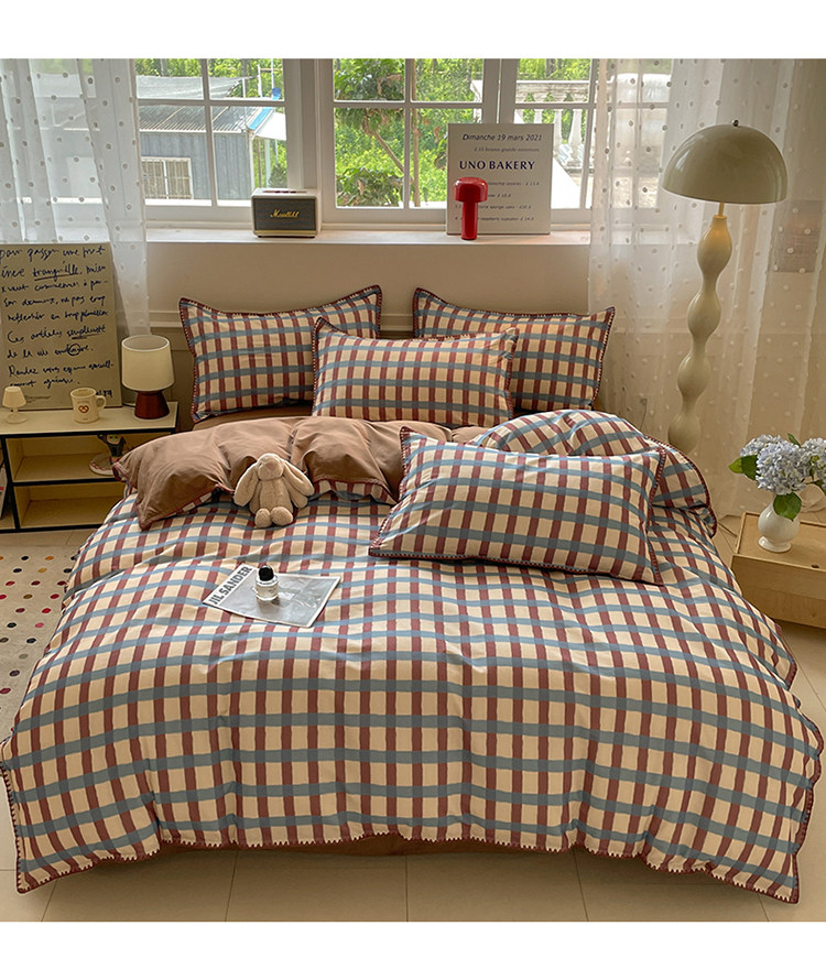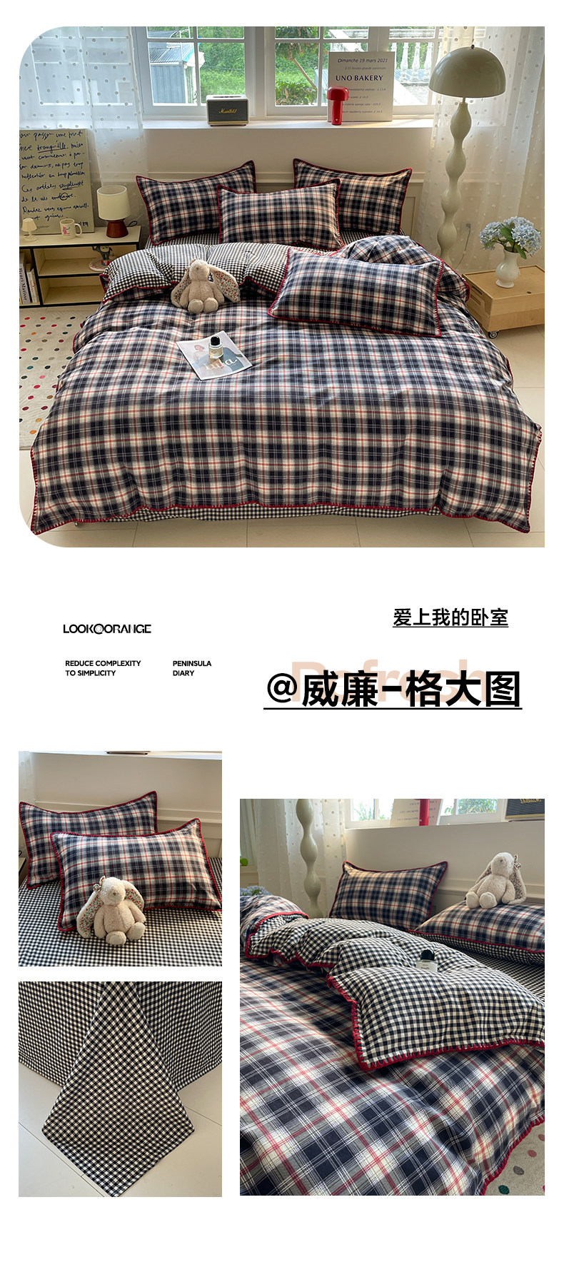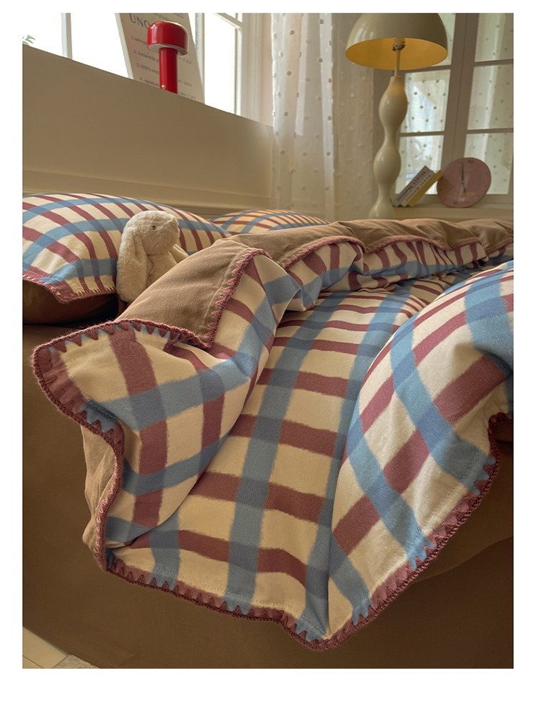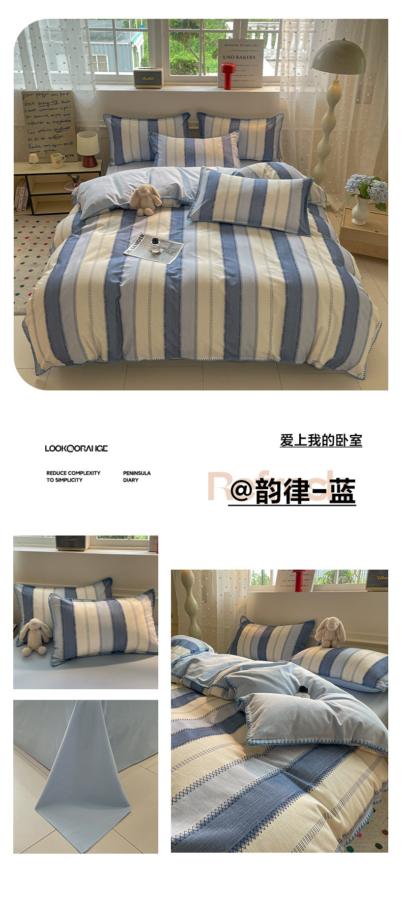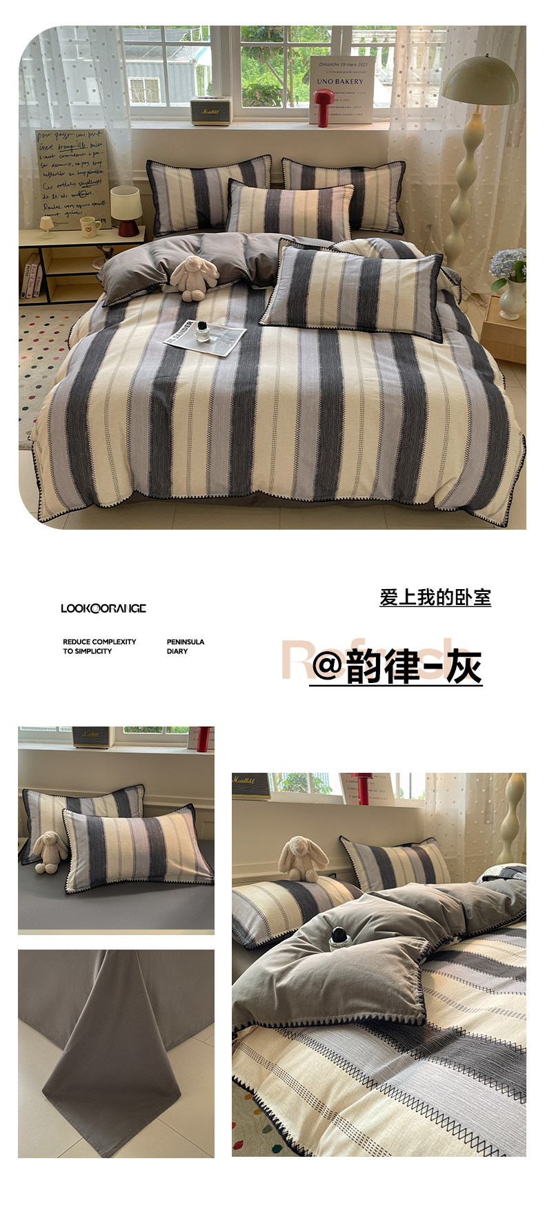 Muji Thickened Pure Cotton Brushed Bed Set Four-Piece Set, Simple Pure Cotton Autumn and Winter Bed Sheet and Duvet Cover Three-Piece Bedding Set