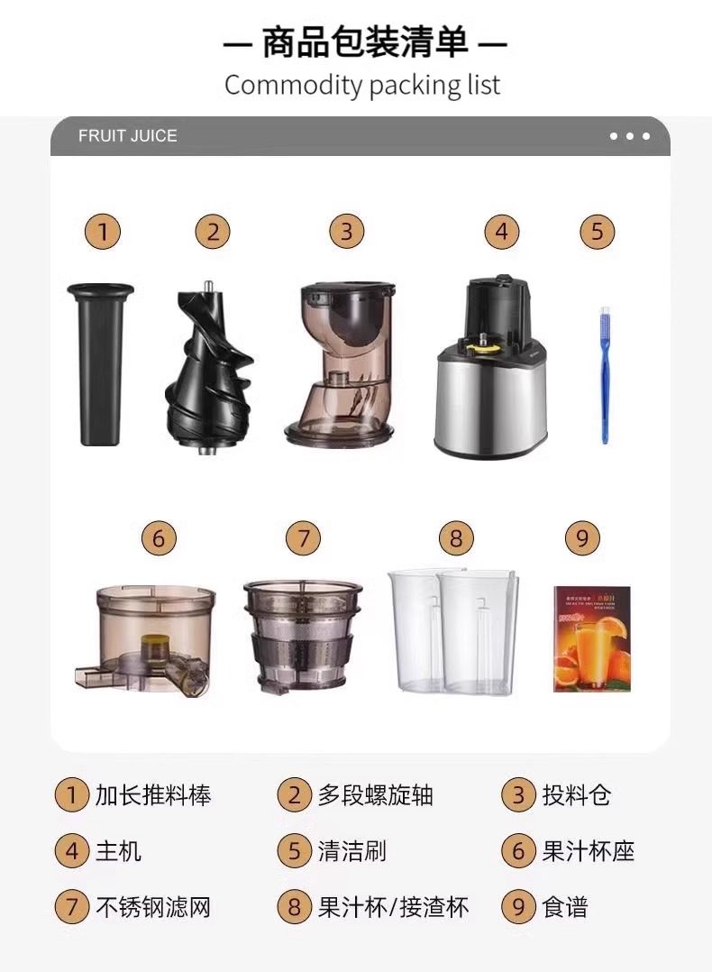 | Juicing Structure | Dual-Channel Slag and Juice Separation |