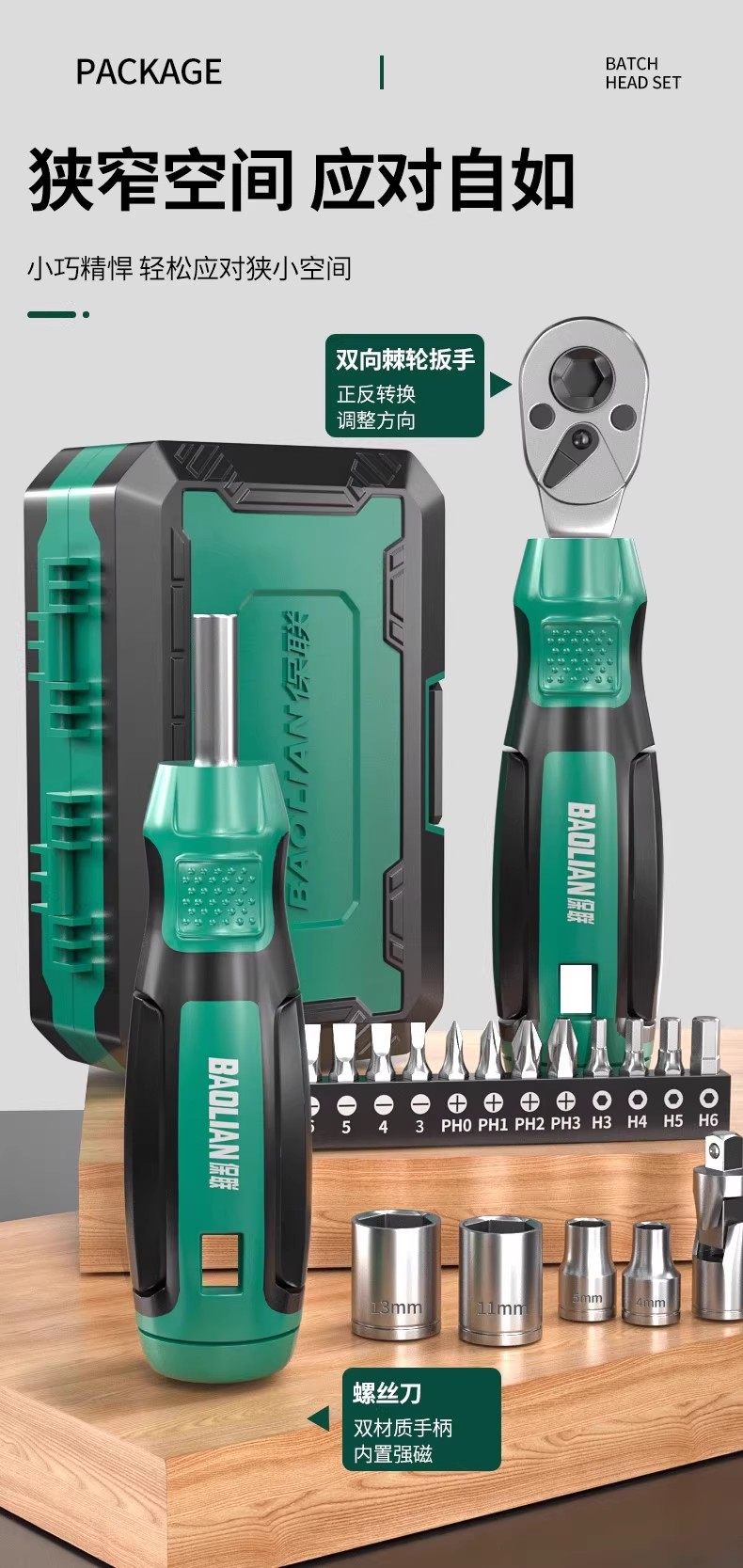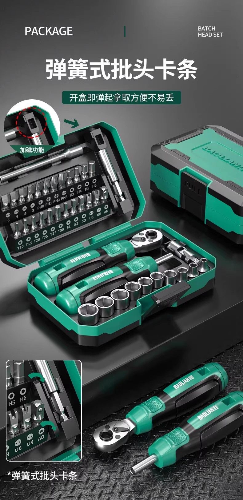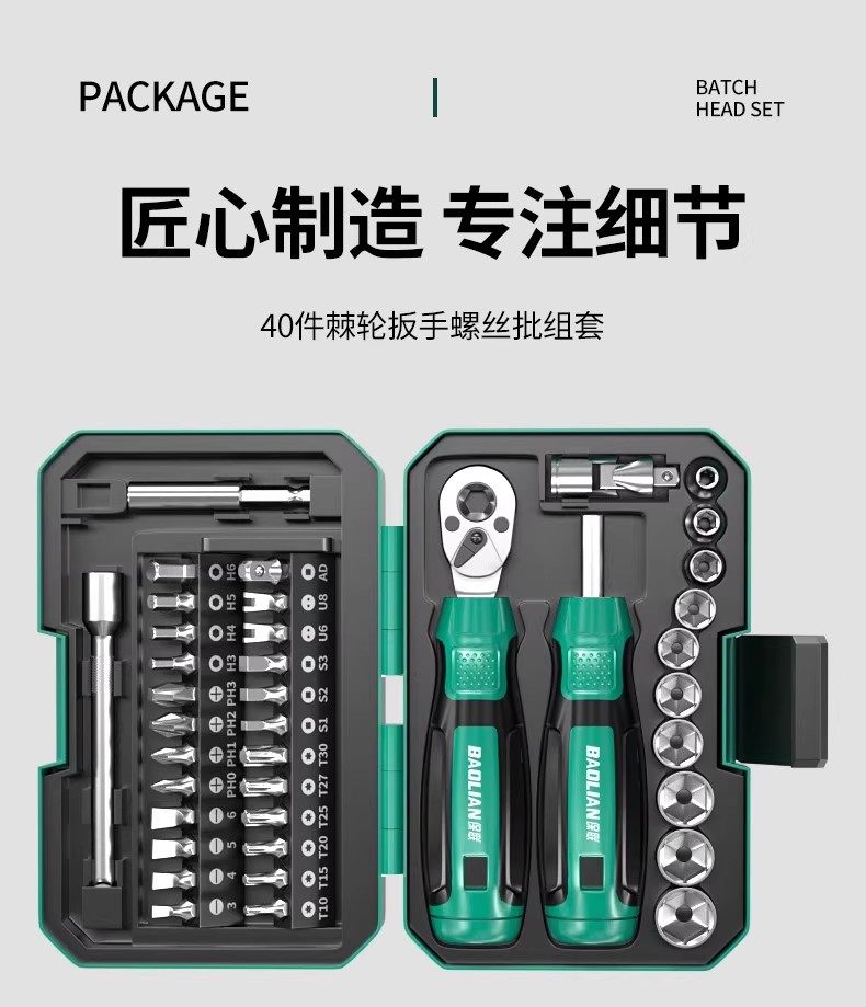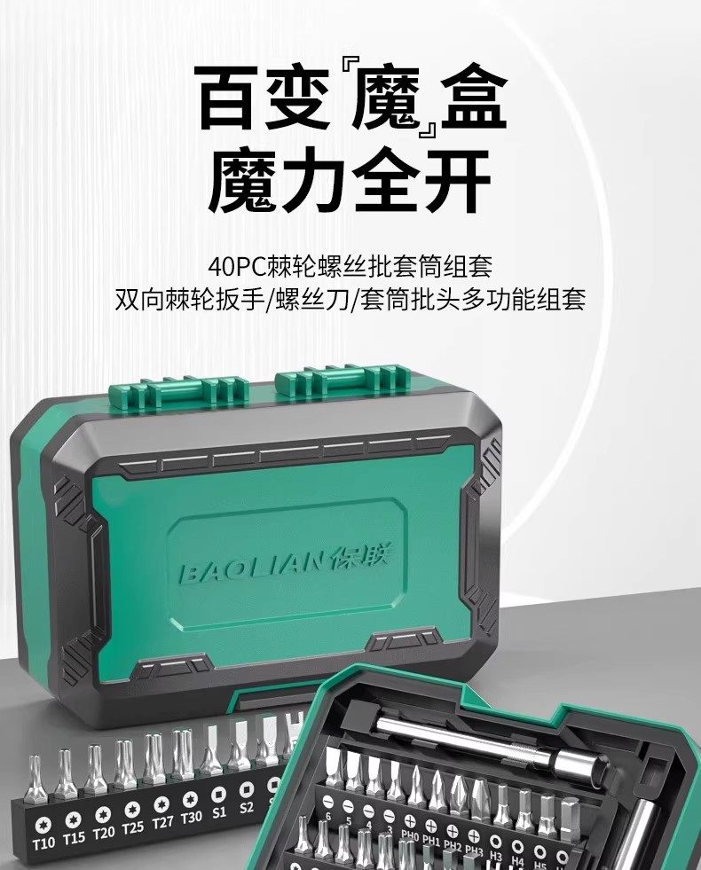 Baolian Motorcycle Magic Box Ratchet Socket Bit Set 40-in-1 Portable Motorcycle Repair Tool Kit