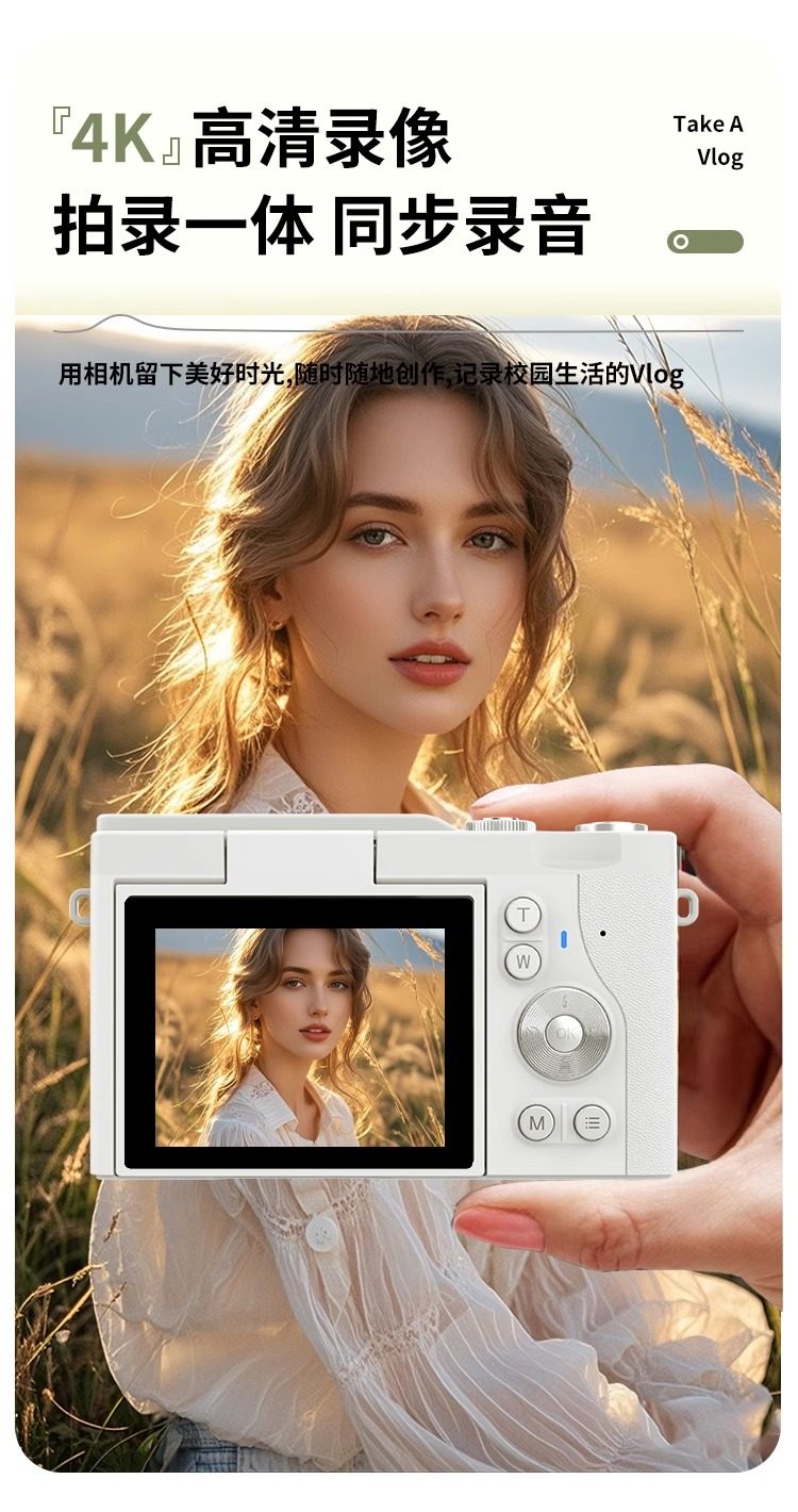 High-Definition Pixel Ccd Digital Camera for Students, Flipable Selfie Camera, 6400W Retro Campus Card Camera for Beginners
