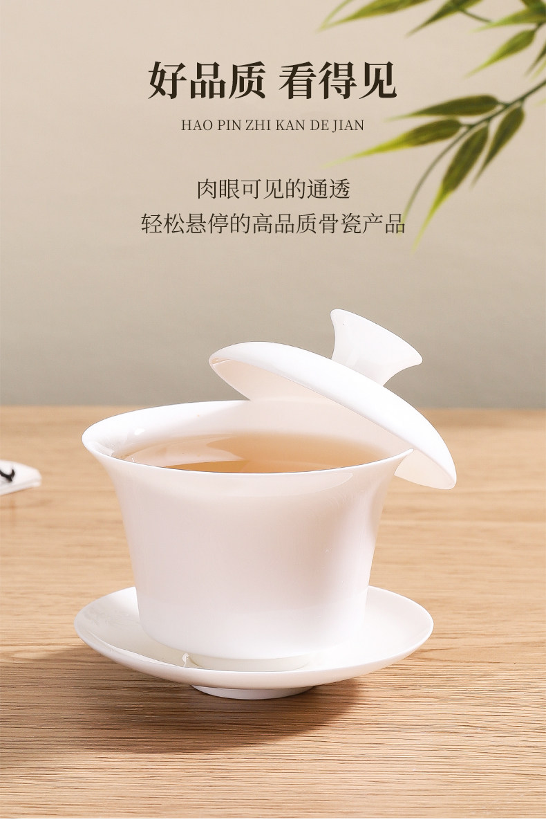 Thin-Walled Chaozhou High Bone China Three-Piece Horseshoe-Shaped Lidded Bowl Tea Cup Set for Brewing Tea, High-End Complete White Porcelain Set