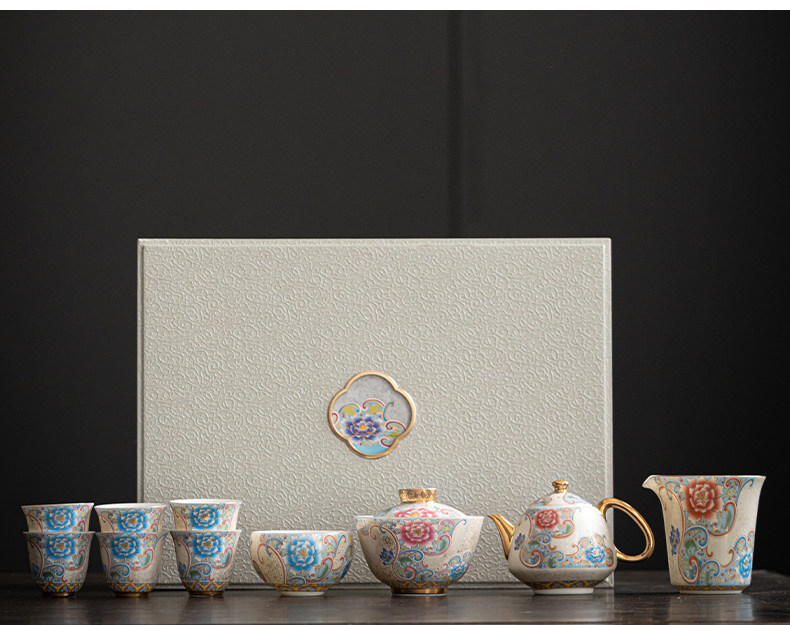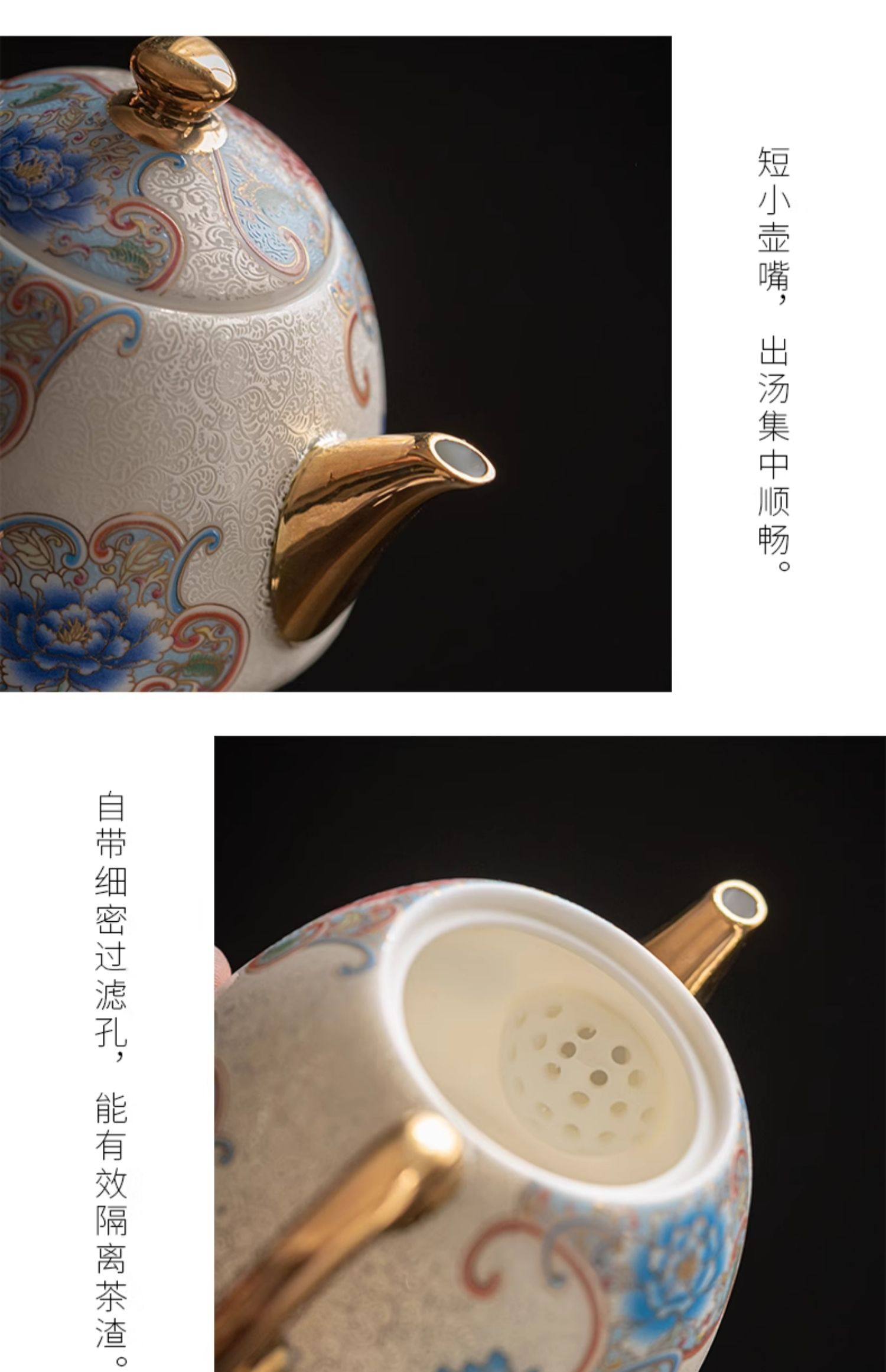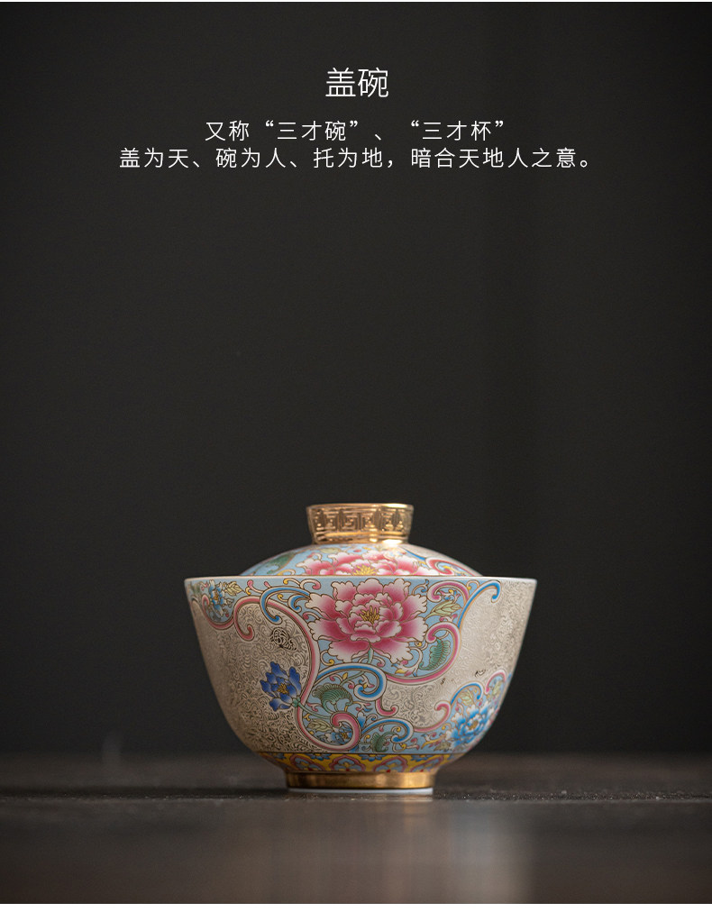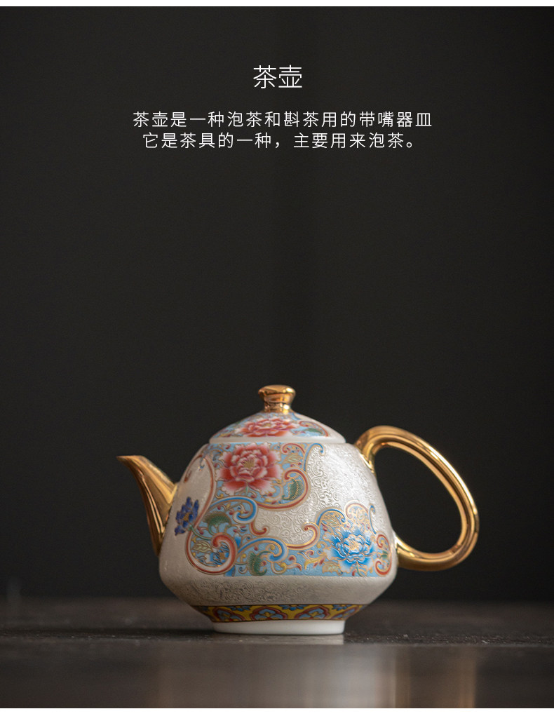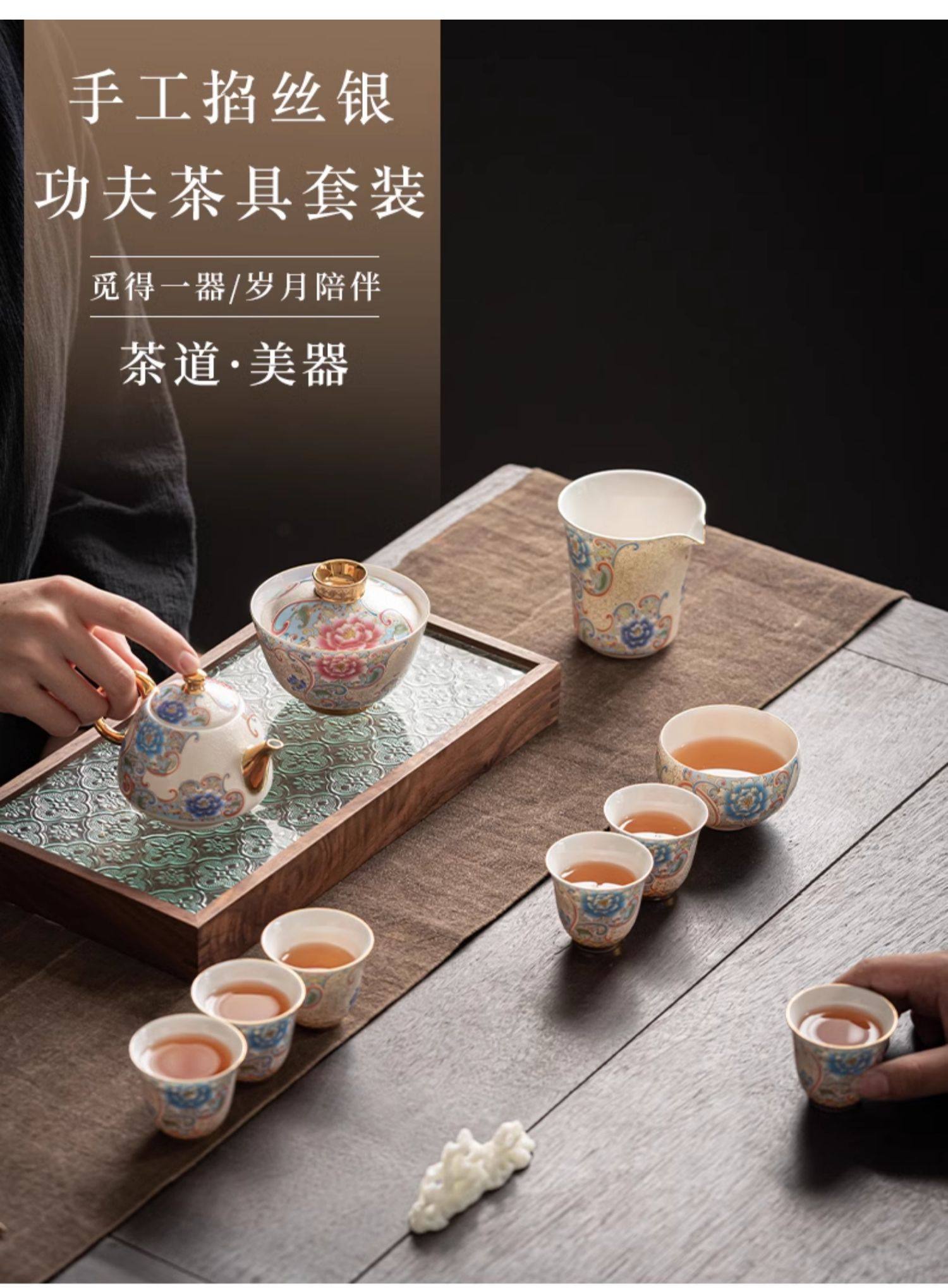 High-End Silver Filigree Kung Fu Tea Set for Home Use, Light Luxury Ceramic Teapot with Gold-Painted Lid Bowl, Exquisite Tea Cup Gift Box Set