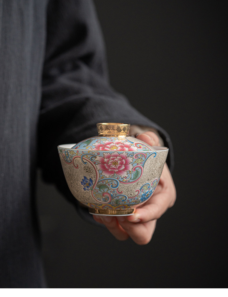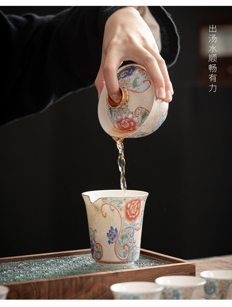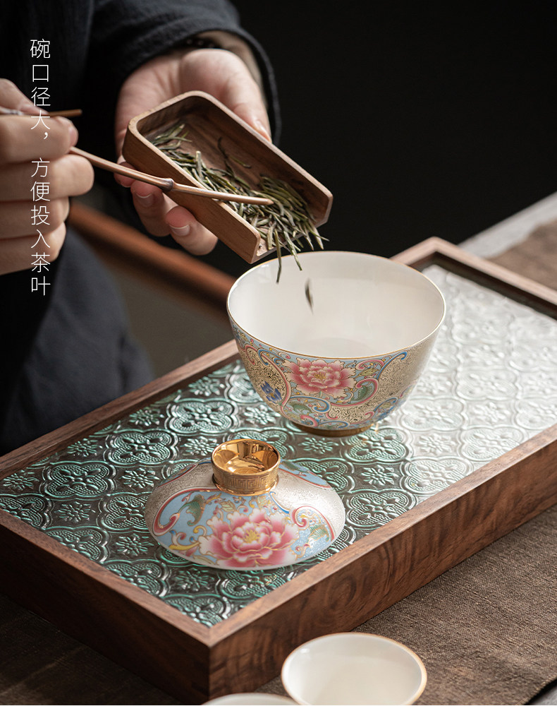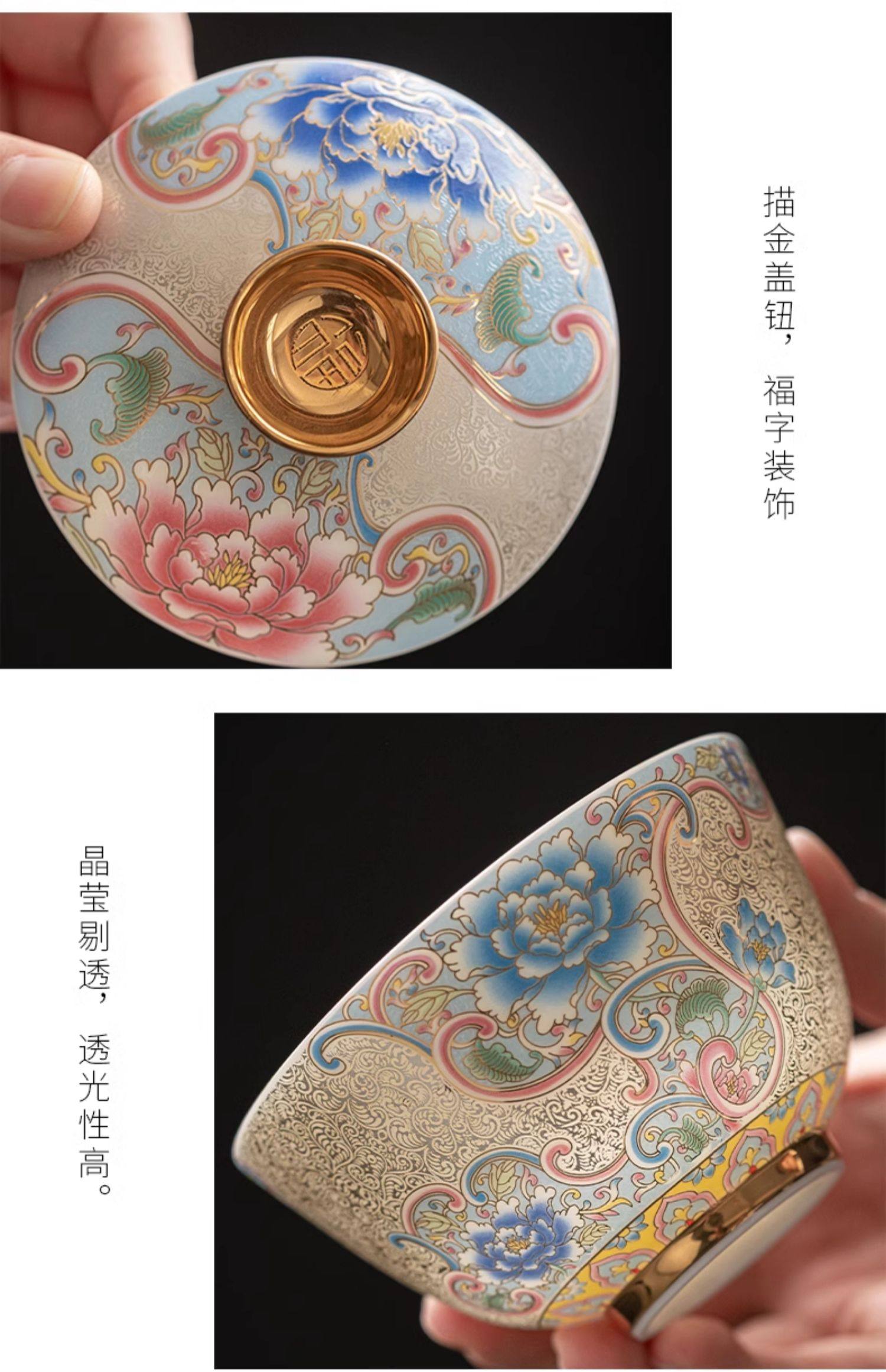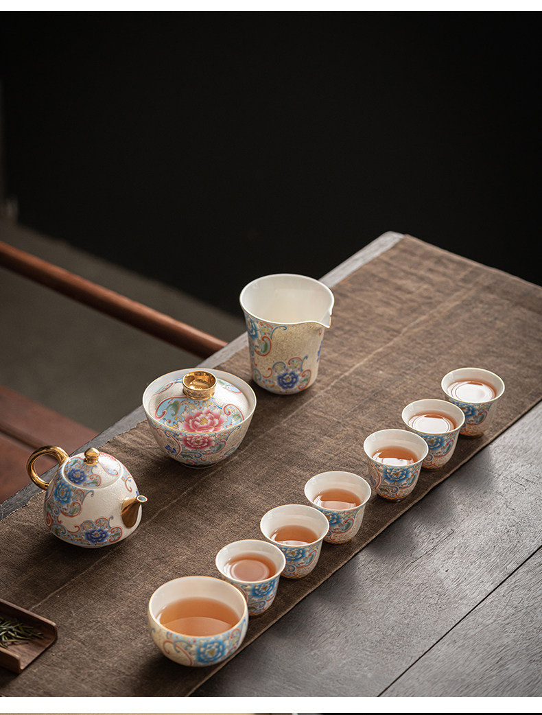High-End Silver Filigree Kung Fu Tea Set for Home Use, Light Luxury Ceramic Teapot with Gold-Painted Lid Bowl, Exquisite Tea Cup Gift Box Set