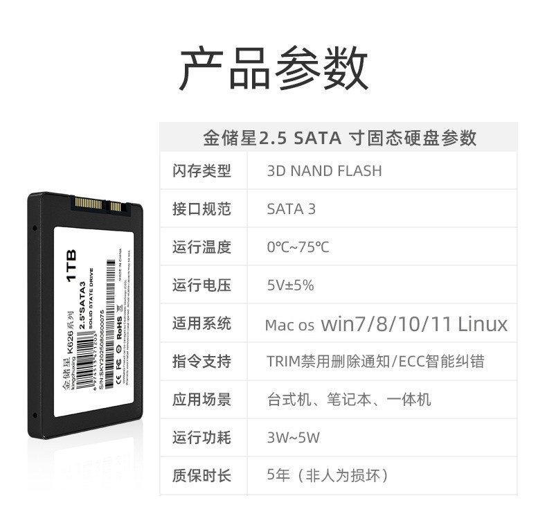 Jinchuxing Sata Solid State Drive 1Tb2T512Gb256 Desktop Computer Notebook 2.5inch Ssd128