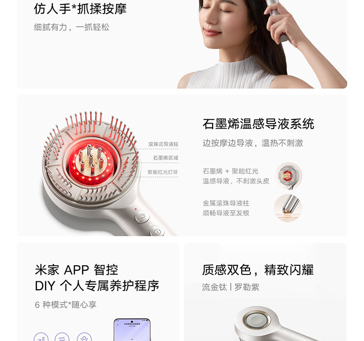 Xiaomi Mijia Smart Head Massage Comb, Scalp Care Comb, Graphene Temperature-Sensing Liquid-Guiding, Imitates Human Hands and Does Not Hurt the Scalp