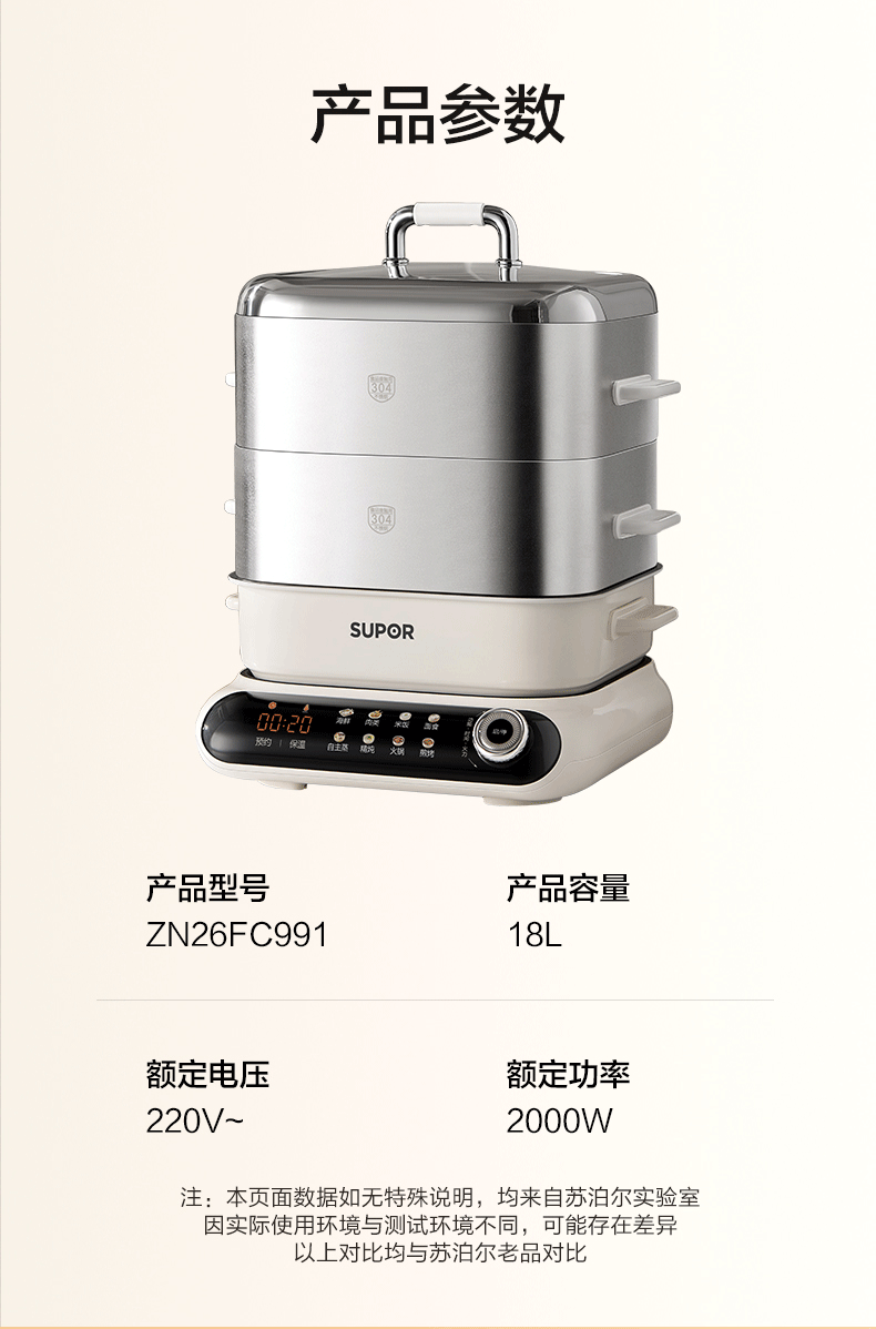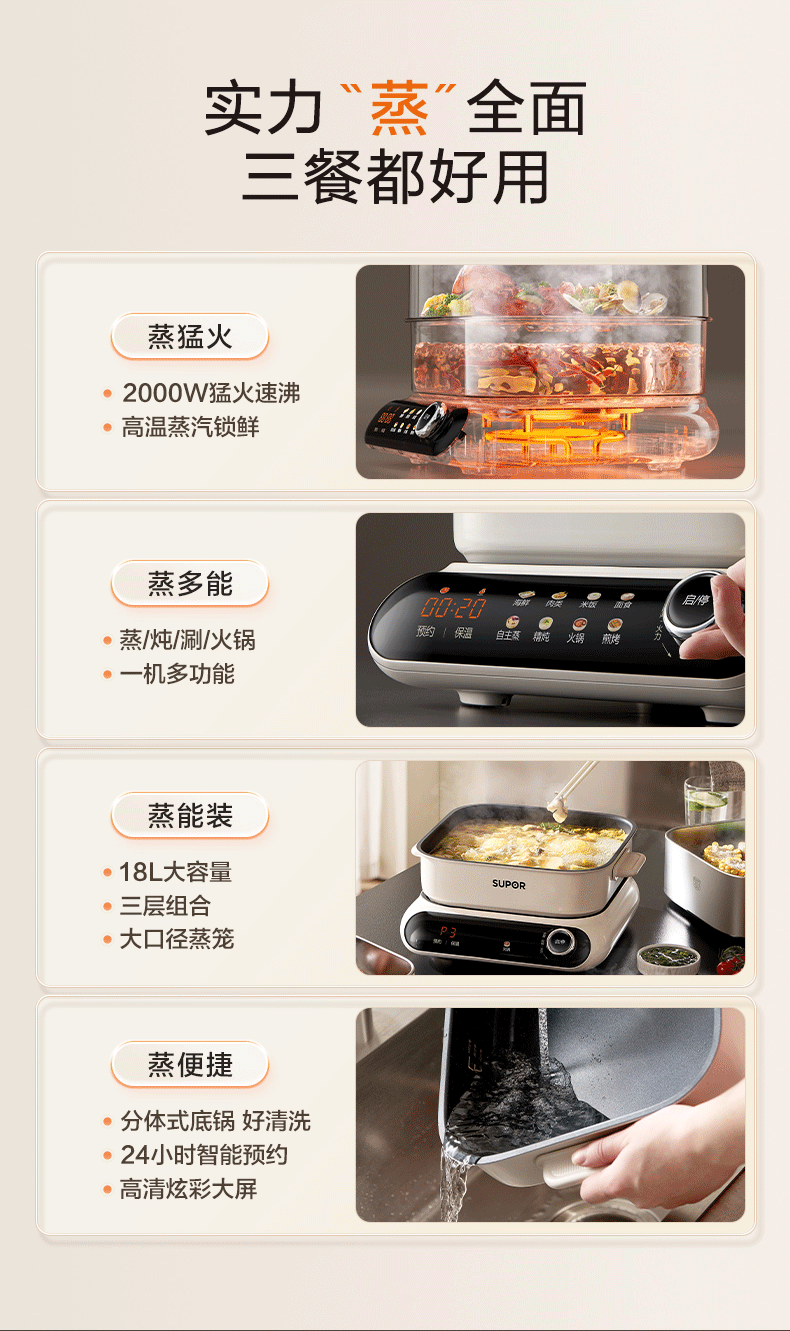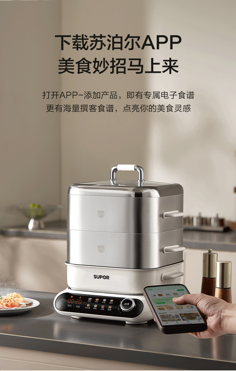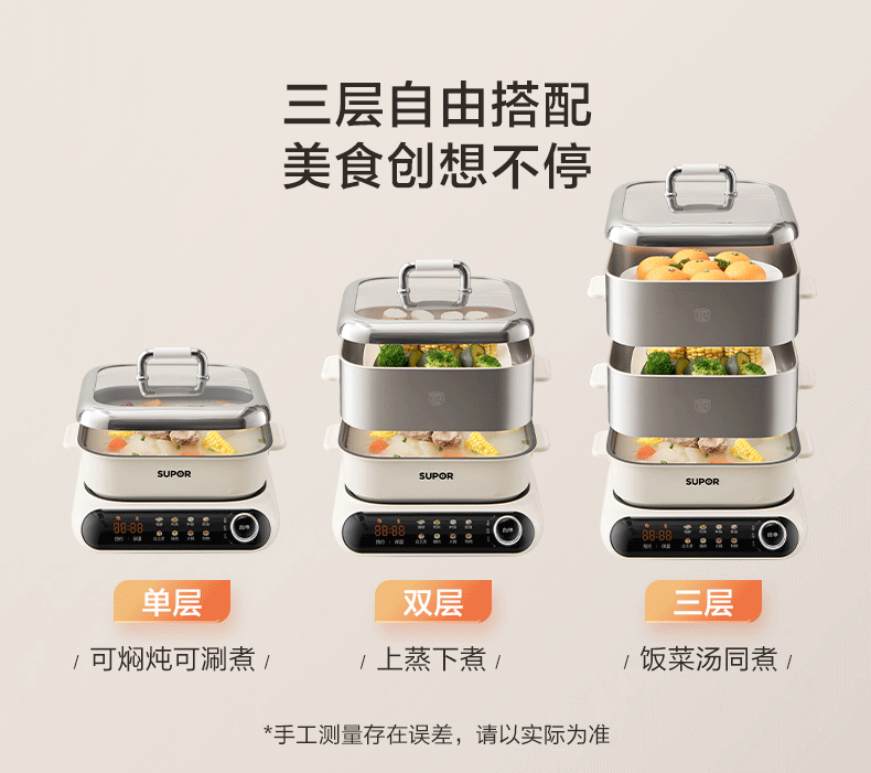 Supor 0-Coating Stainless Steel Electric Steamer for Home Use, Multifunctional Steaming and Cooking All-In-One, Three-Layer Detachable and Washable, 2025 New Model