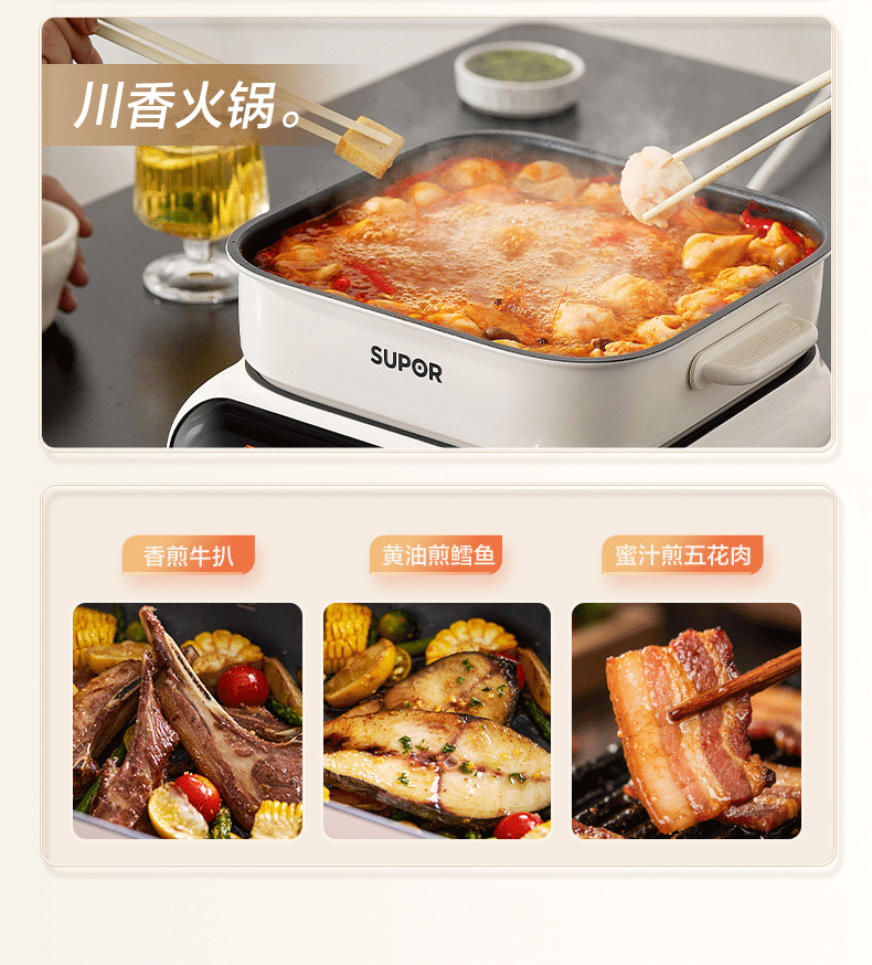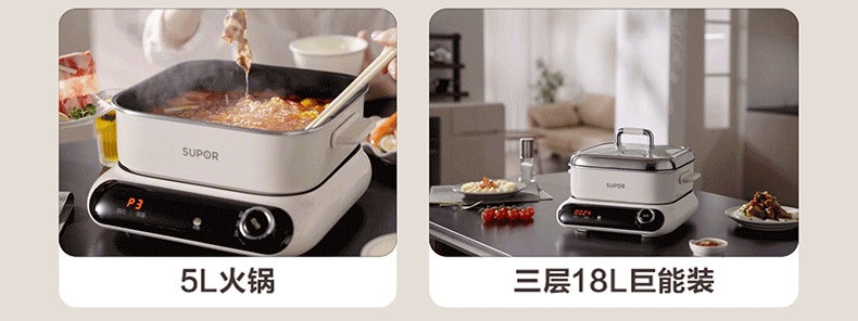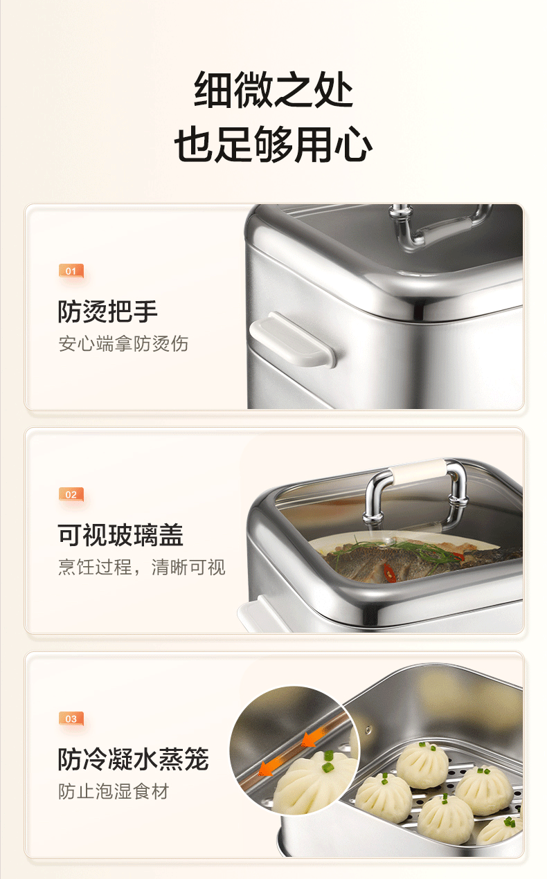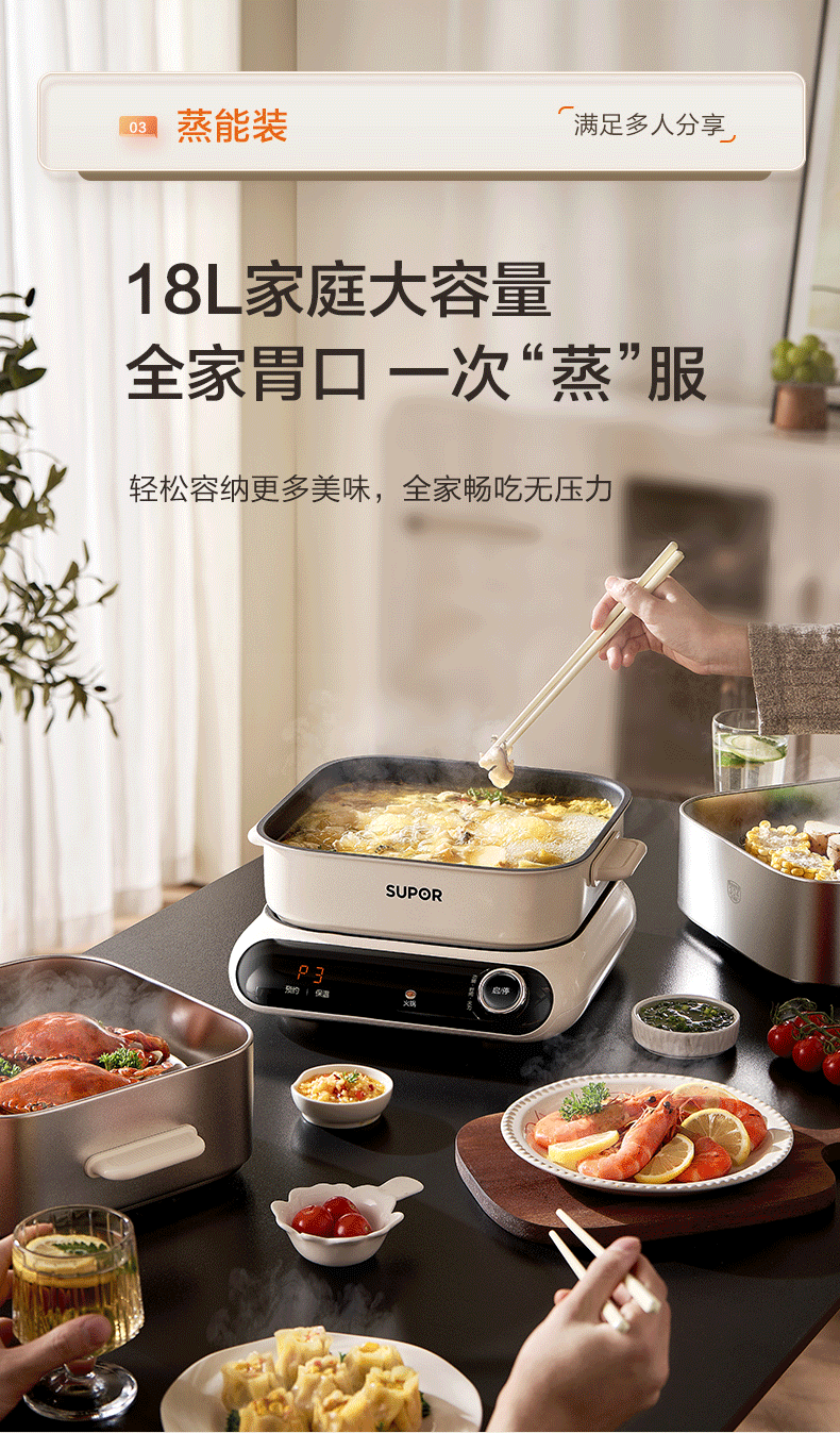 Supor 0-Coating Stainless Steel Electric Steamer for Home Use, Multifunctional Steaming and Cooking All-In-One, Three-Layer Detachable and Washable, 2025 New Model